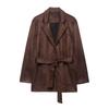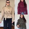 Moda Transfronteriza Europea y Americana Estilo Popular de Aliexpress Versátil Bufanda Delgada Estampada Decorada Chaqueta Cortavientos Corta de Doble Botonadura