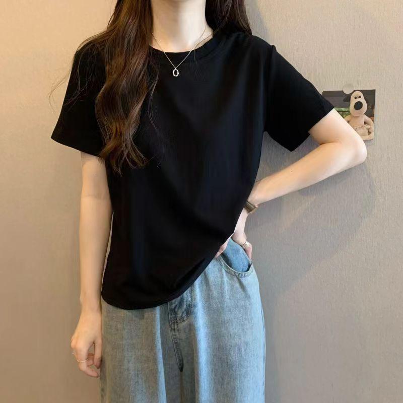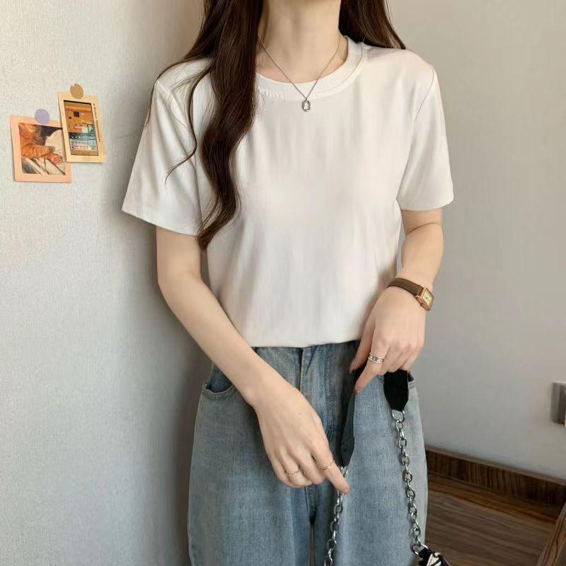 Nueva Camiseta Blanca de Verano de Manga Corta para Mujer, Estilo Coreano, Corte Holgado, Color Sólido Versátil, Top Casual Simple