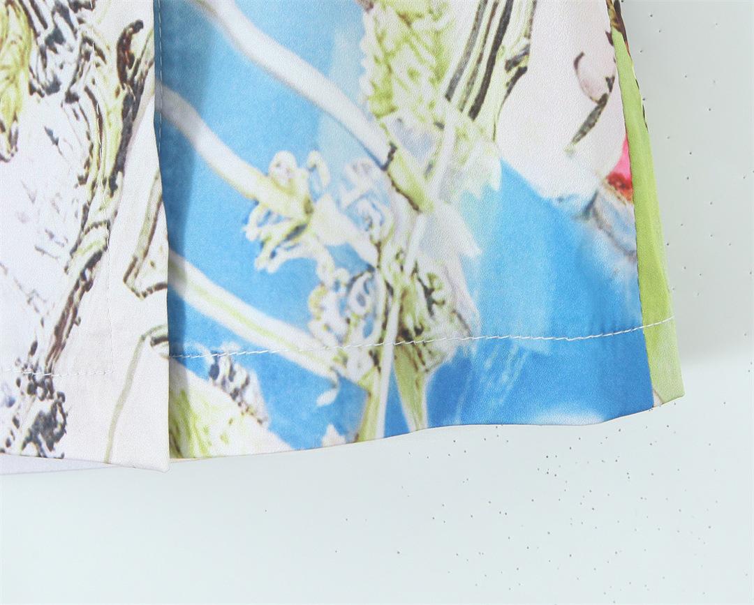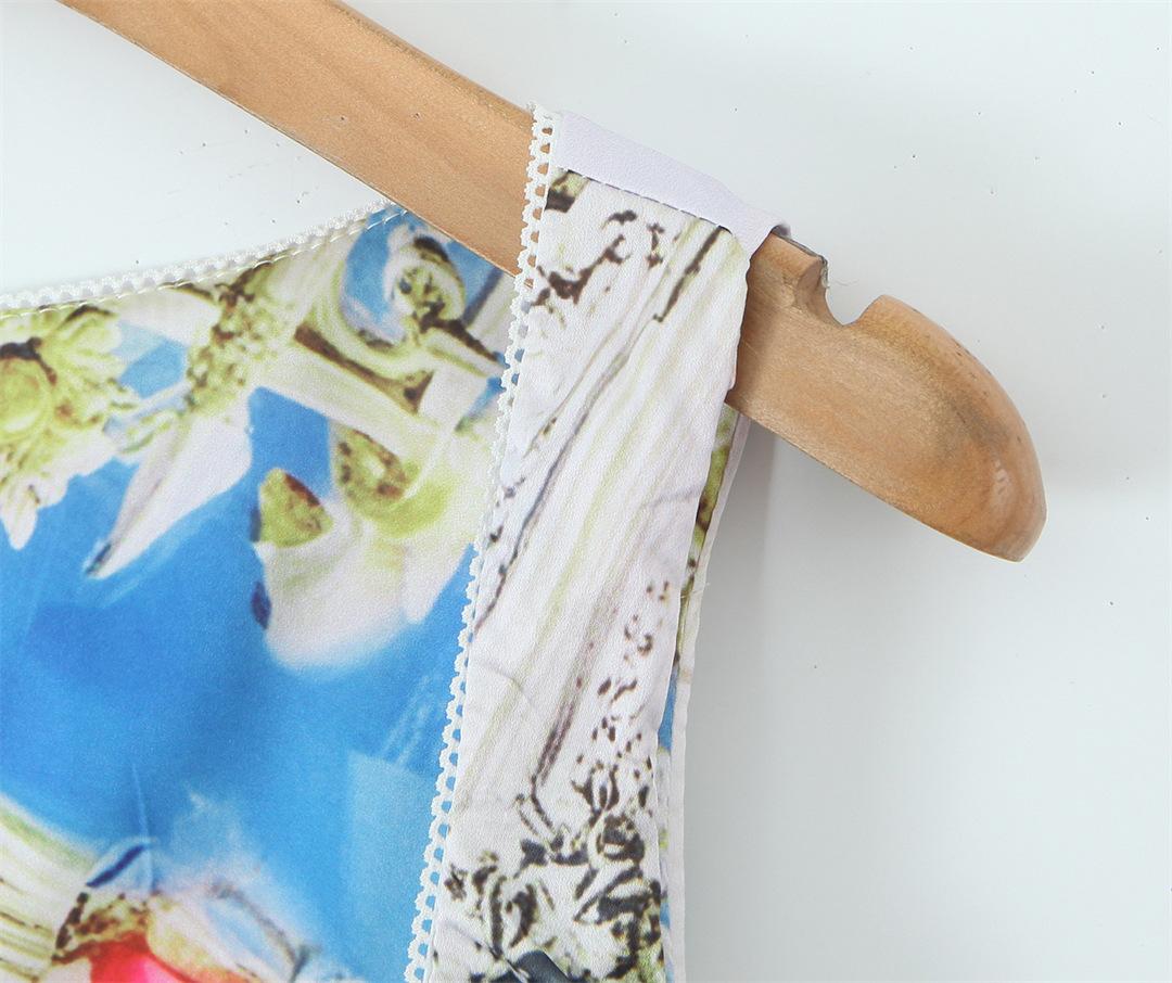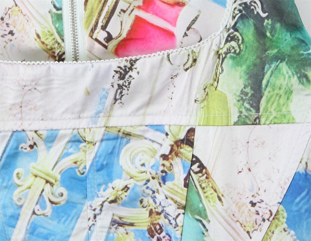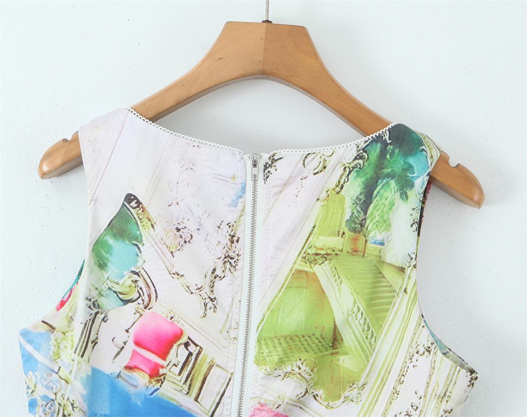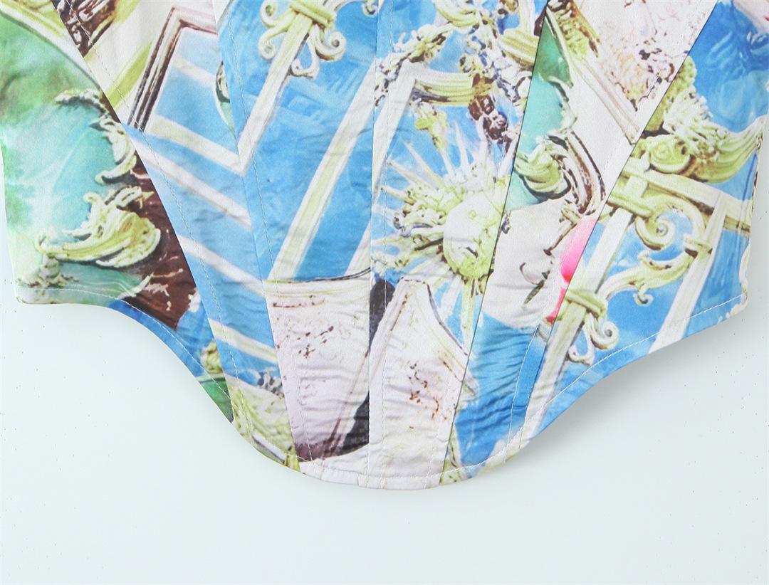 Nicho Chica Caliente Cuello Cuadrado Sin Mangas Estampado Cintura Chaleco Top Diseño Falda Traje con Abertura Lateral de Cintura Baja
