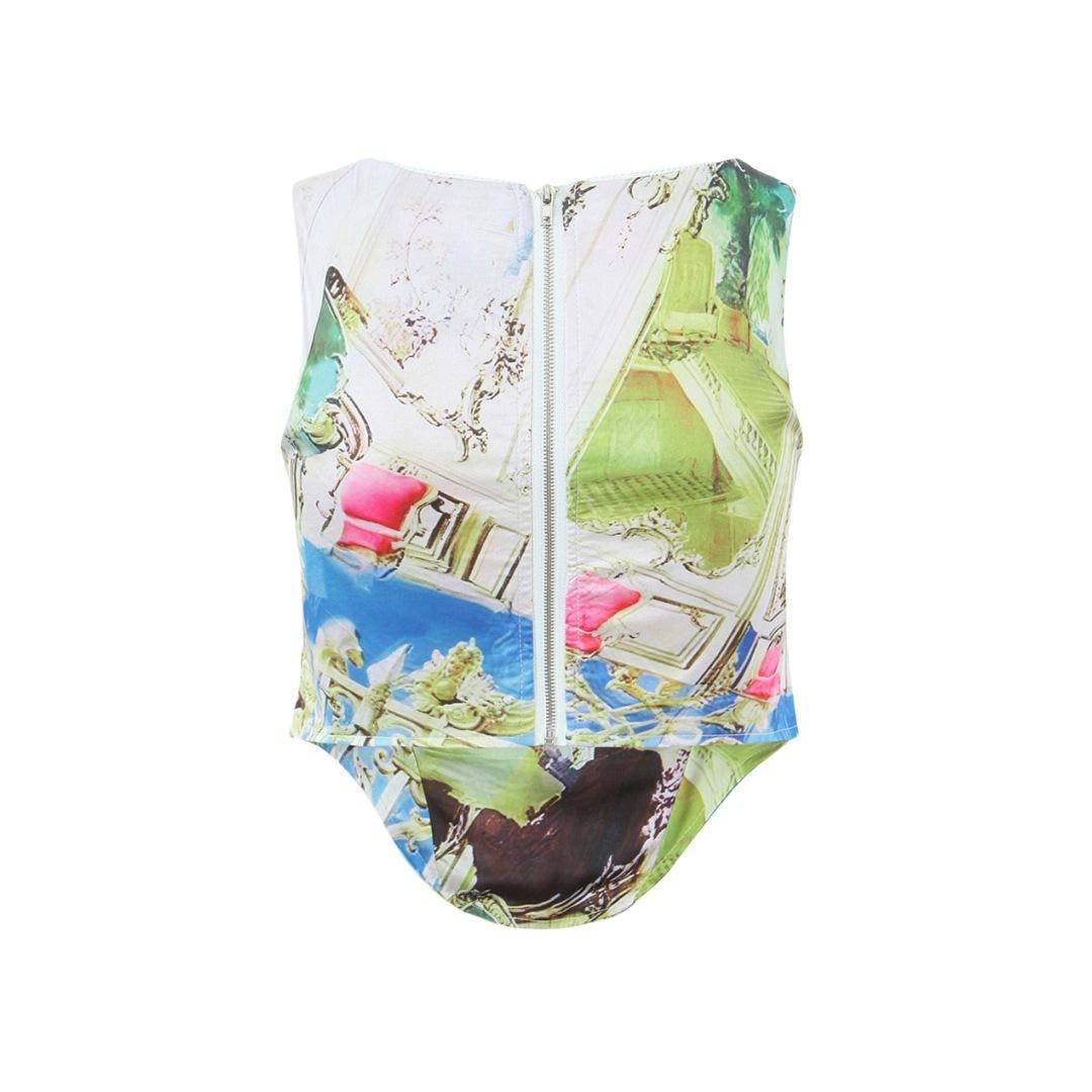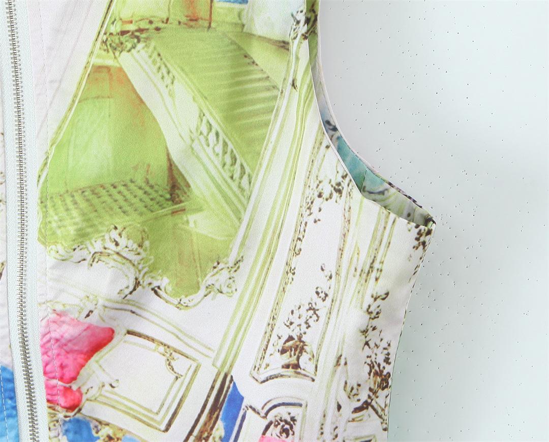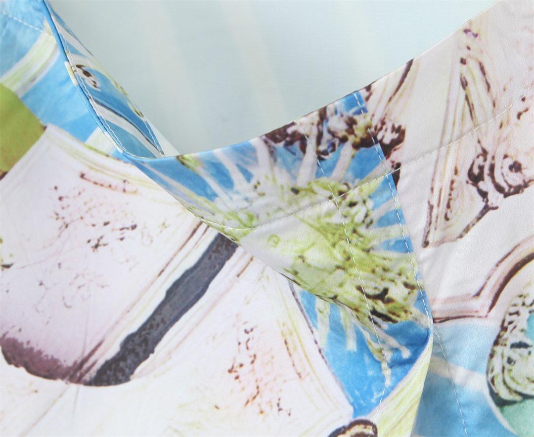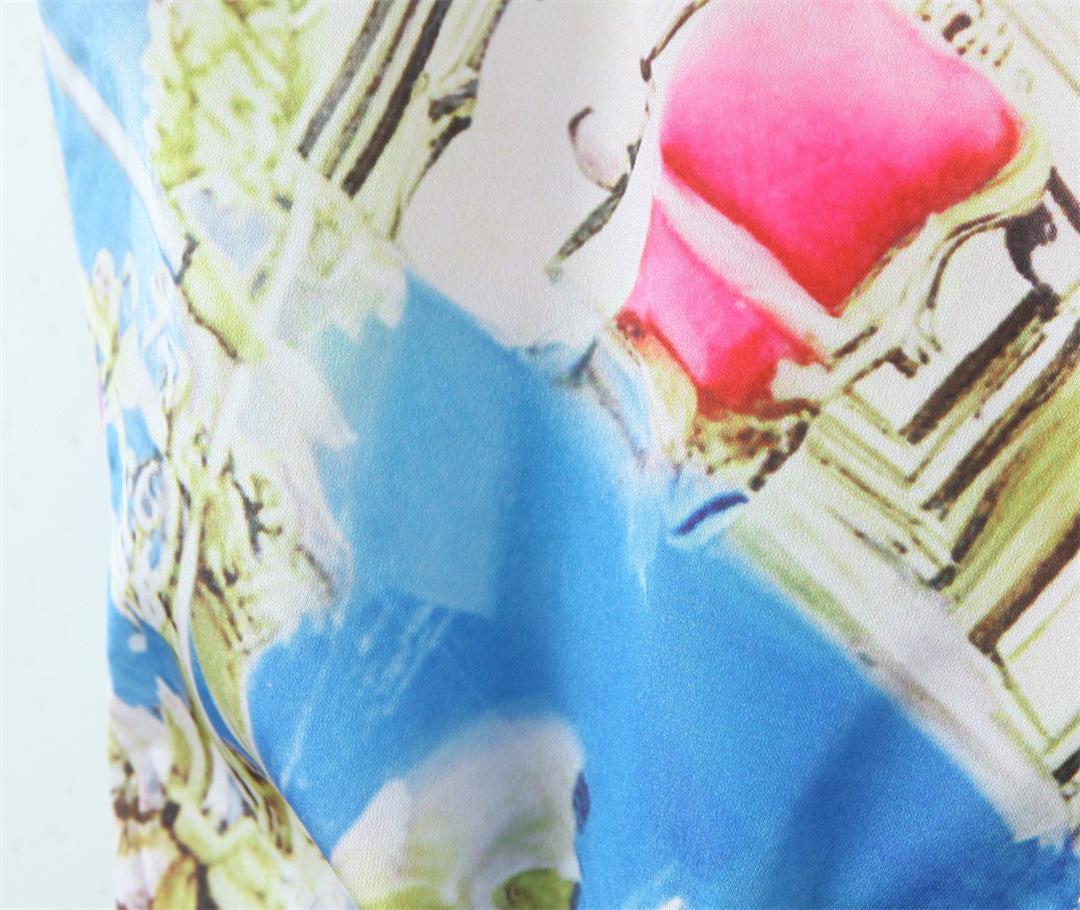 Nicho Chica Caliente Cuello Cuadrado Sin Mangas Estampado Cintura Chaleco Top Diseño Falda Traje con Abertura Lateral de Cintura Baja