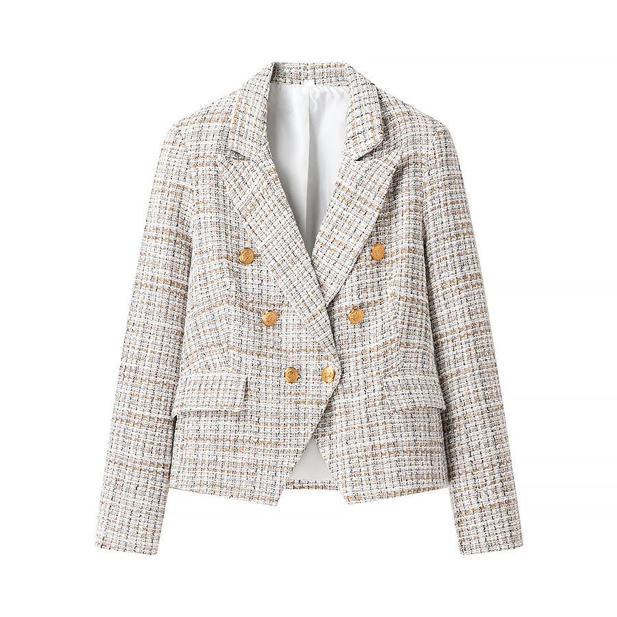 Estilo Europeo y Americano Comercio Exterior Transfronterizo Ropa de Mujer Nuevo 2025 Moda Manga Larga Estilo Pequeño Fragancia Chaqueta a Cuadros Traje Culottes Venta al por Mayor