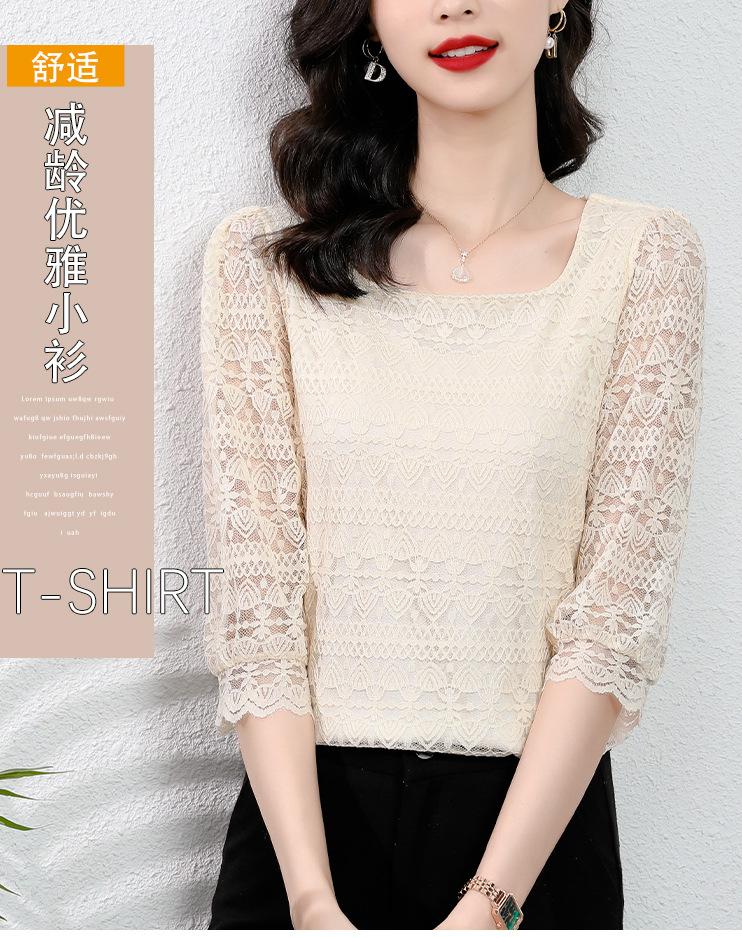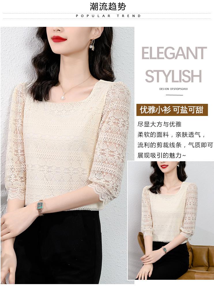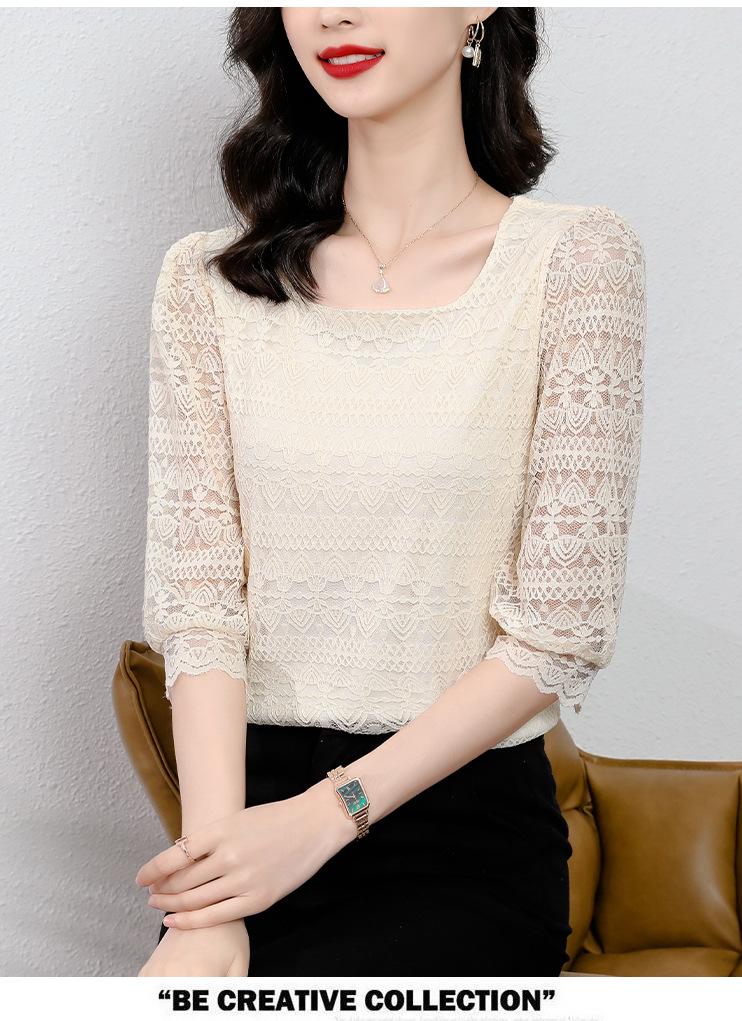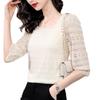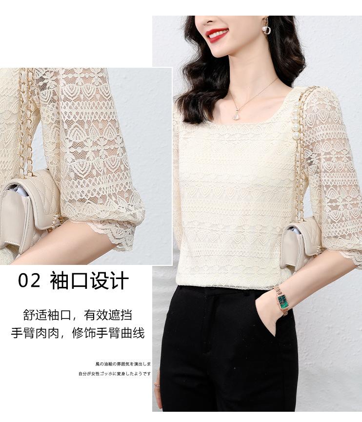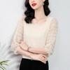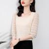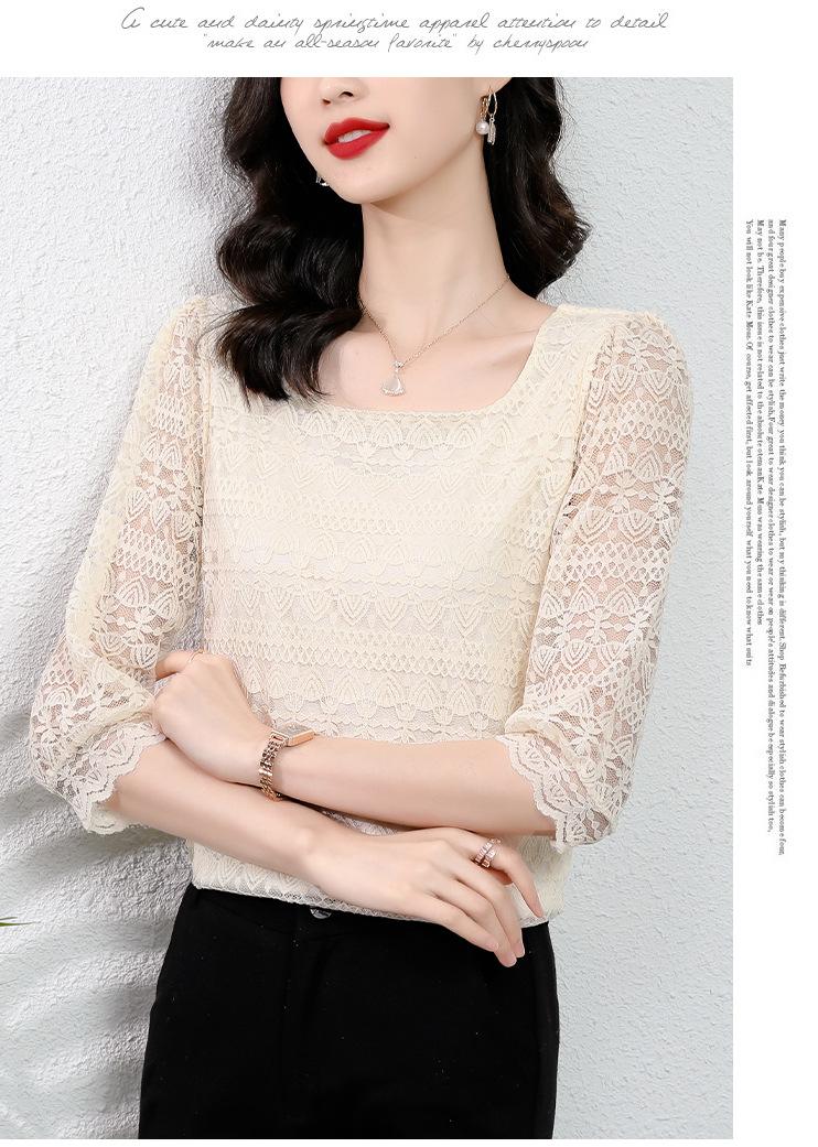Camisa de encaje con cuello cuadrado estilo francés para mujer, blusa retro de verano 2025, reductora de edad, de siete mangas