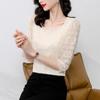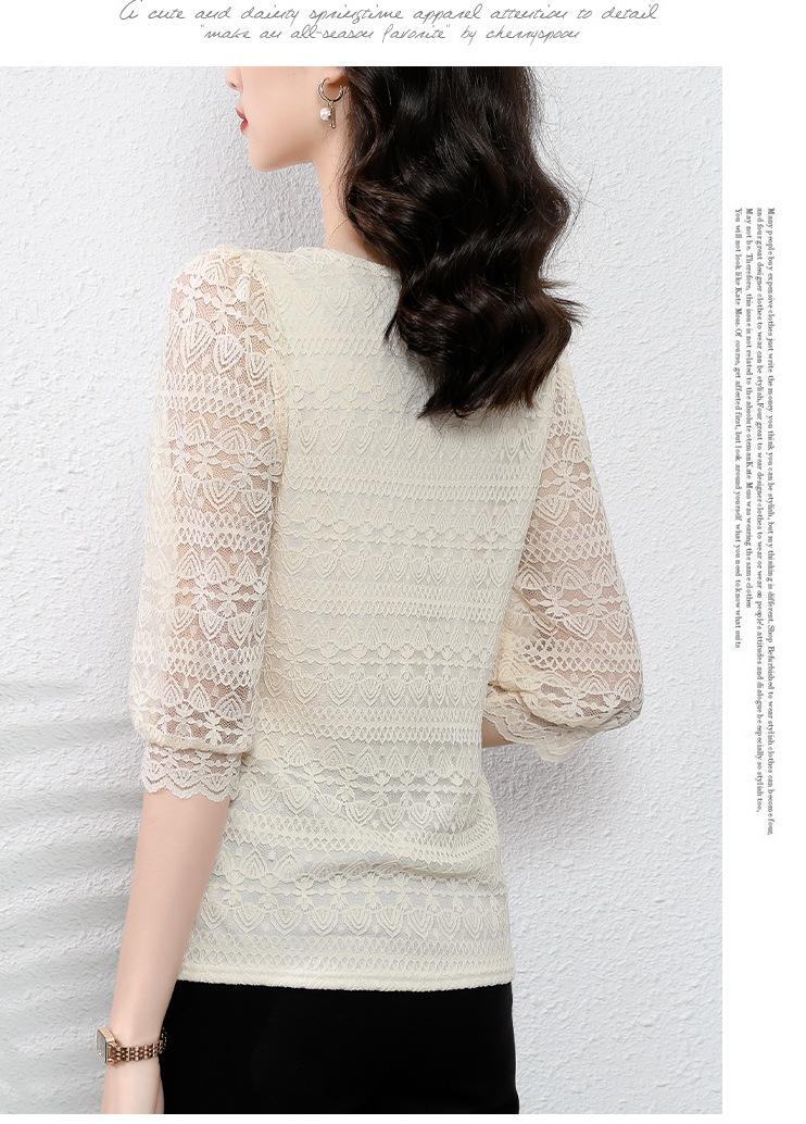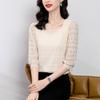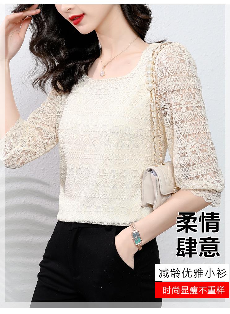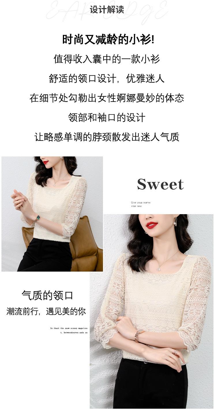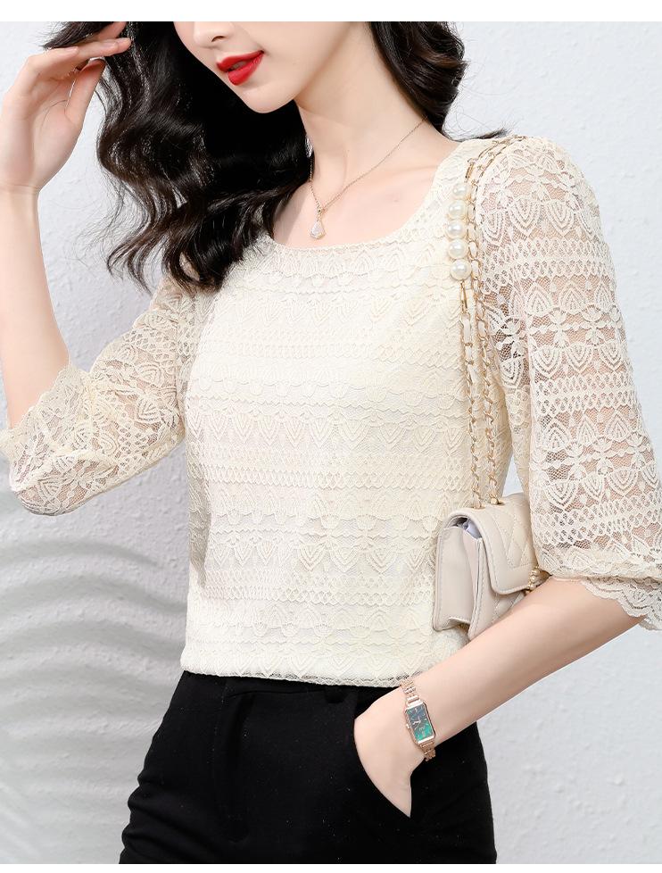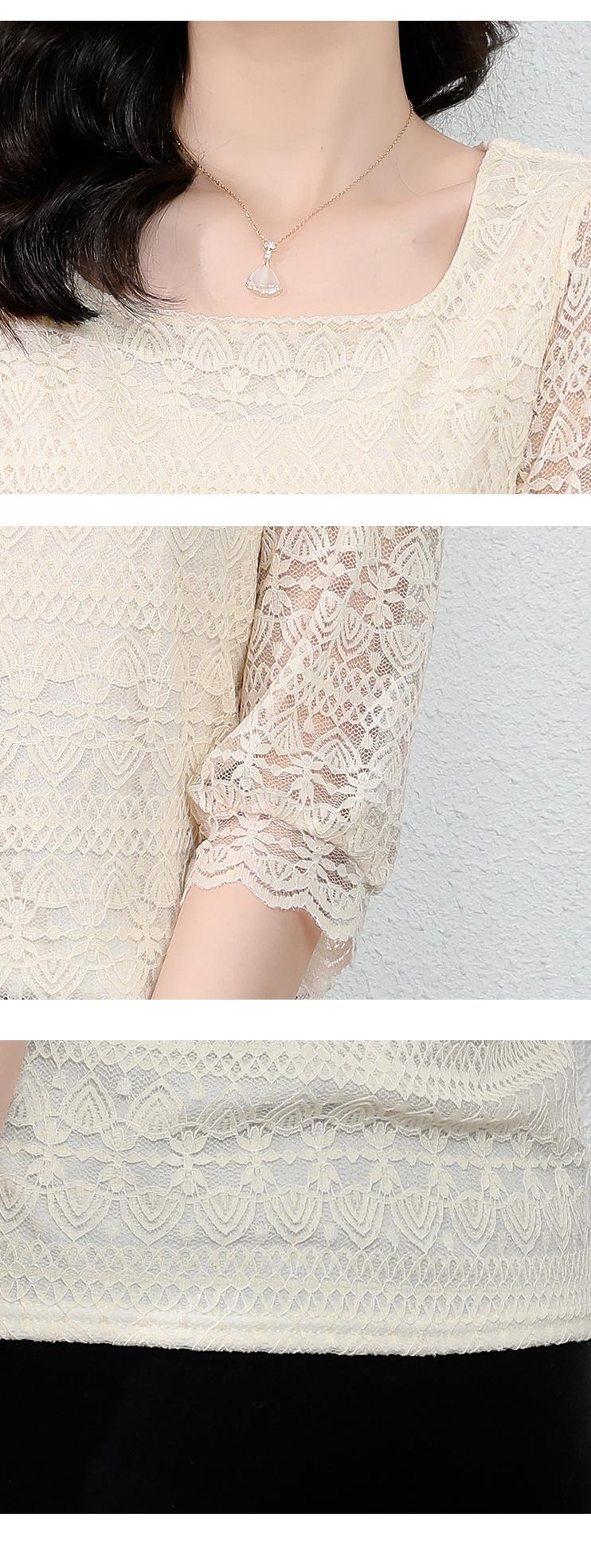 Camisa de encaje con cuello cuadrado estilo francés para mujer, blusa retro de verano 2025, reductora de edad, de siete mangas