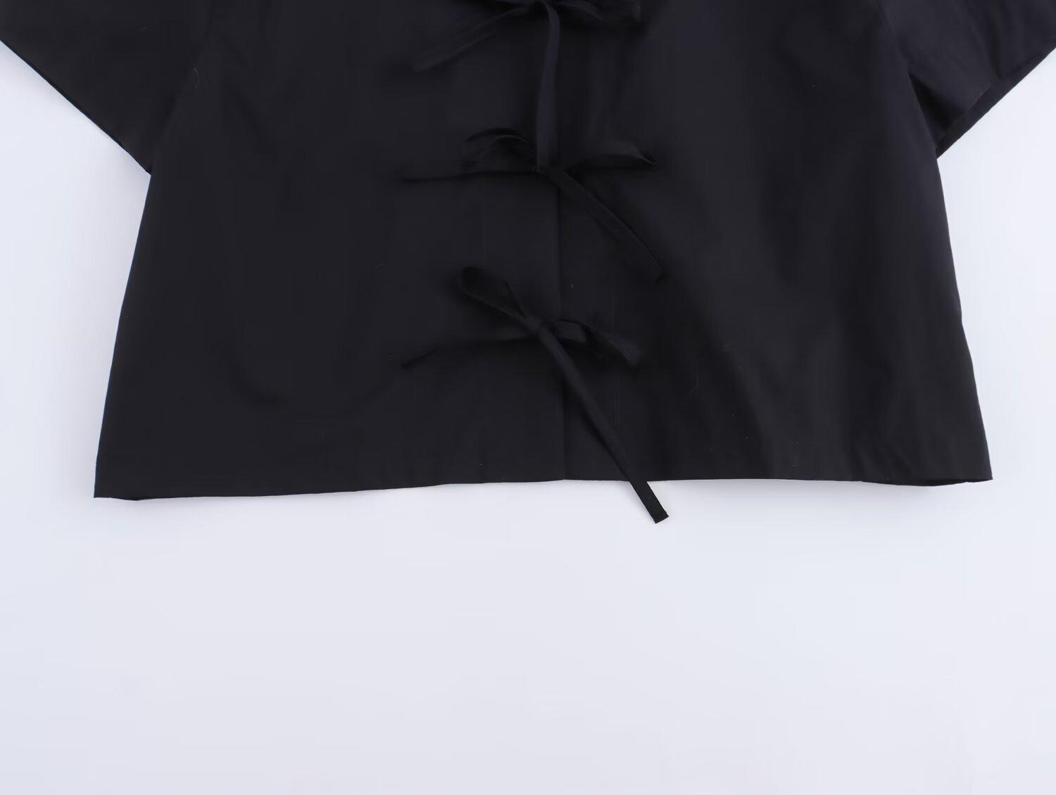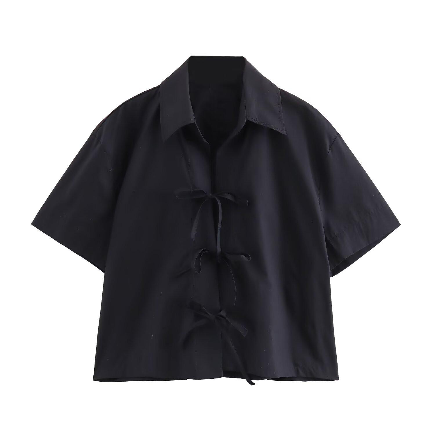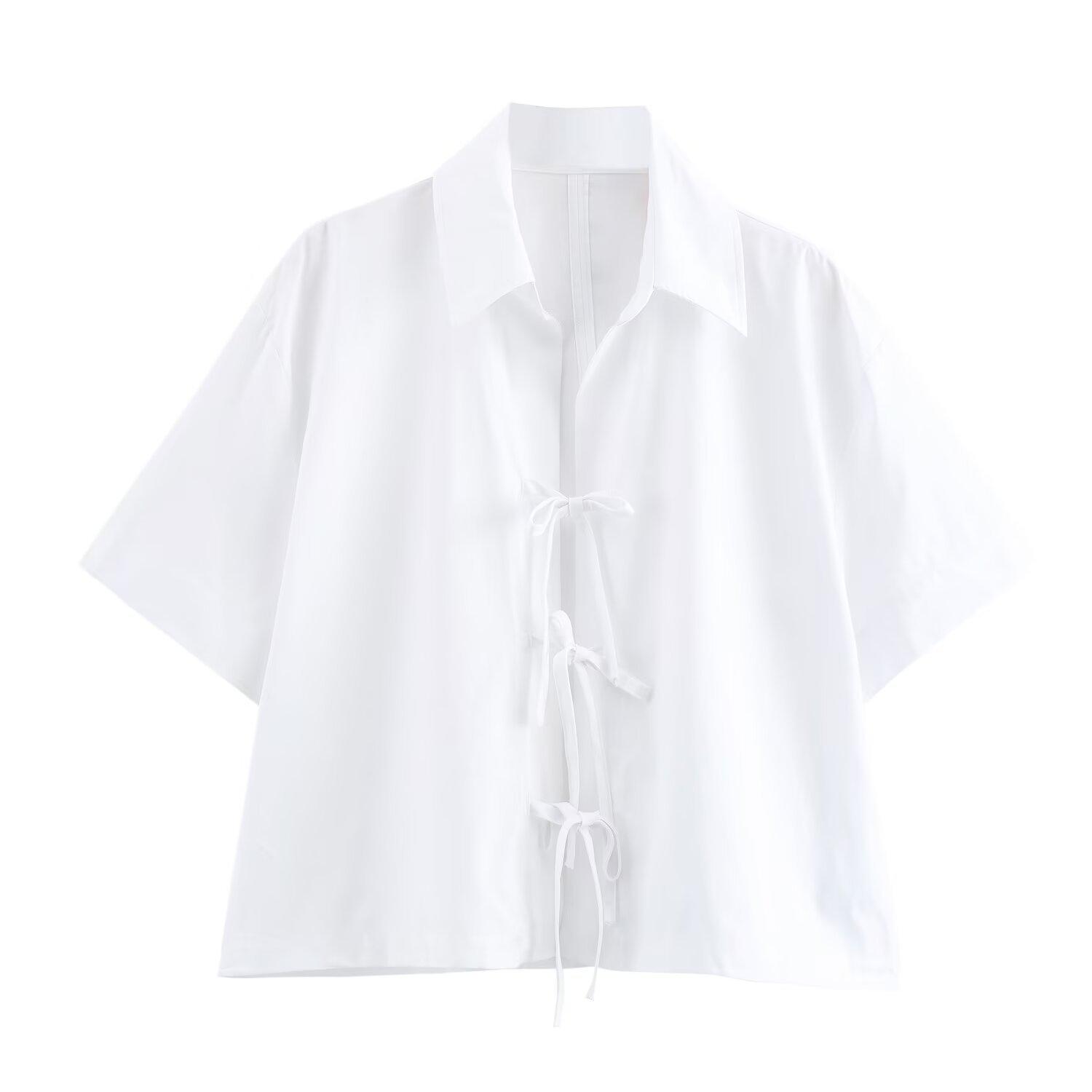 Ropa de Mujer Verano 2024 Nuevo Estilo Europeo y Americano Moda Casual Simple Camisa Oxford Decorada con Lazo 8181025
