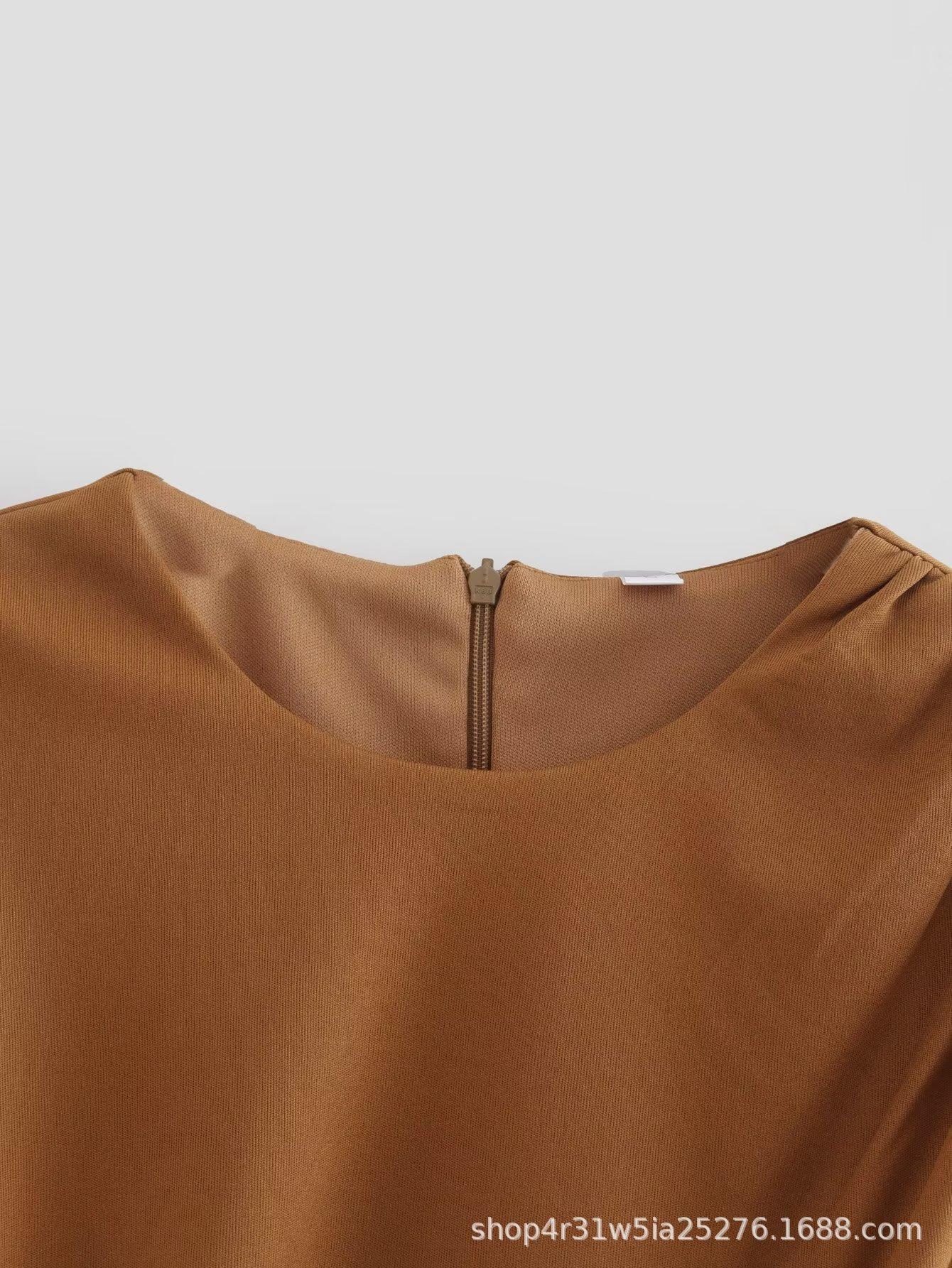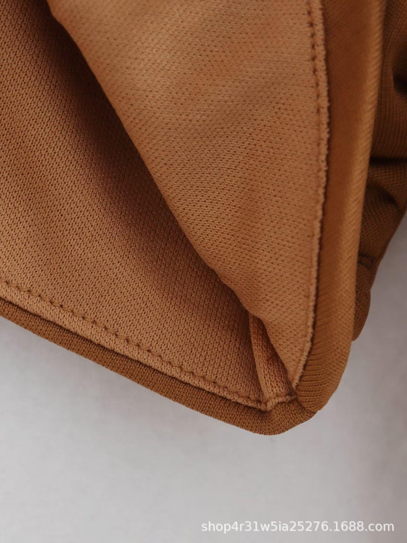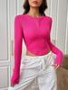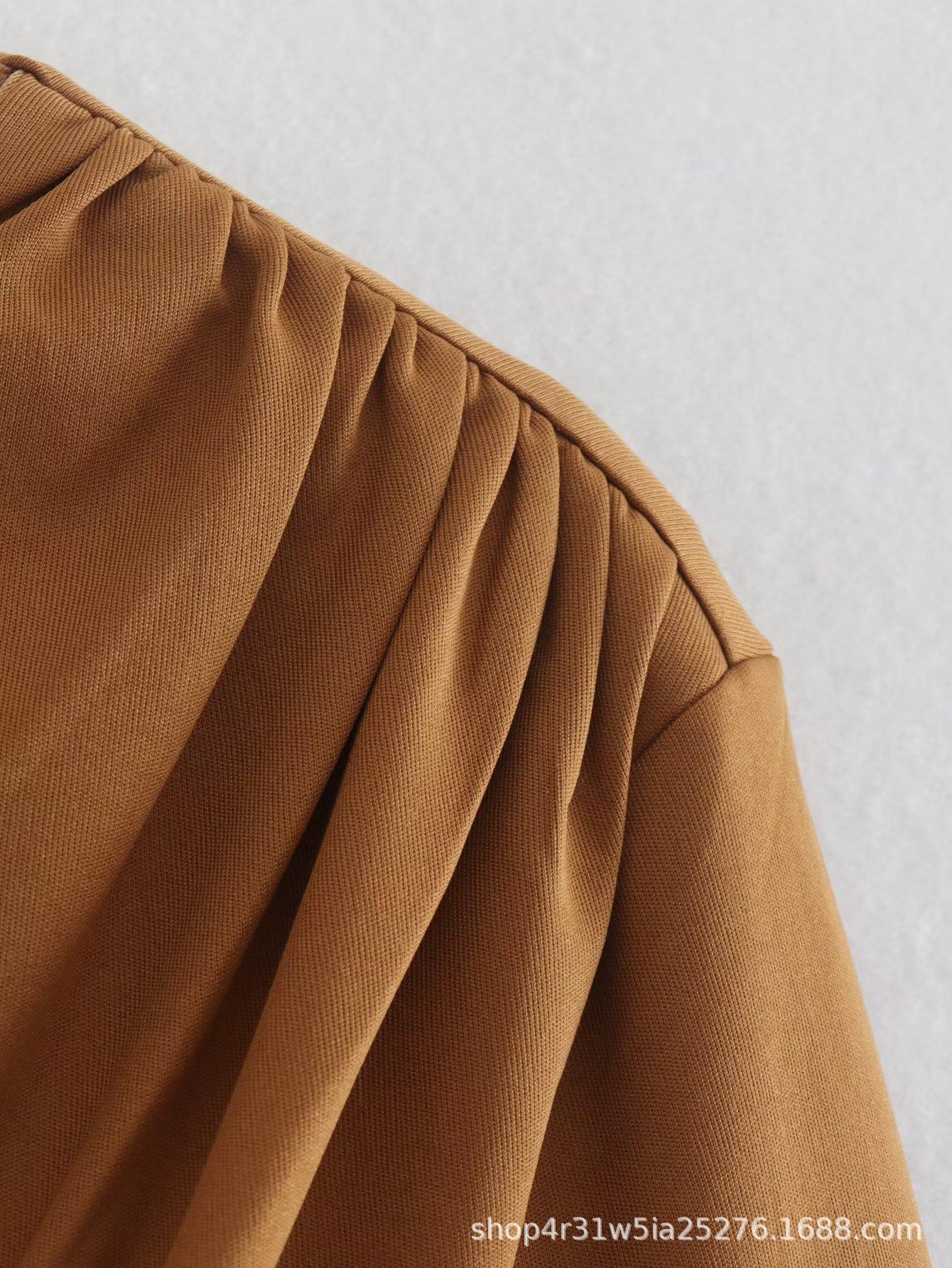 Venta al por mayor transfronteriza Otoño 2023 nueva moda casual cuello redondo manga larga hombrera plisado elástico top