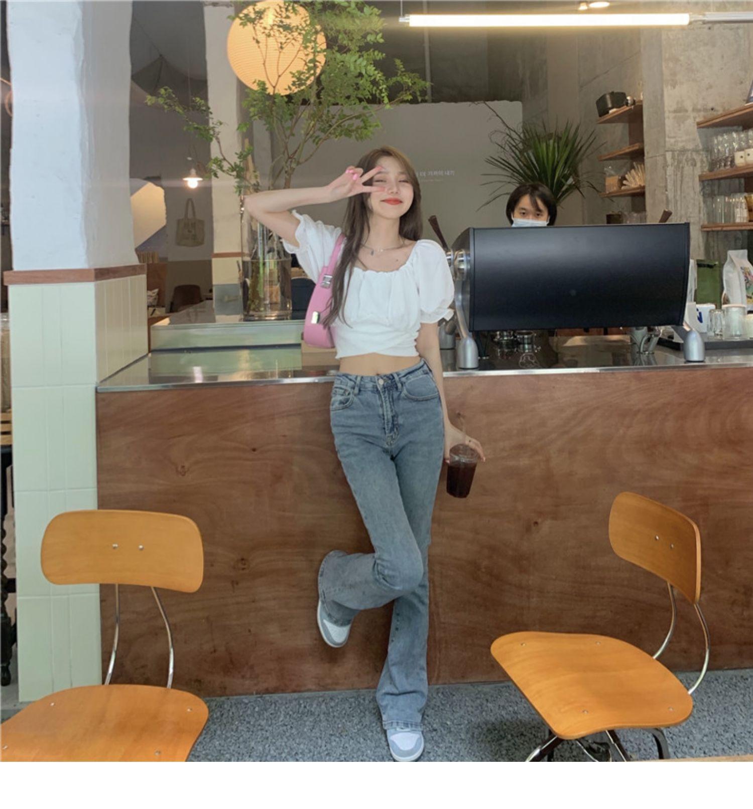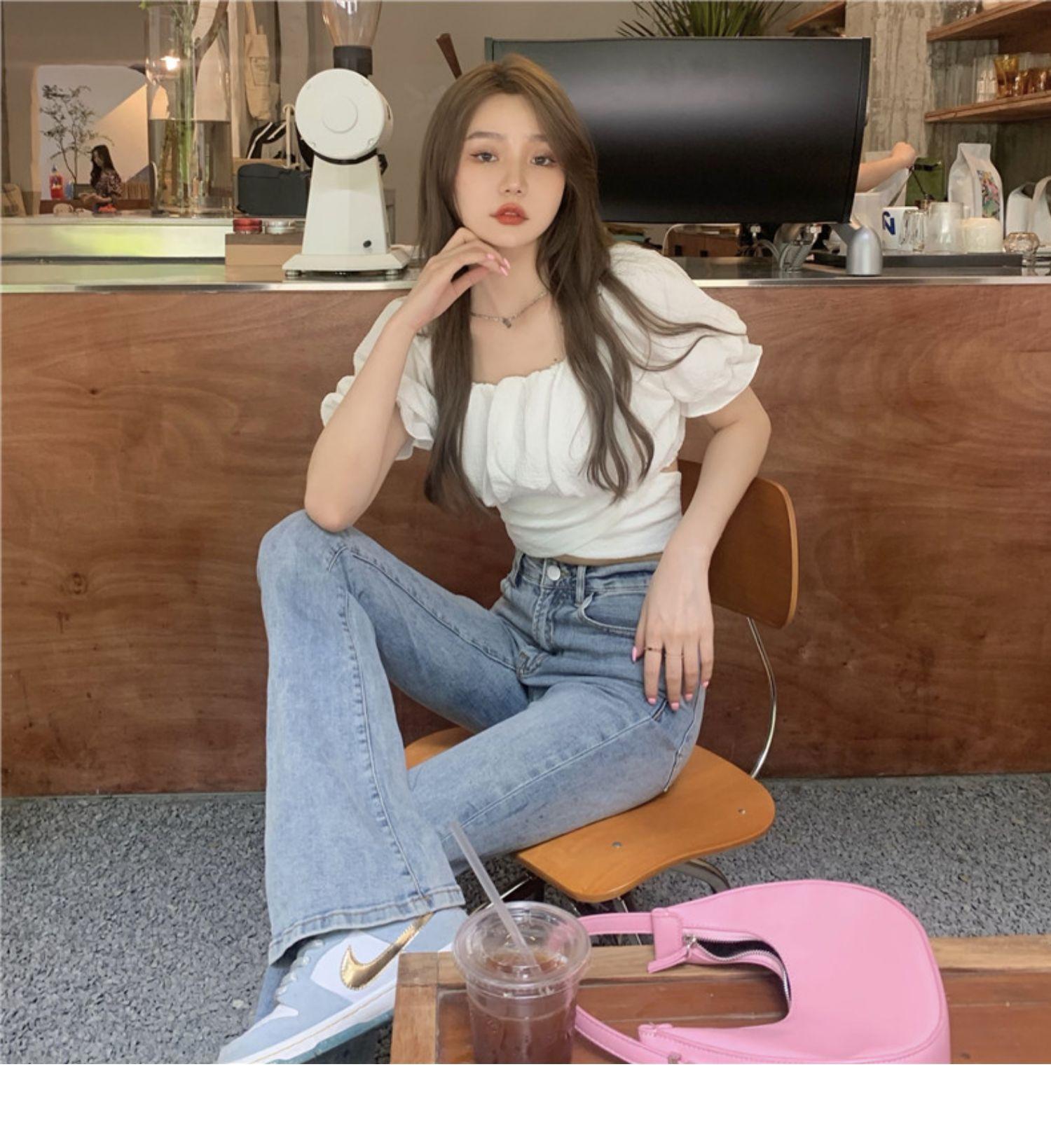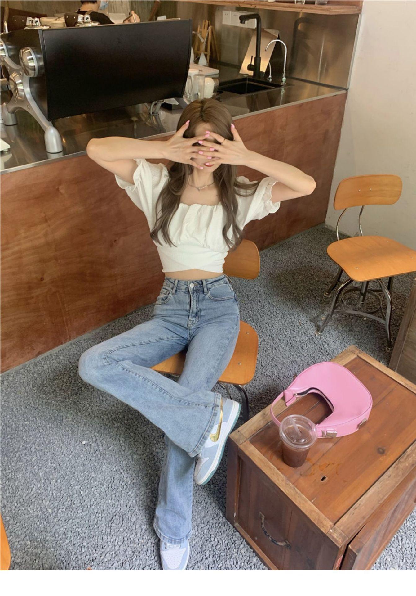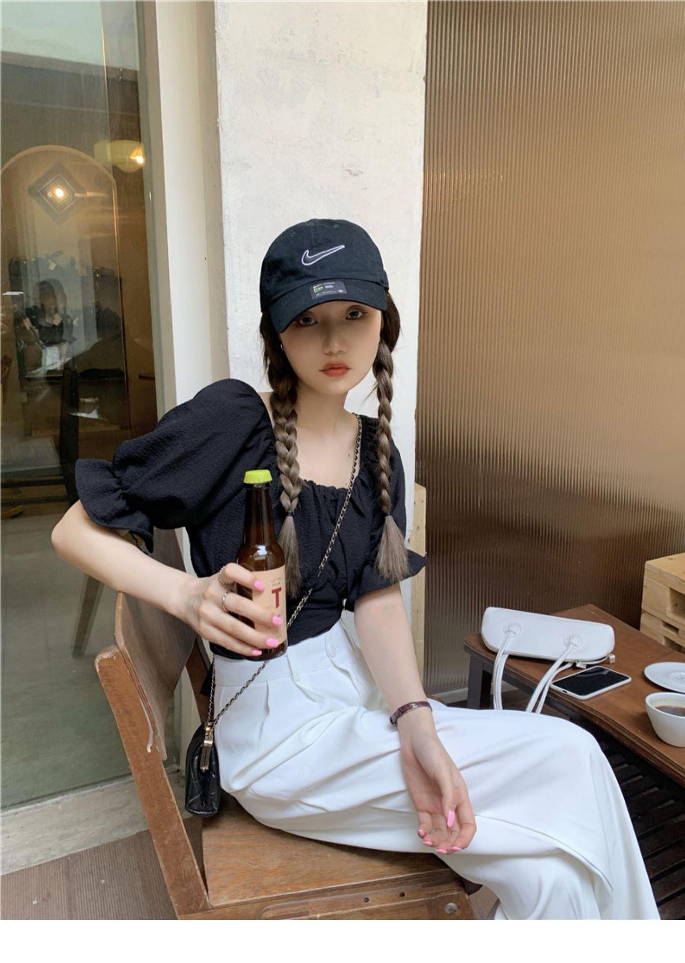 Top Blanco de Manga Abullonada para Mujer, Verano Corto Diseño Francés, Novedoso Camisa de Manga Corta Dulce y Picante con Lazo en la Espalda para Chicas Calientes