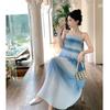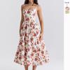 Vestido Floral Francés para Mujer Transfronterizo 2024 Verano Nuevo Cuello Cuadrado Cintura Adelgazante Pequeño Fresco Falda Midi