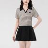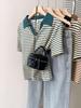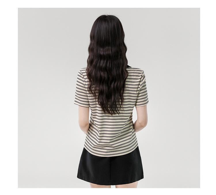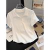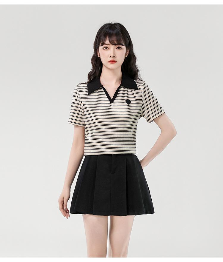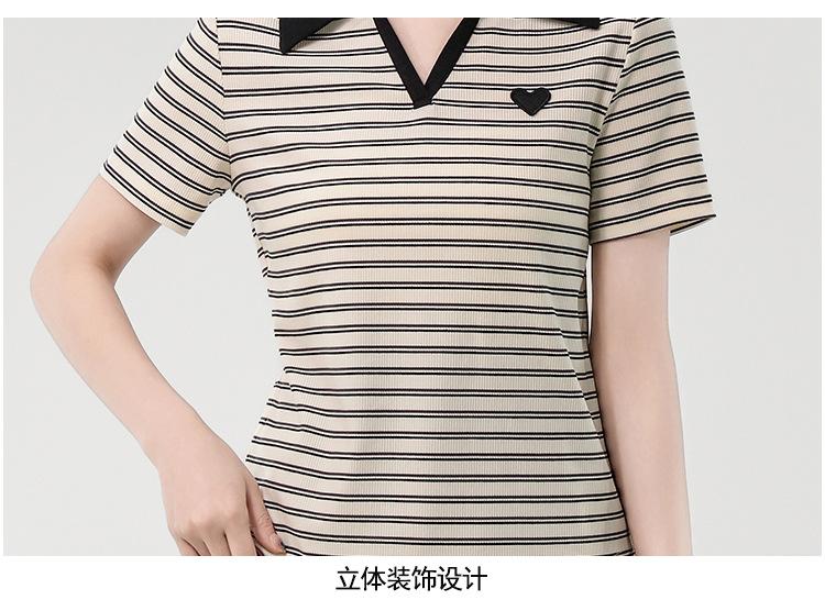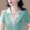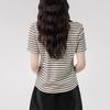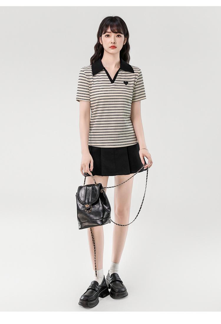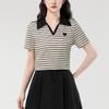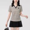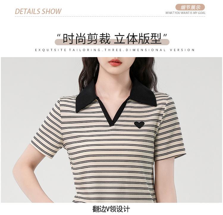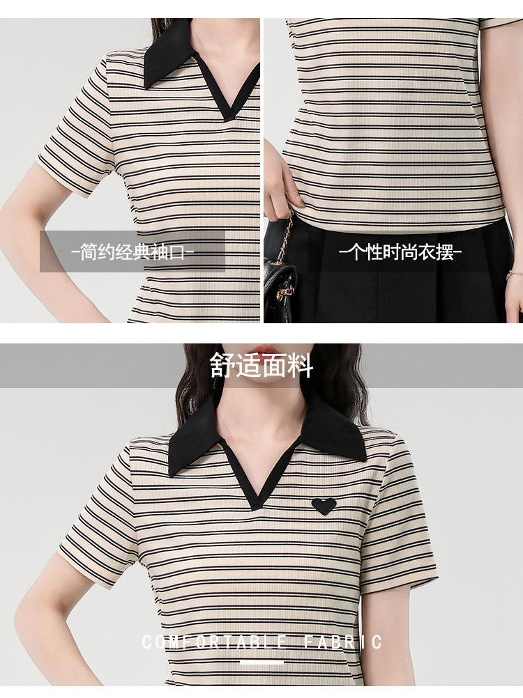 Playera de Manga Corta con Cuello Polo Rayado en Contraste Camisa Pequeña Verano 2025 Nueva Holgada Casual Hombro Moda para Mujer