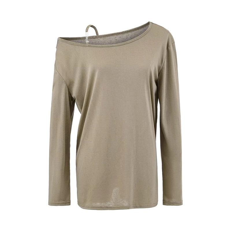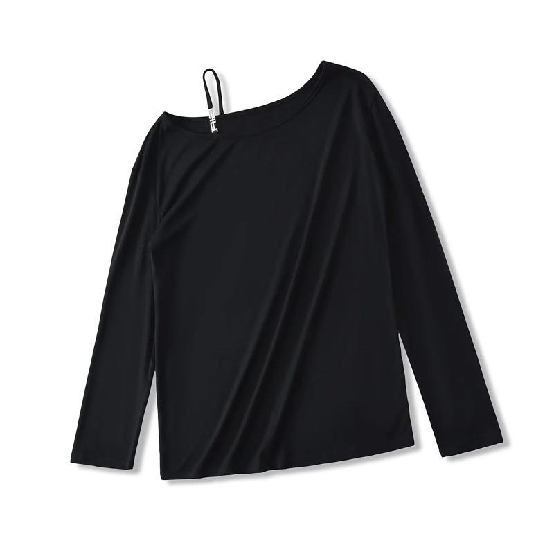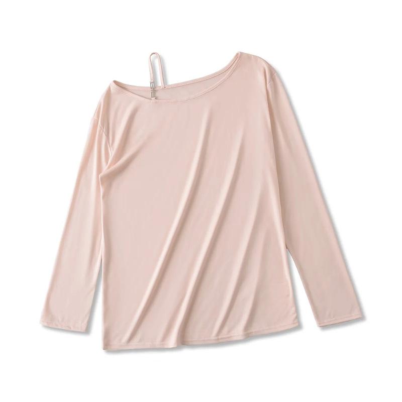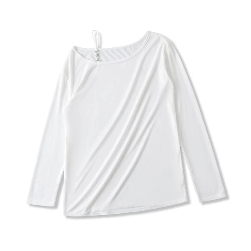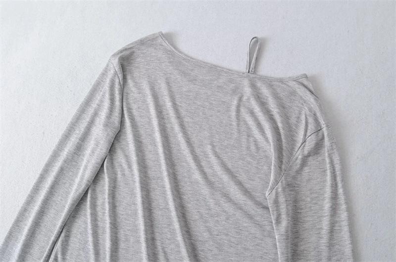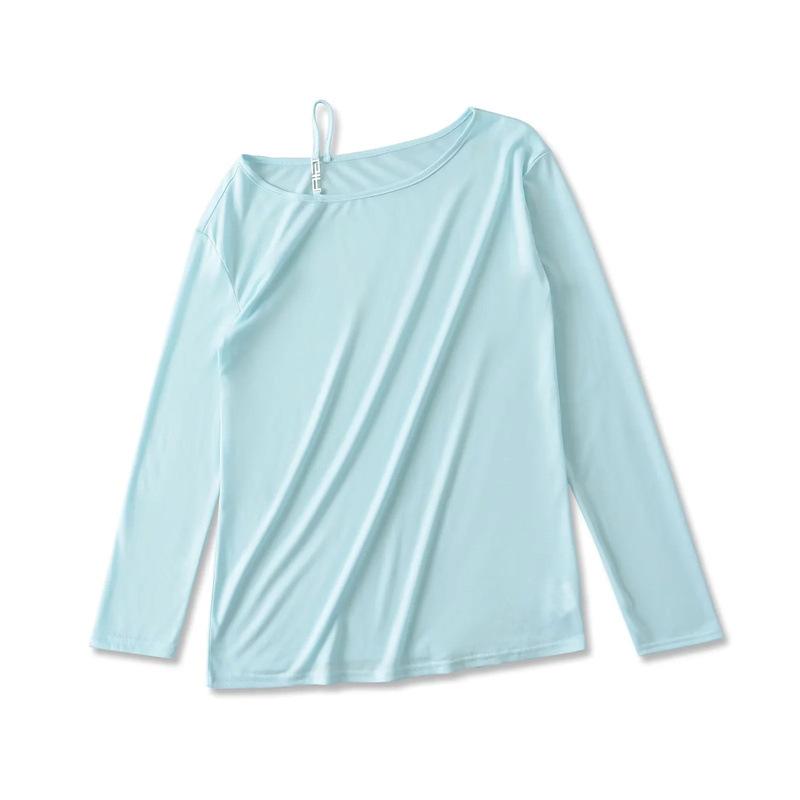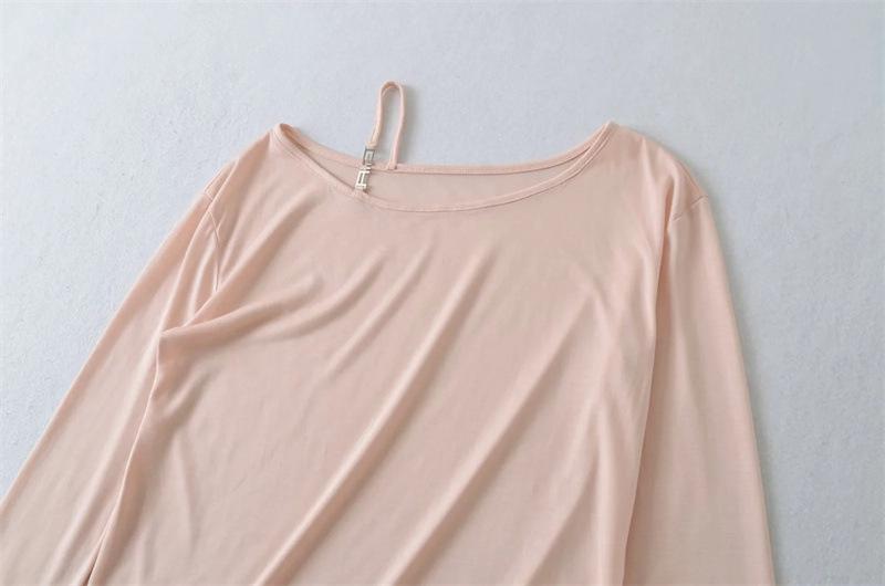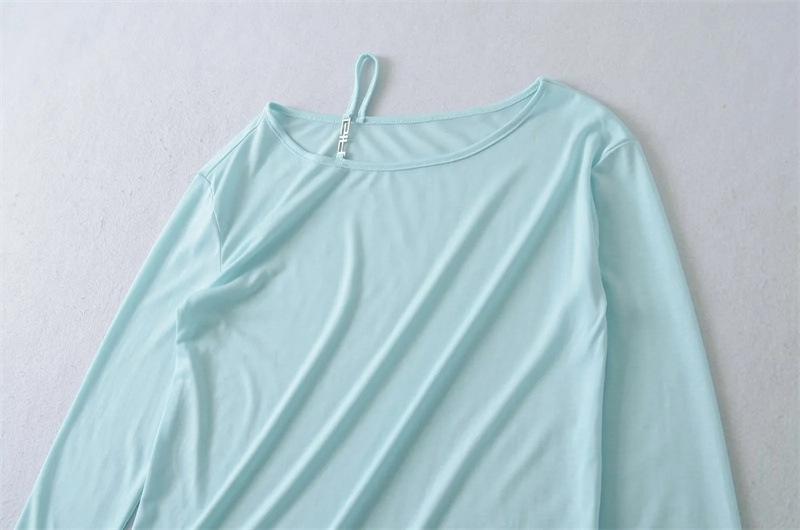 Blusa Sexy de Protección Solar Estilo Europeo y Americano 2025 Verano Tirante Único Hombro Inclinado Suelta Versátil Ligeramente Transparente Sexy Camiseta de Manga Larga