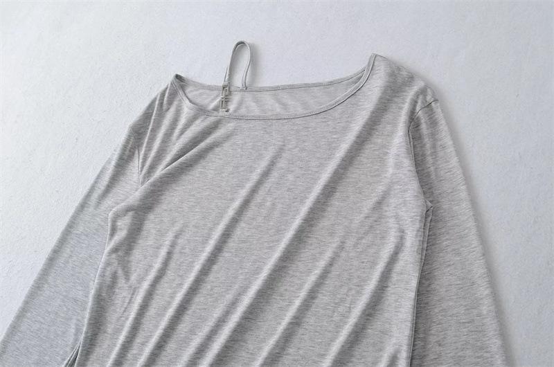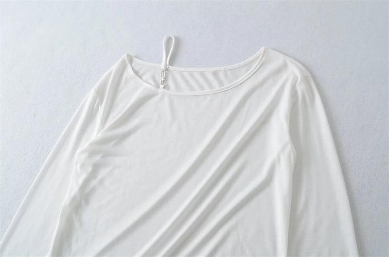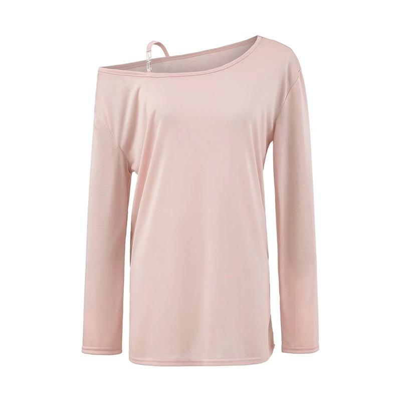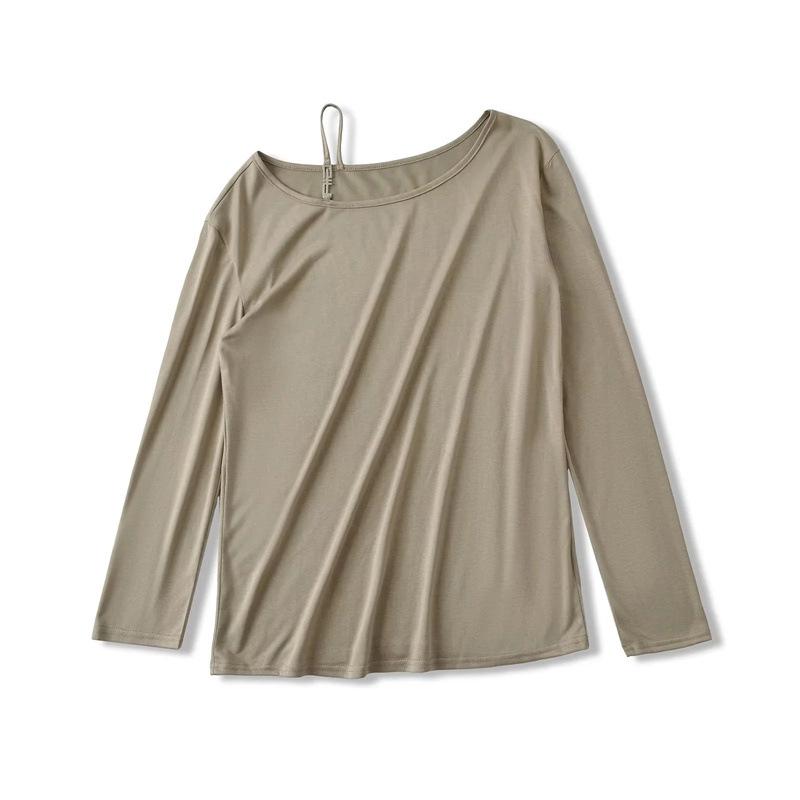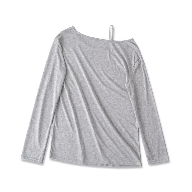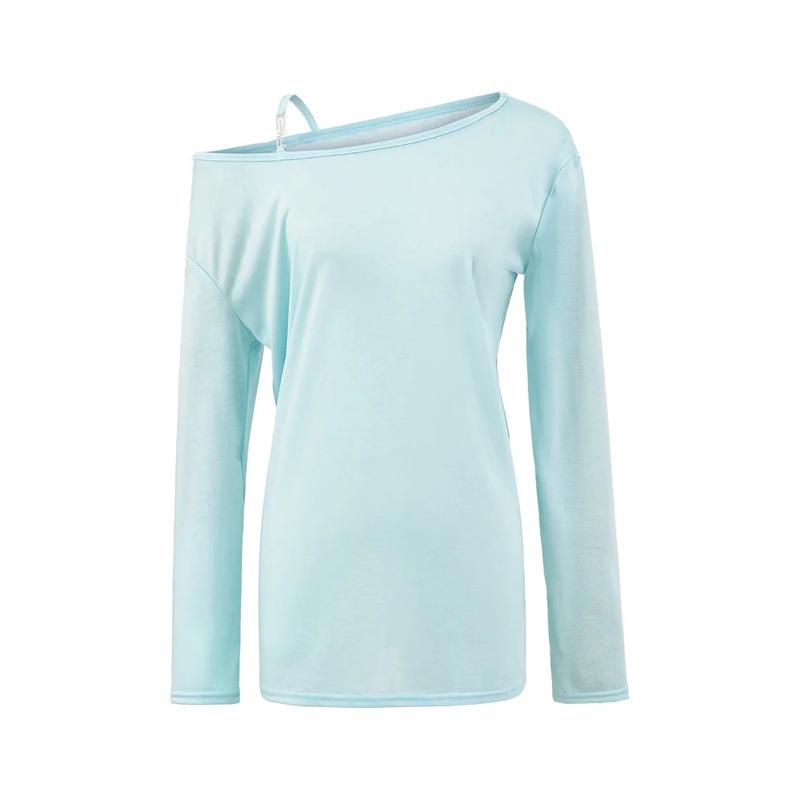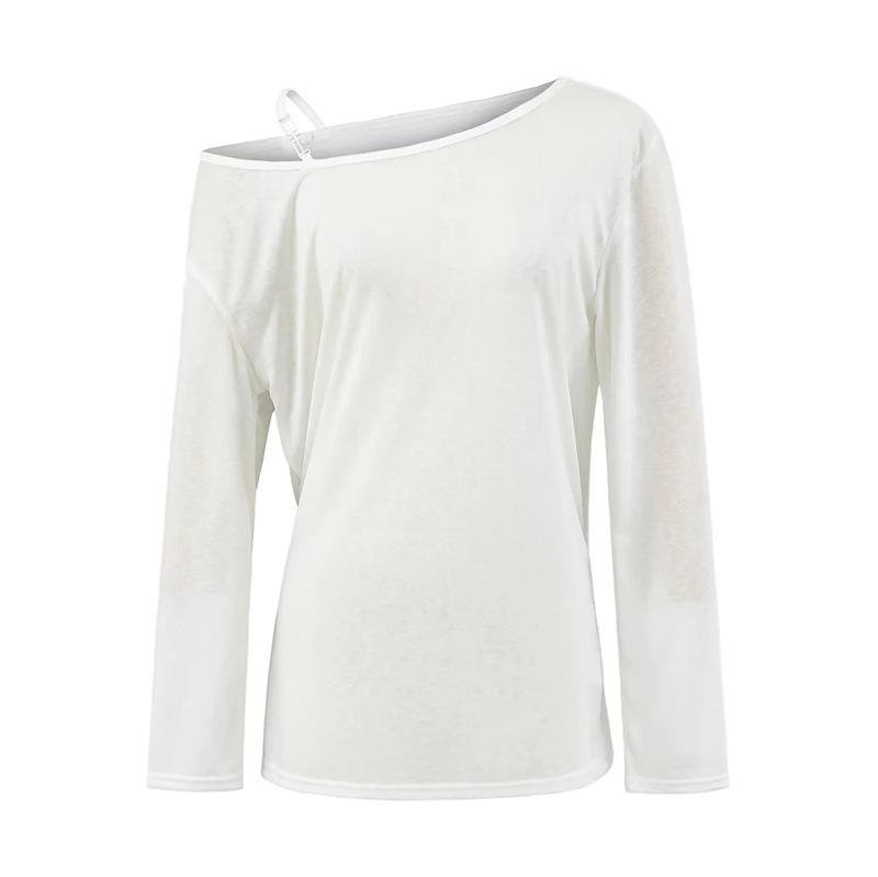 Blusa Sexy de Protección Solar Estilo Europeo y Americano 2025 Verano Tirante Único Hombro Inclinado Suelta Versátil Ligeramente Transparente Sexy Camiseta de Manga Larga