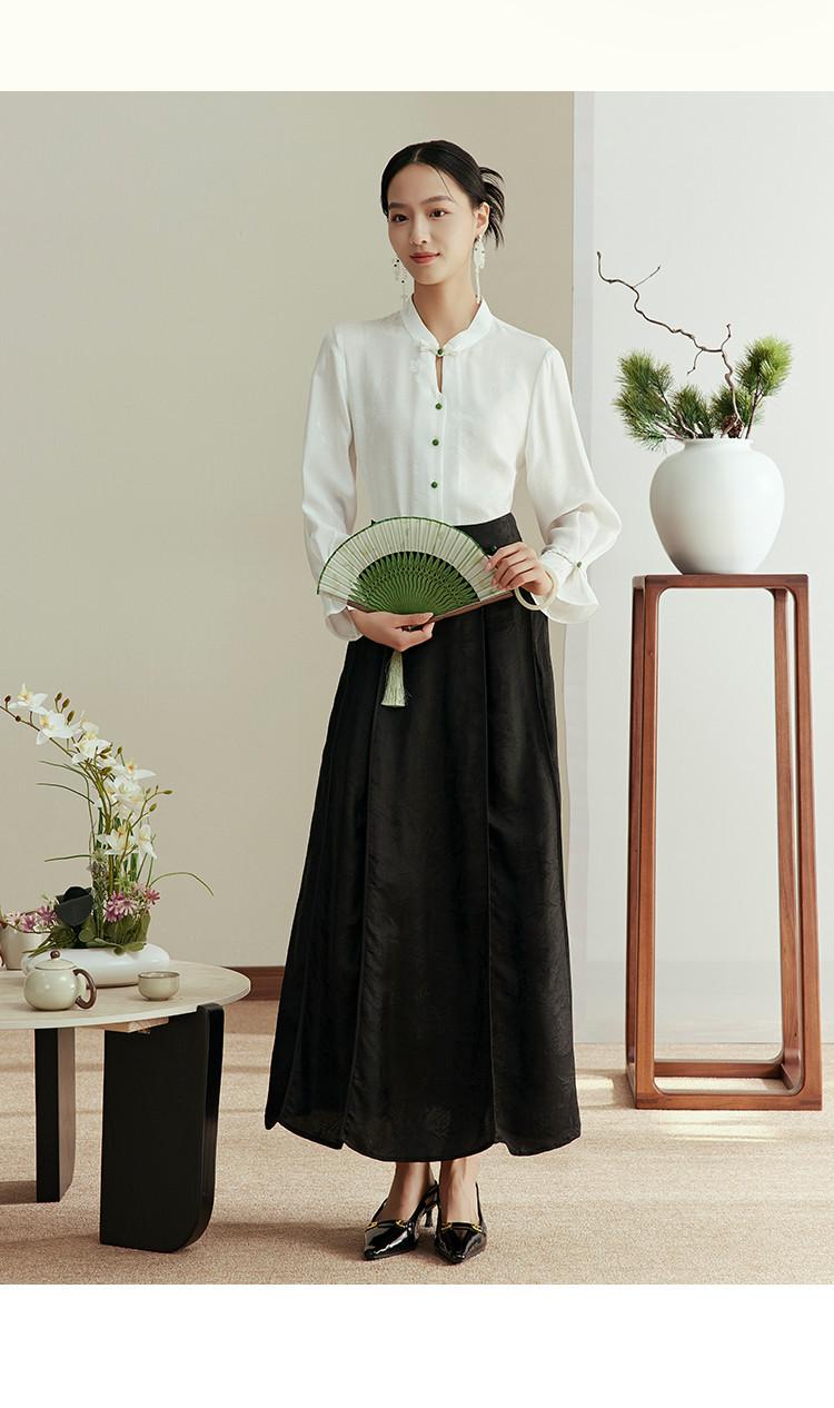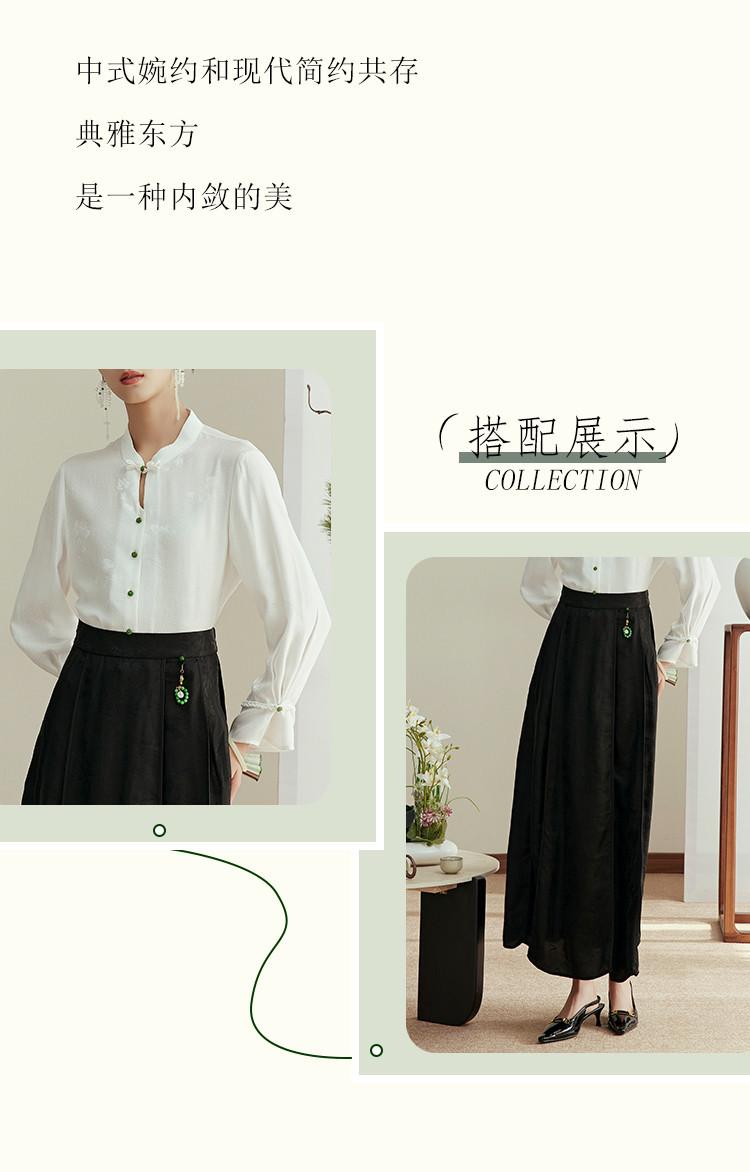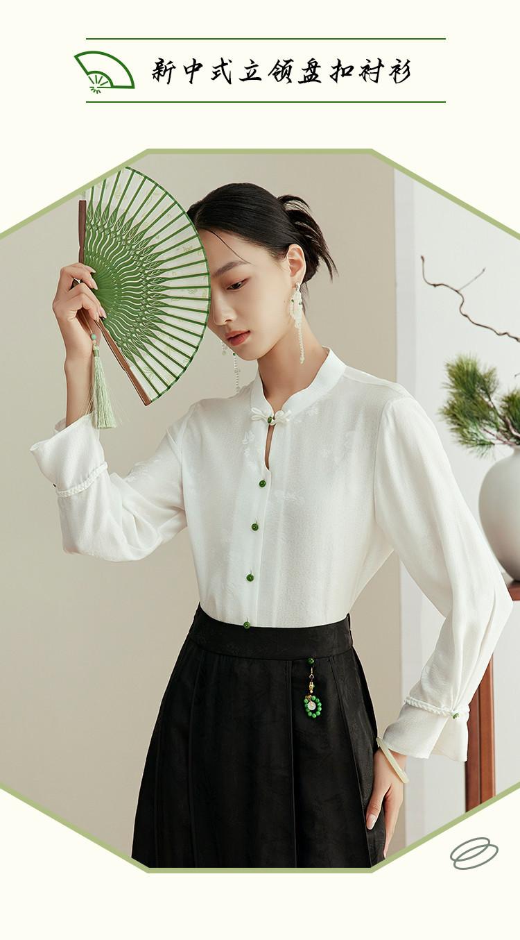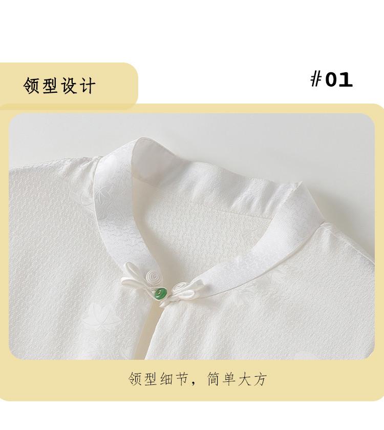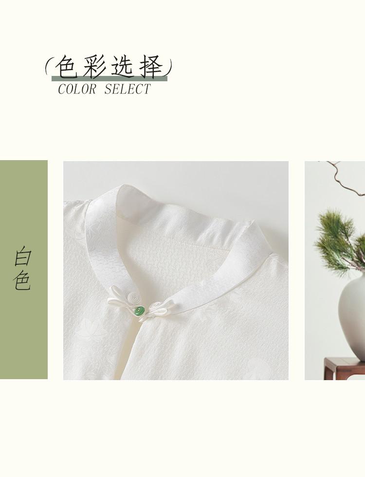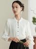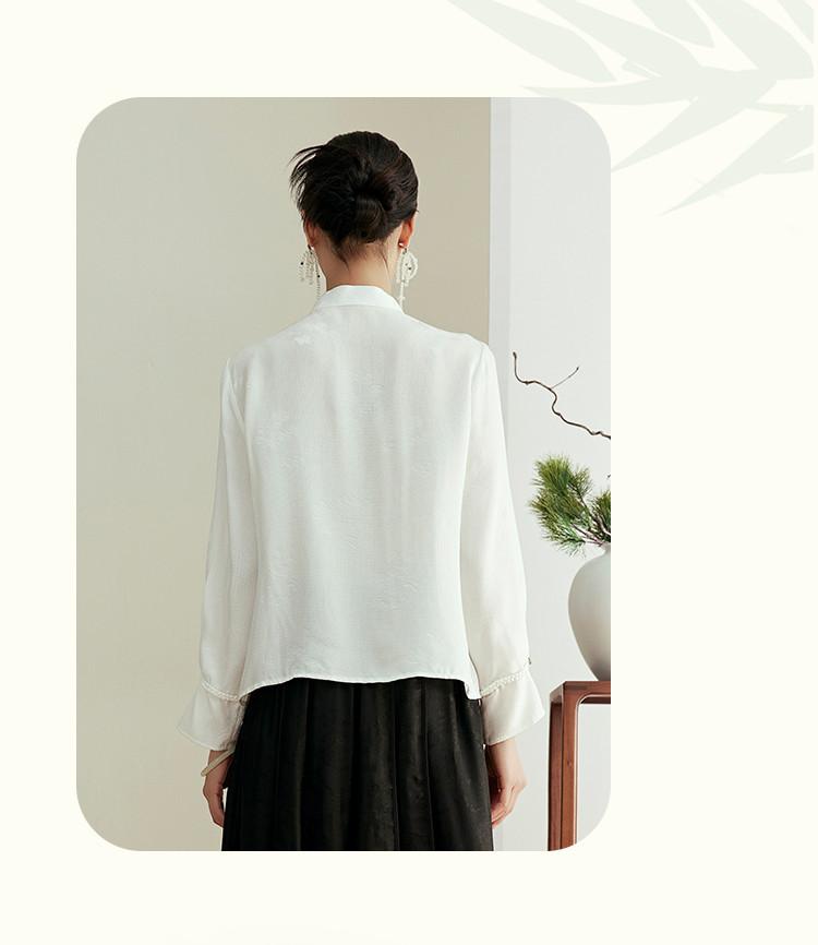 [Seda de Morera 100%] Primavera y Verano Nueva Seda Nuevo Estilo Chino Elegante Estilo Nacional Cuello Mao Abotonada Seda Camisa de Mujer