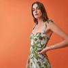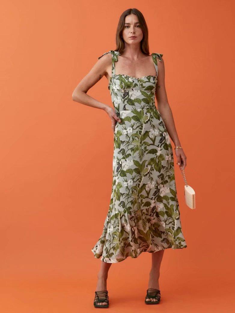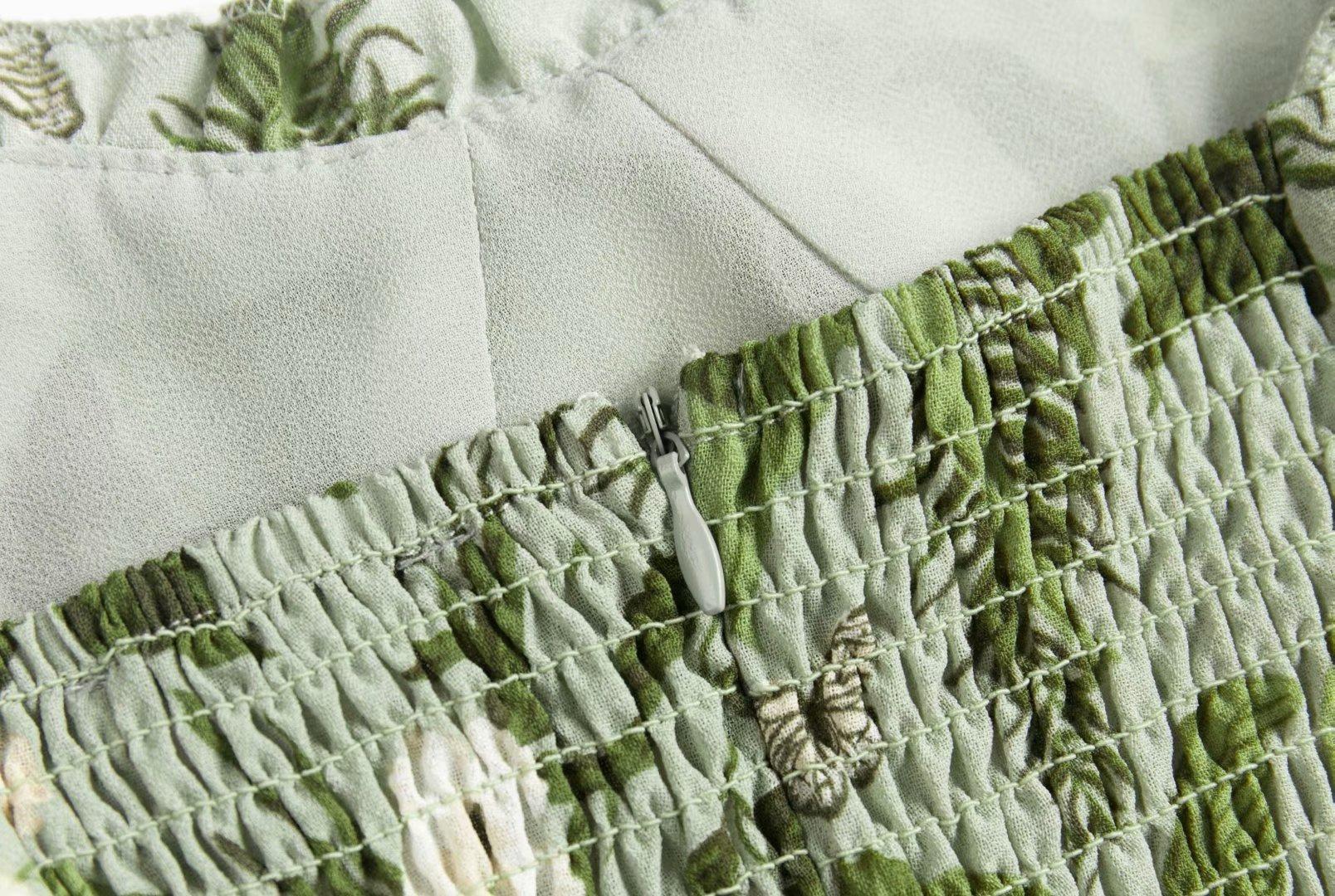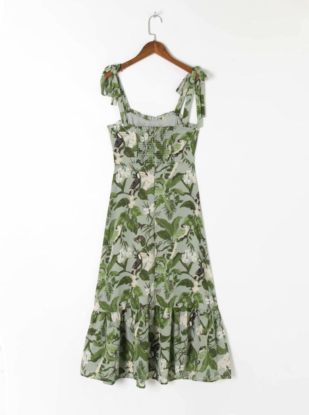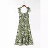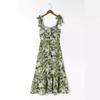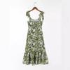 Verano Moda Europea y Americana Elegante Commuter Cintura Alta Estampado Floral Tirantes Vestido Midi con Volantes