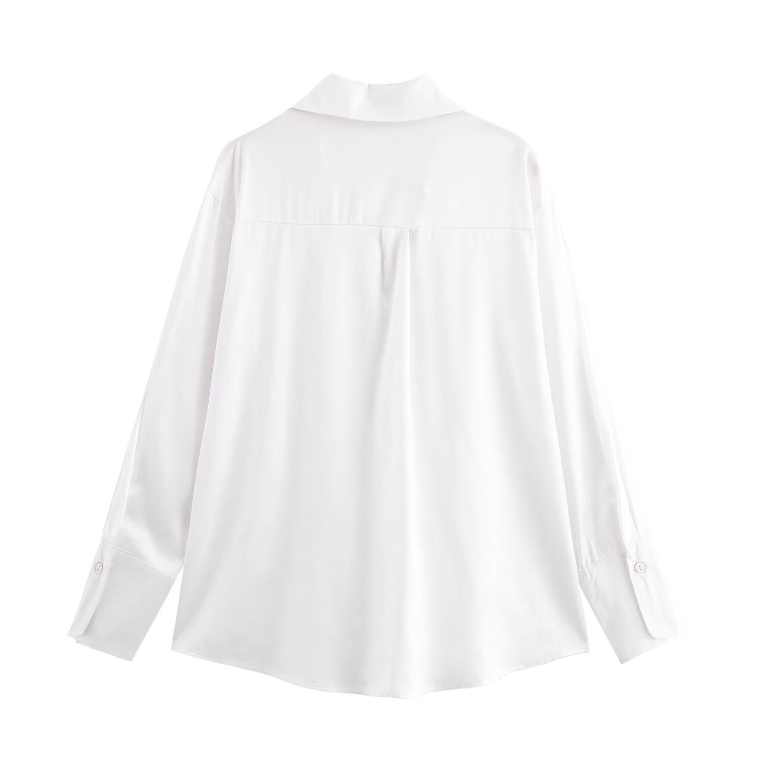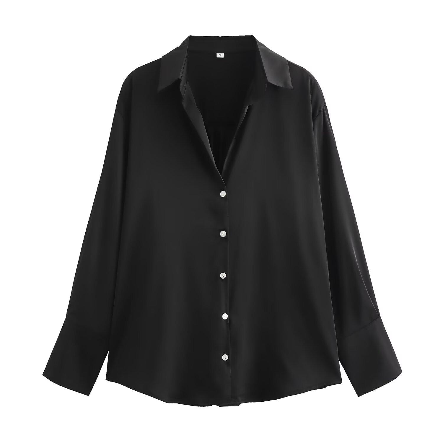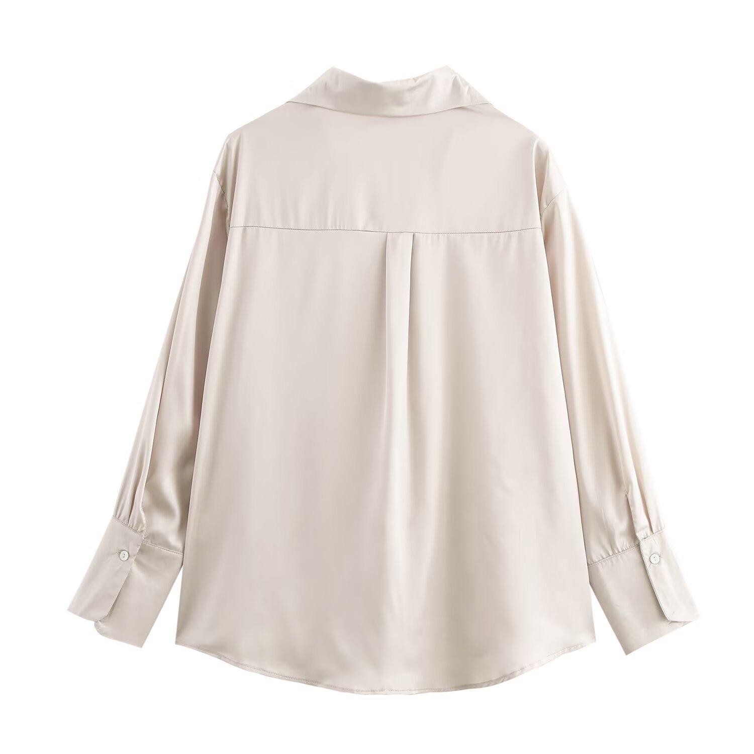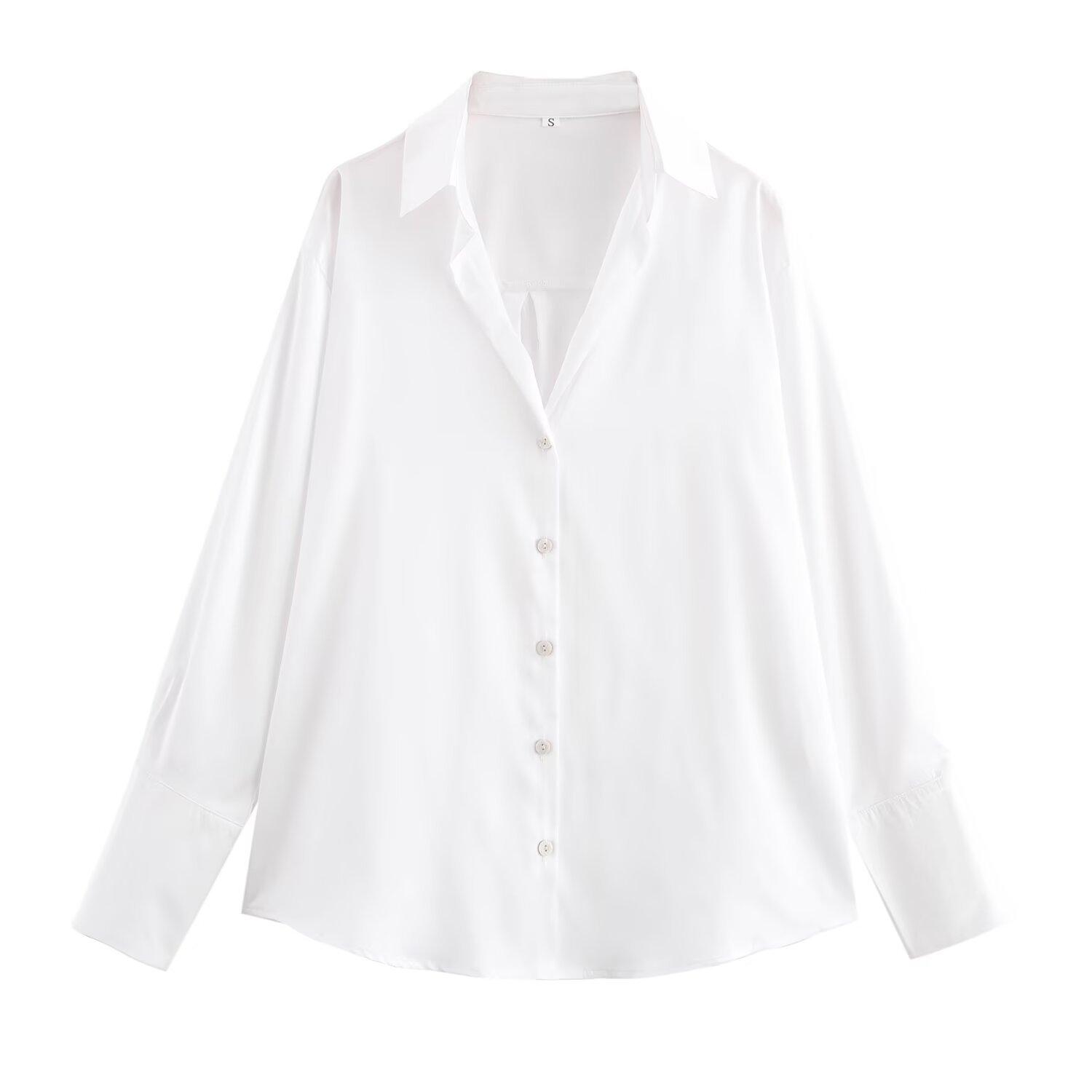 Ropa de Otoño para Mujer Nueva 2024 Estilo Europeo y Americano Moda Simple Versátil Textura Satén de Seda Camisa Clásica 8741036