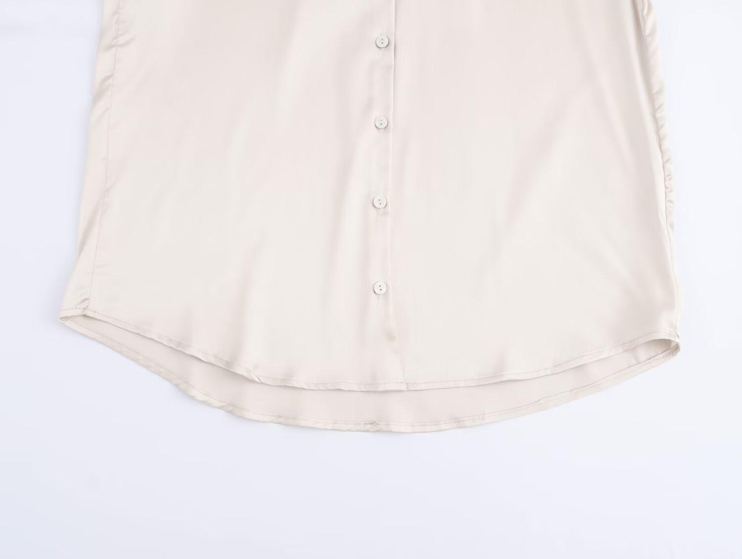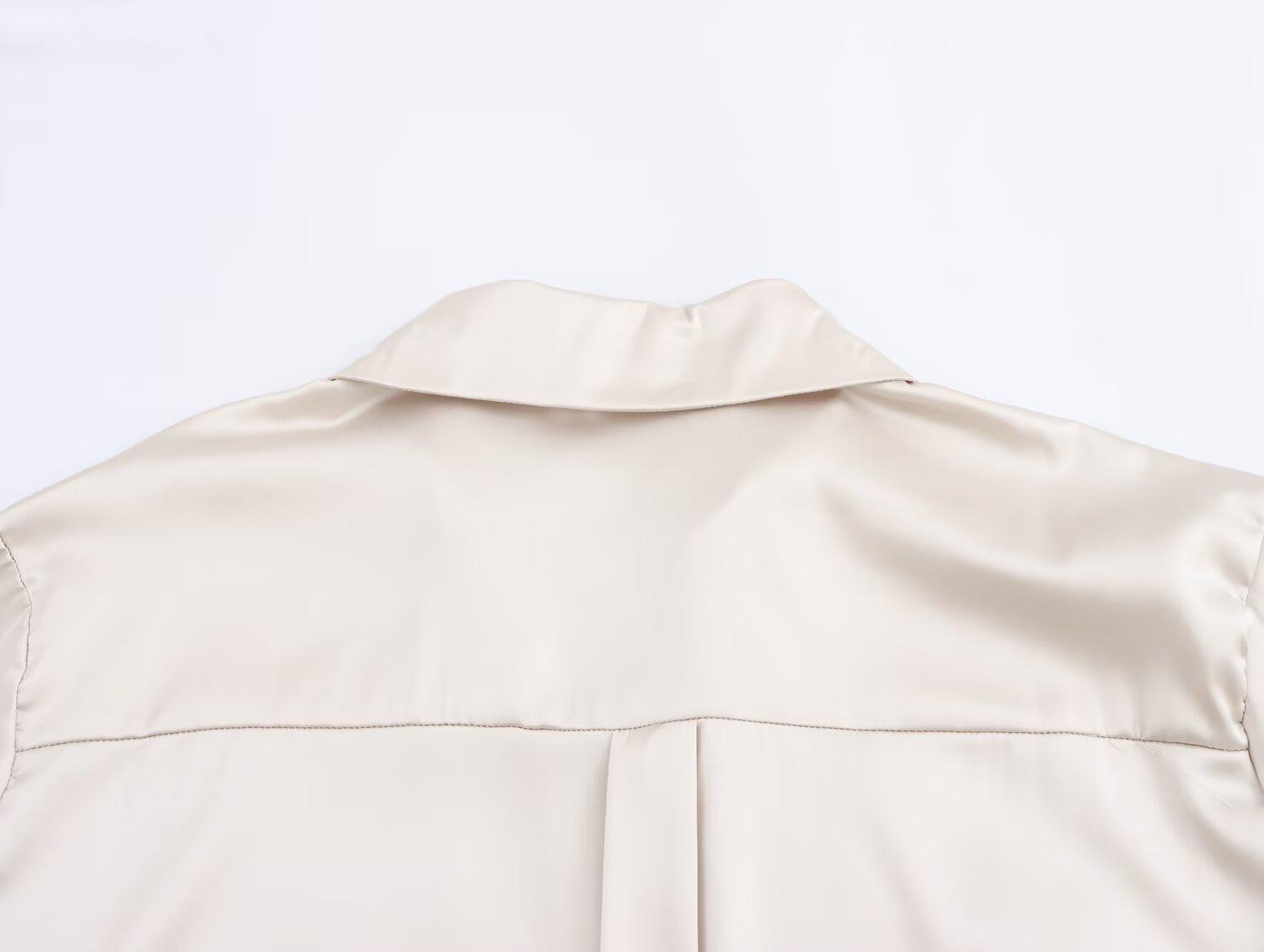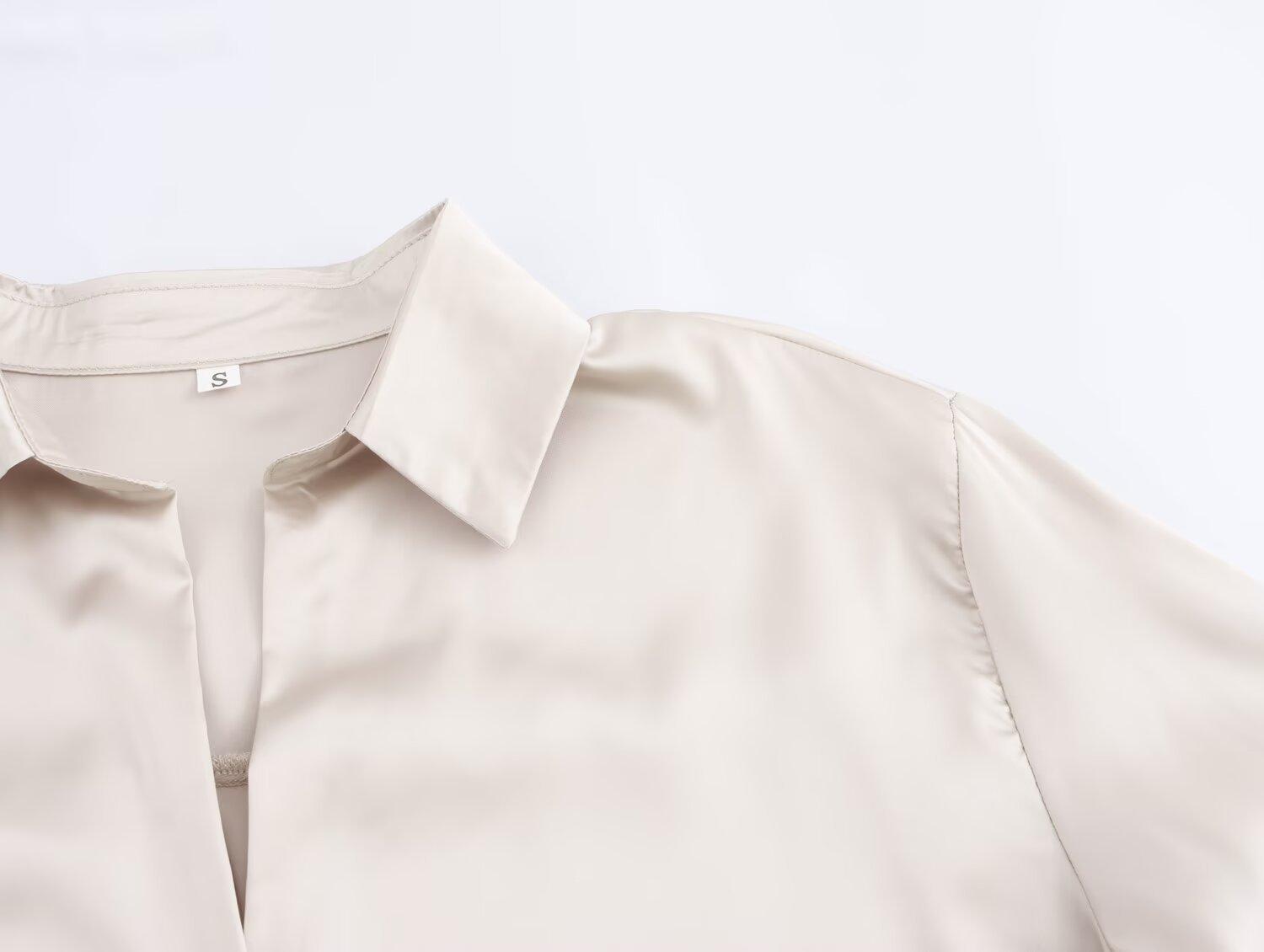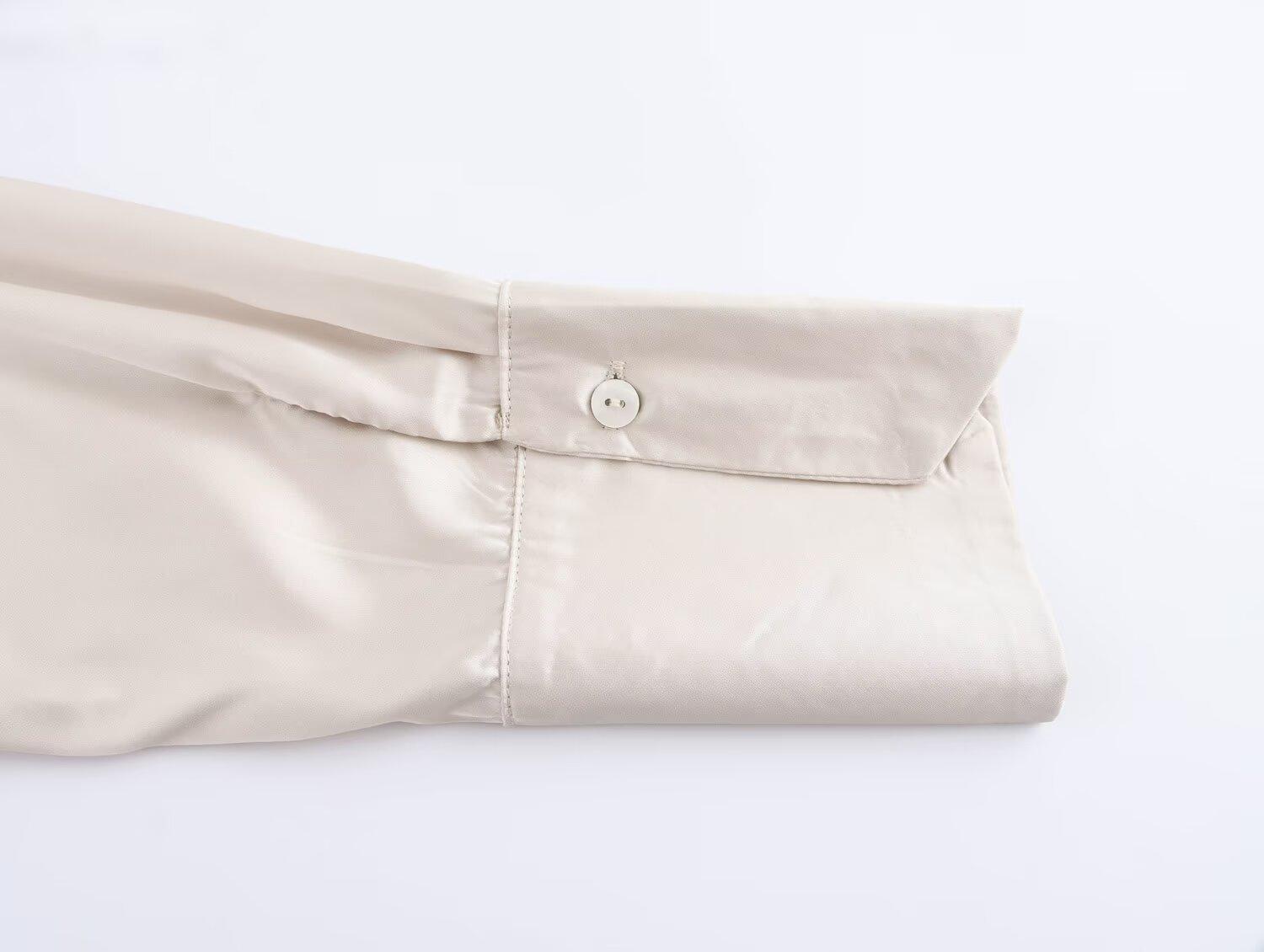 Ropa de Otoño para Mujer Nueva 2024 Estilo Europeo y Americano Moda Simple Versátil Textura Satén de Seda Camisa Clásica 8741036