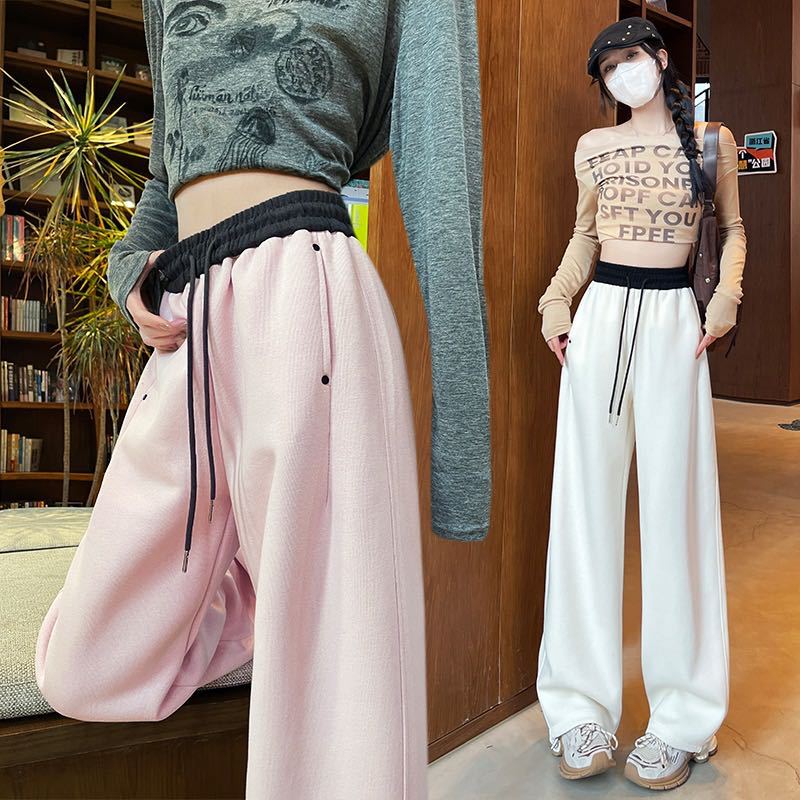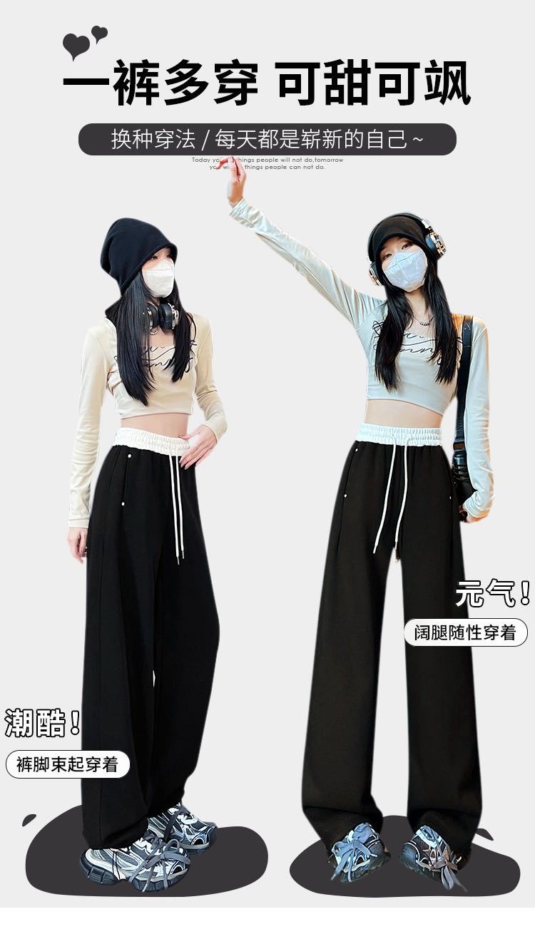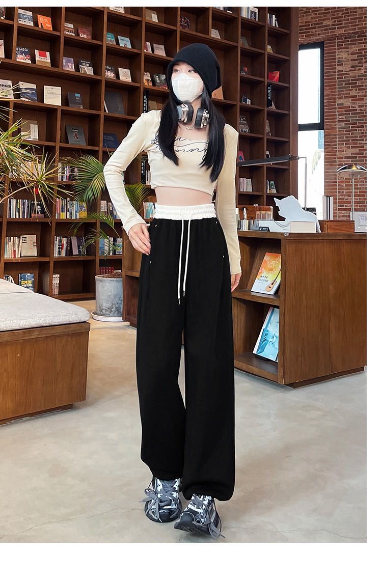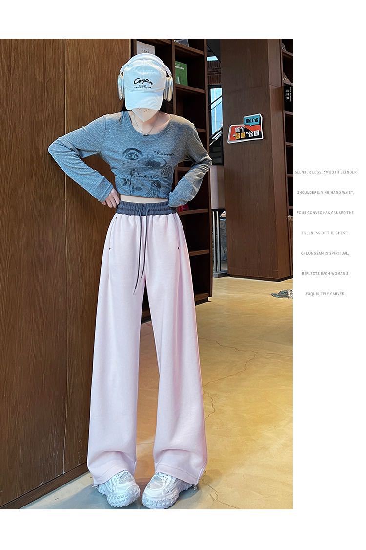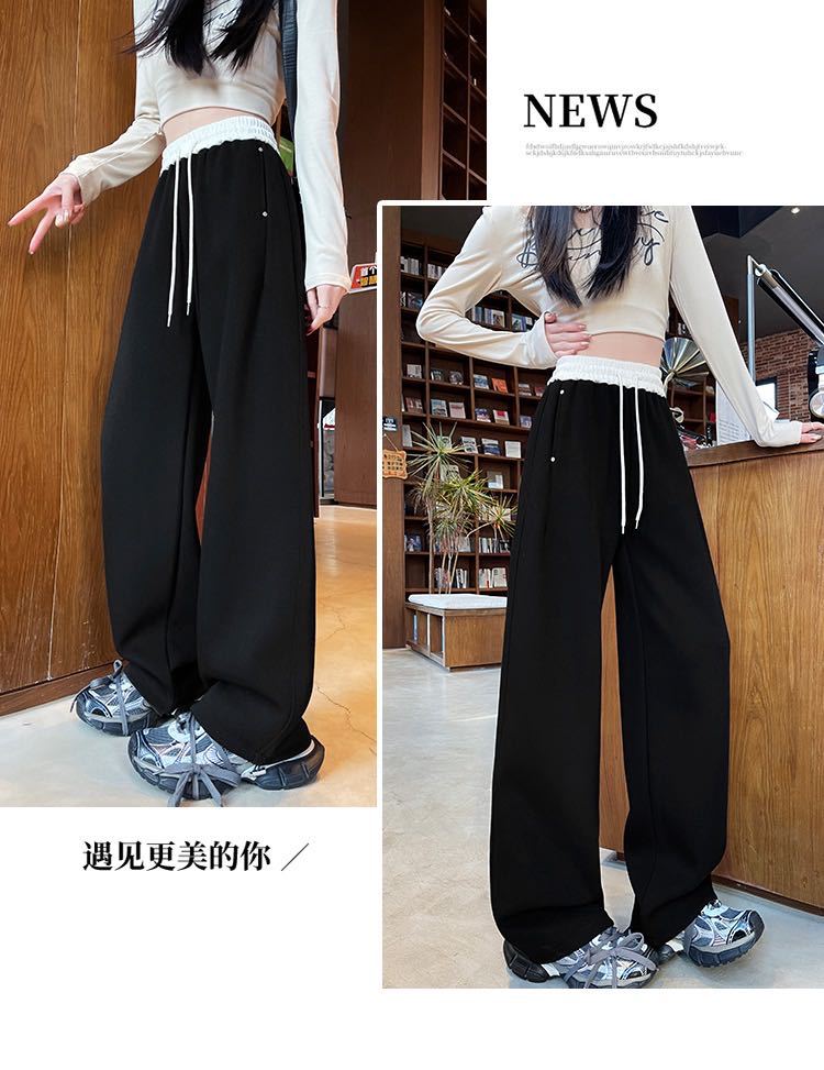 Pantalones Machete de Color Estilo Americano Doble Color Ortografía Elásticos Cintura Alta Adelgazantes Casuales Pantalones Deportivos para Mujer Combinación con Todo Sueltos con Cordón