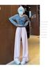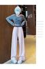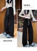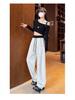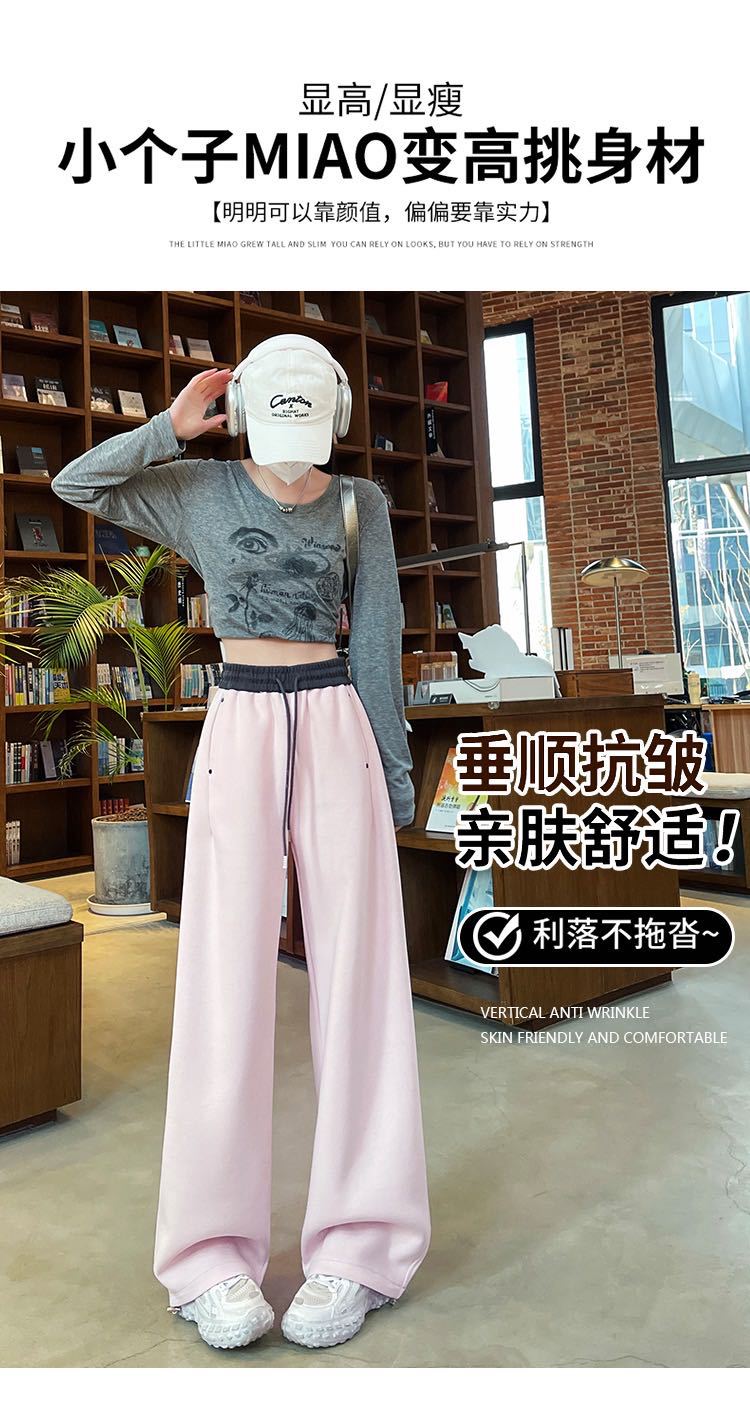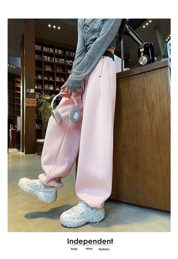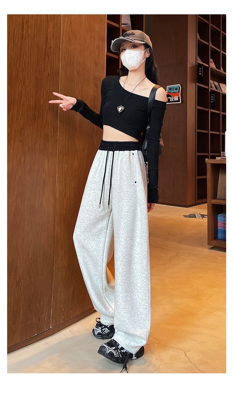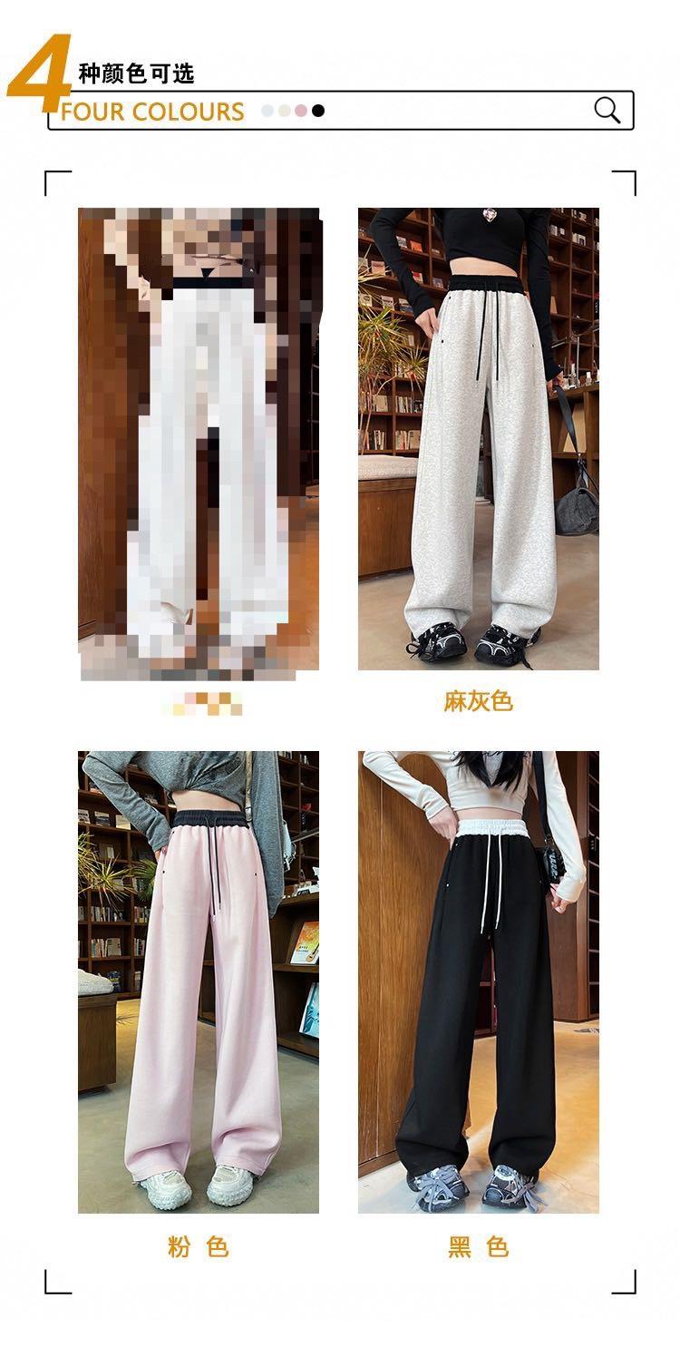 Pantalones Machete de Color Estilo Americano Doble Color Ortografía Elásticos Cintura Alta Adelgazantes Casuales Pantalones Deportivos para Mujer Combinación con Todo Sueltos con Cordón