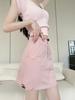 Falda de trabajo estilo americano para mujer, nuevo diseño de verano, cintura alta, corte A, falda a la cadera, falda ajustada con forro