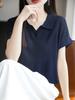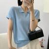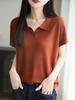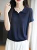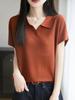 Polo Cuello Tencel Lyocell Tejido Manga Corta para Mujer Verano Nuevo Delgado Transpirable Adelgazante Color Sólido Camiseta Top Combinable