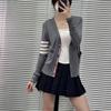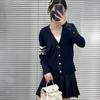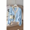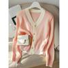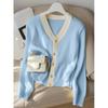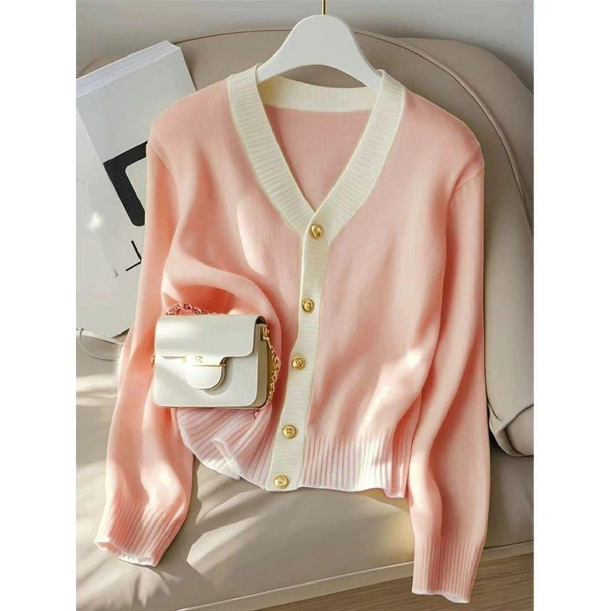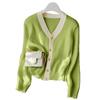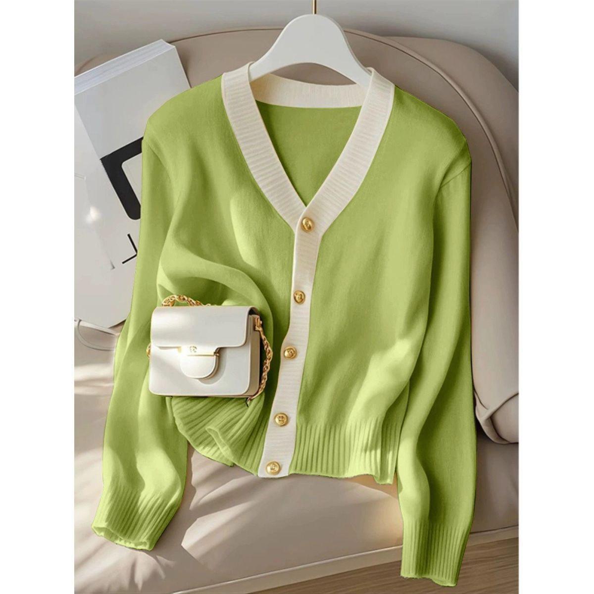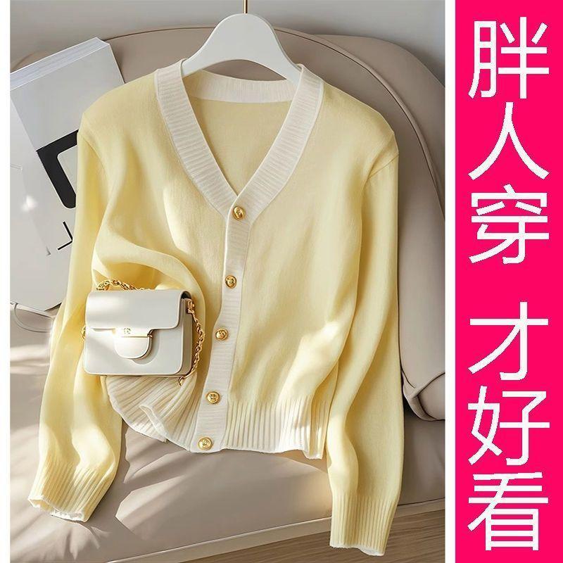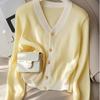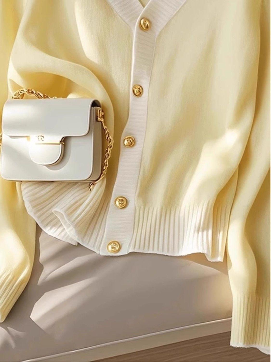[Mismo Estilo en el Mostrador] Primavera y Otoño 2025 Nuevo Estilo Cuello en V Fragante Pequeño Manga Larga Amarillo Claro Elegante Estilo Occidental Prendas de Punto para Mujer