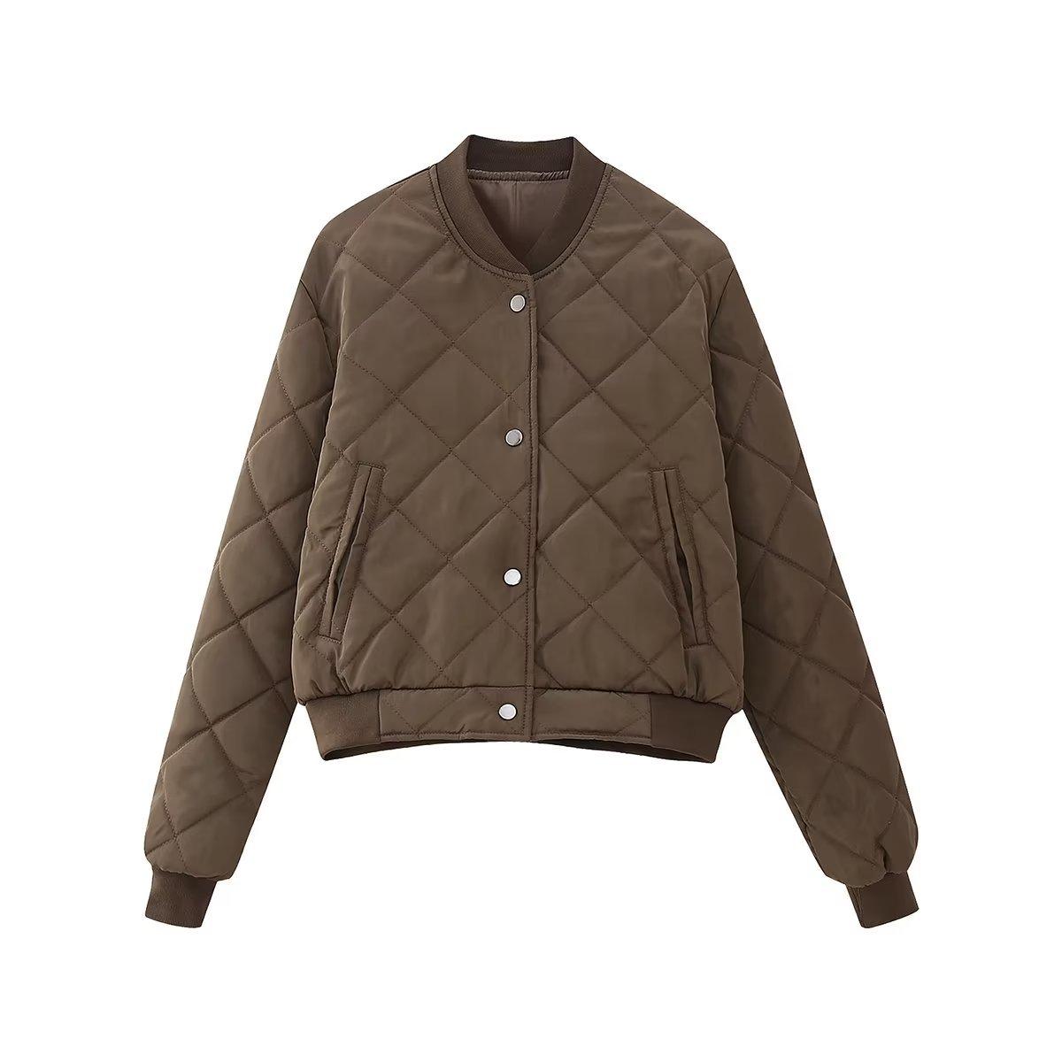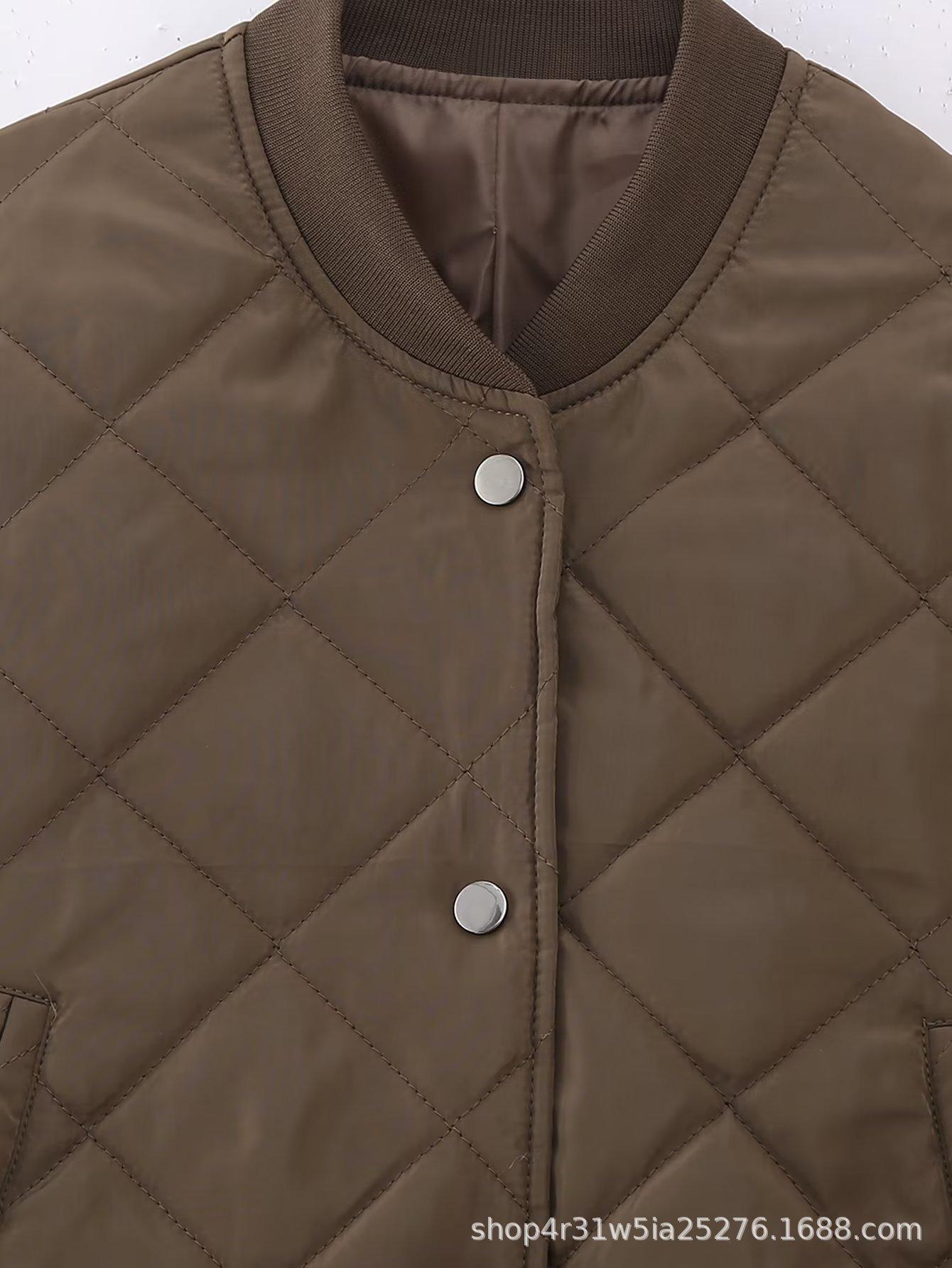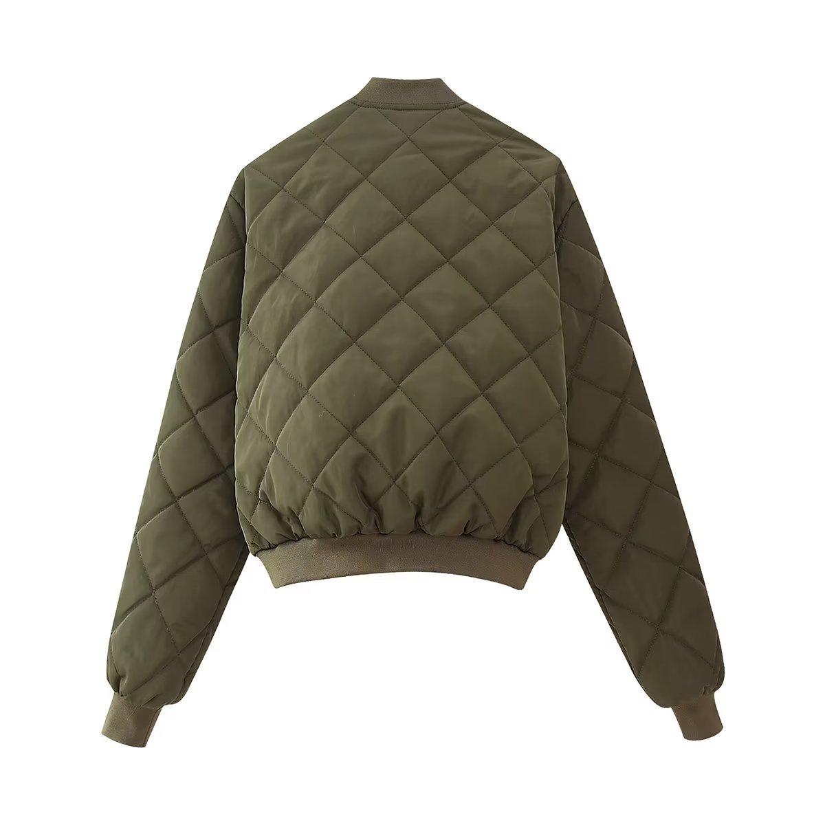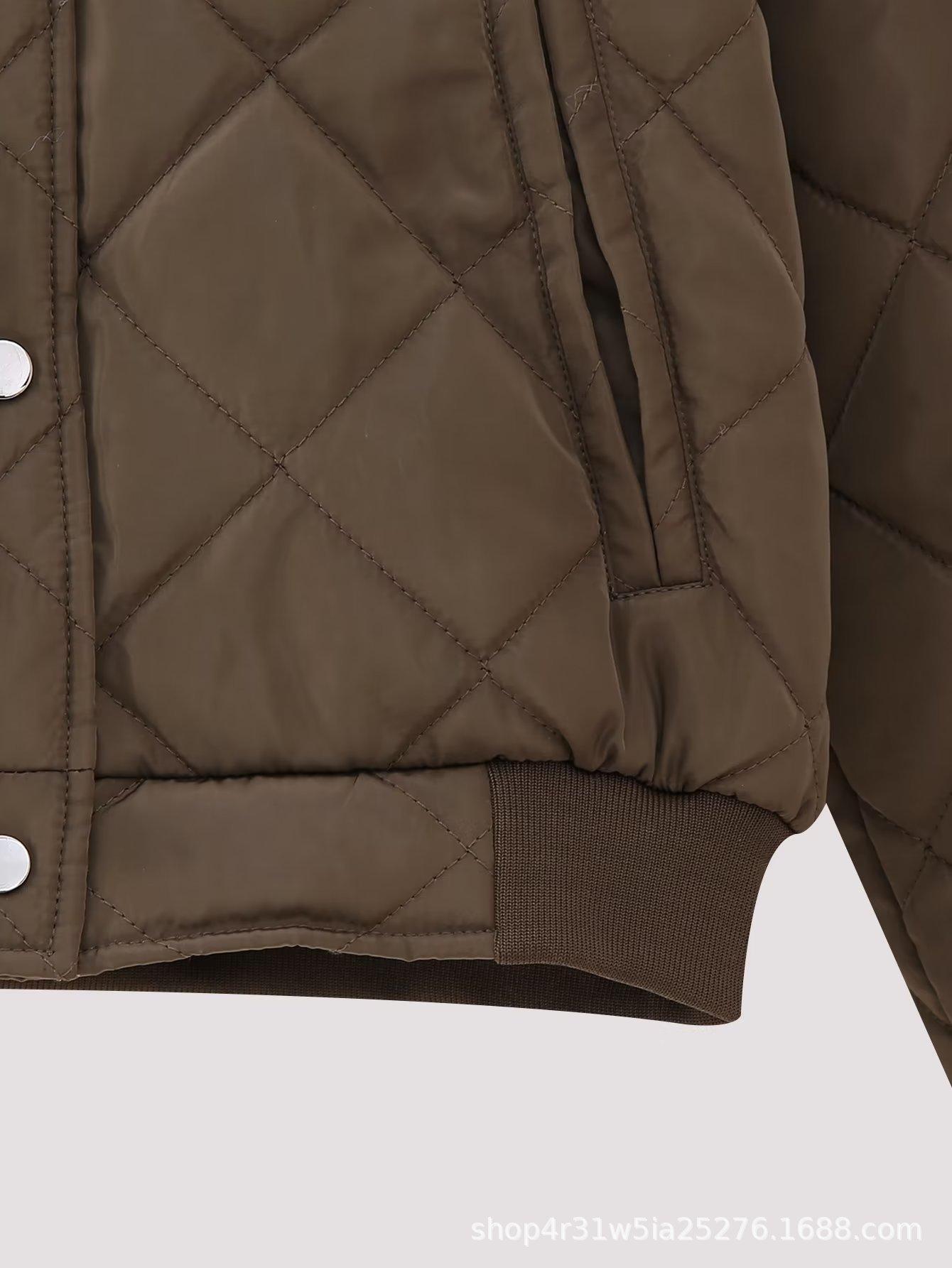 Venta al por mayor transfronteriza Otoño e Invierno 2023 Nueva Moda Chaqueta de Algodón con Cuello Alto y Cuadros Diamante