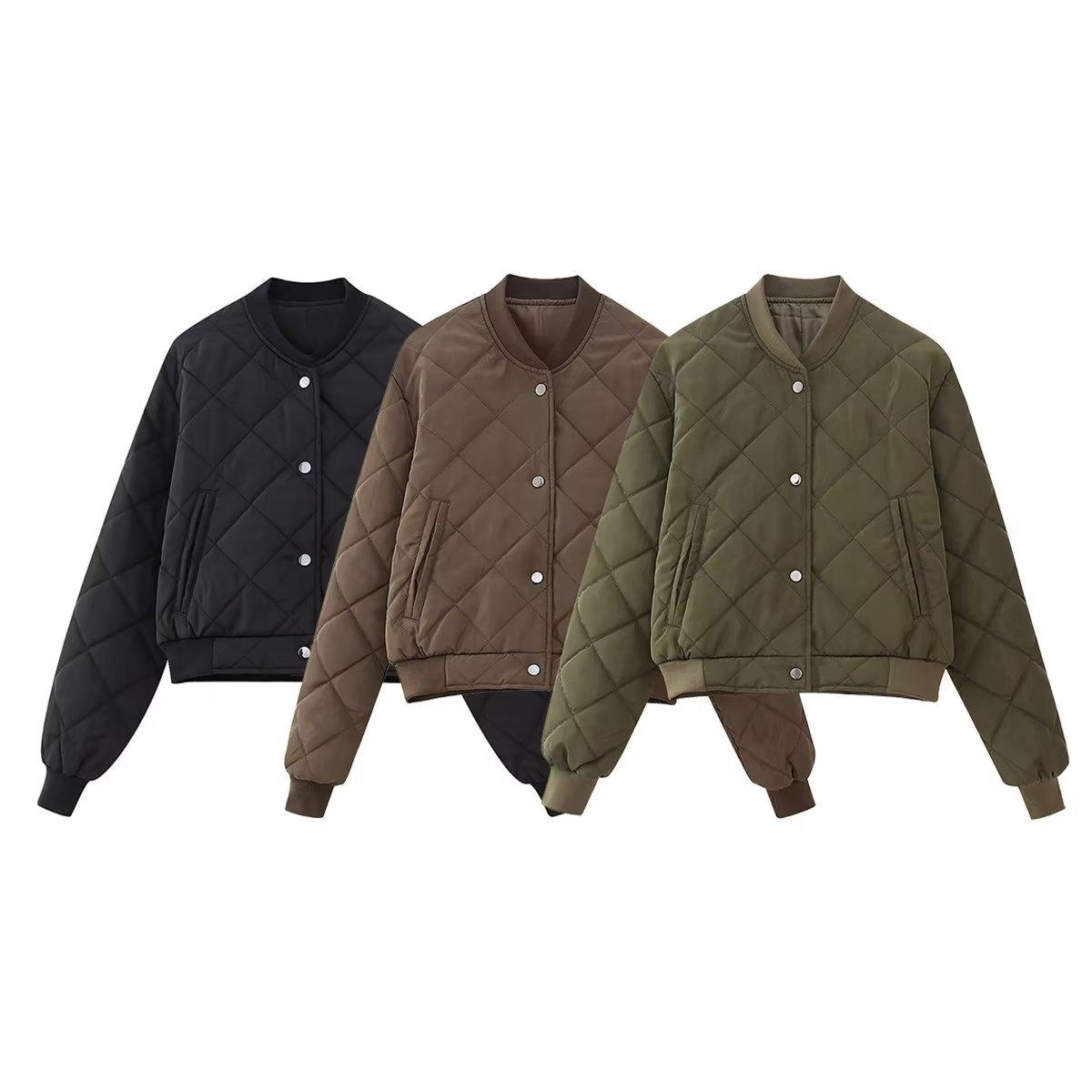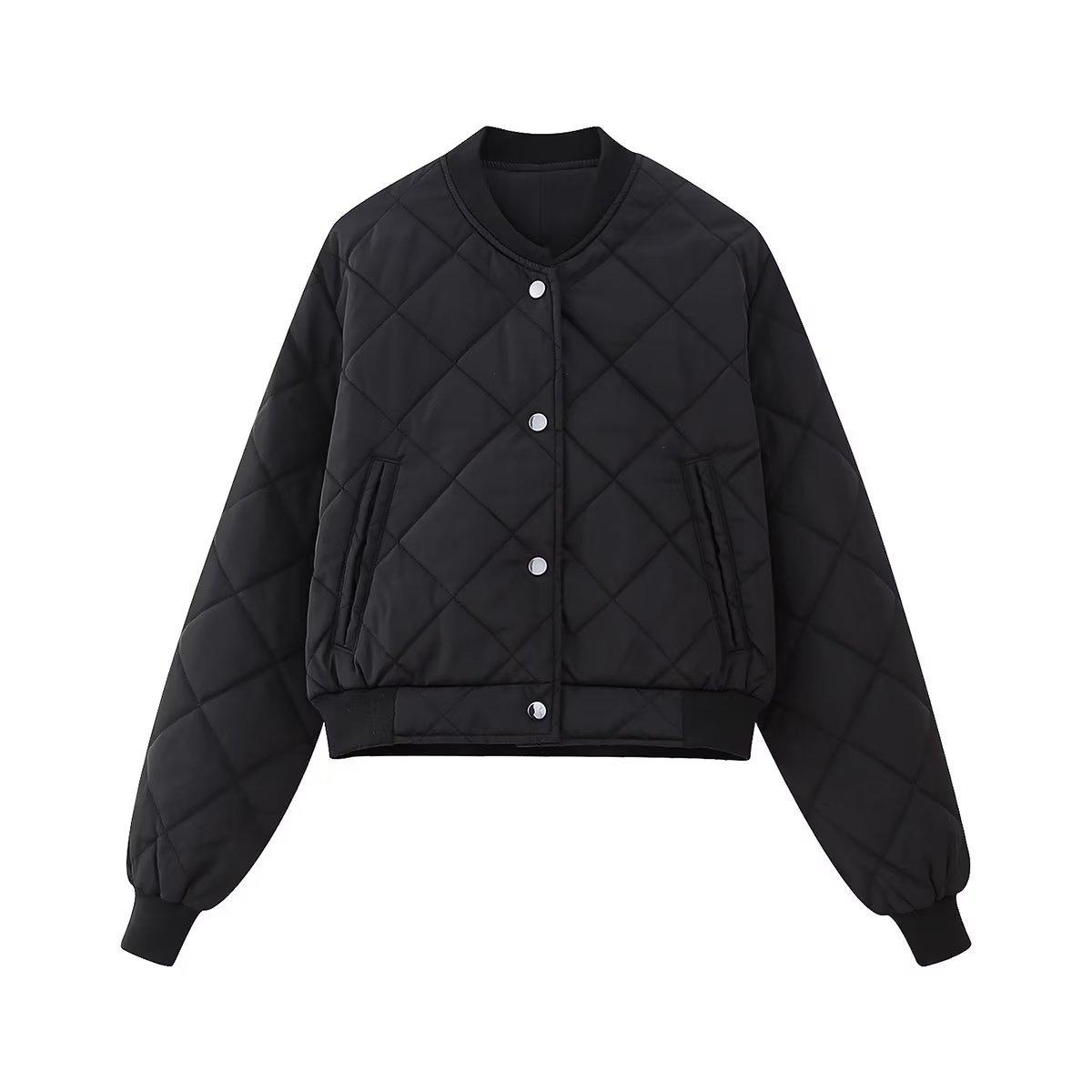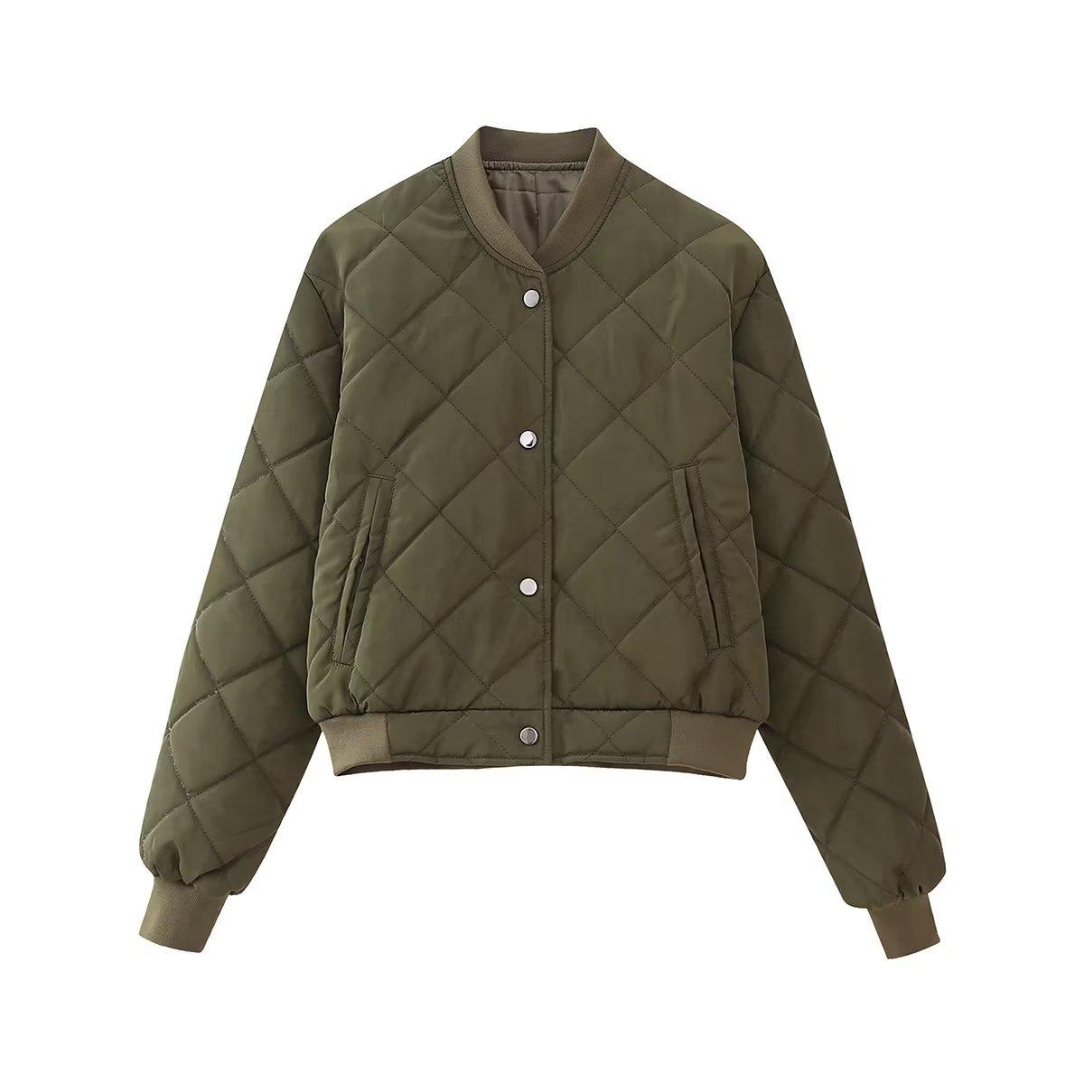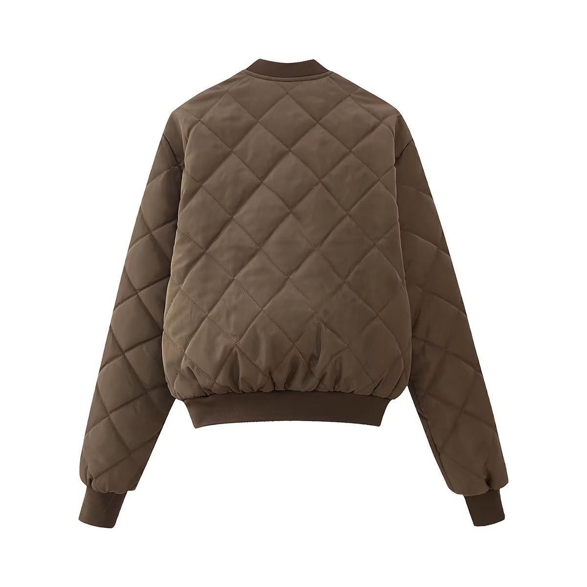 Venta al por mayor transfronteriza Otoño e Invierno 2023 Nueva Moda Chaqueta de Algodón con Cuello Alto y Cuadros Diamante