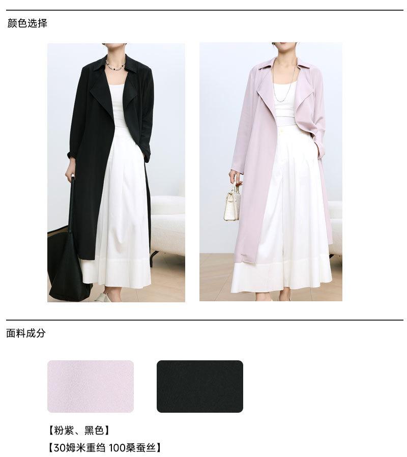 Cortavientos de crepé pesado de 40 mmi 100% seda de morera para mujer, abrigo de seda fina de alta gama de gran nombre para primavera, verano y otoño