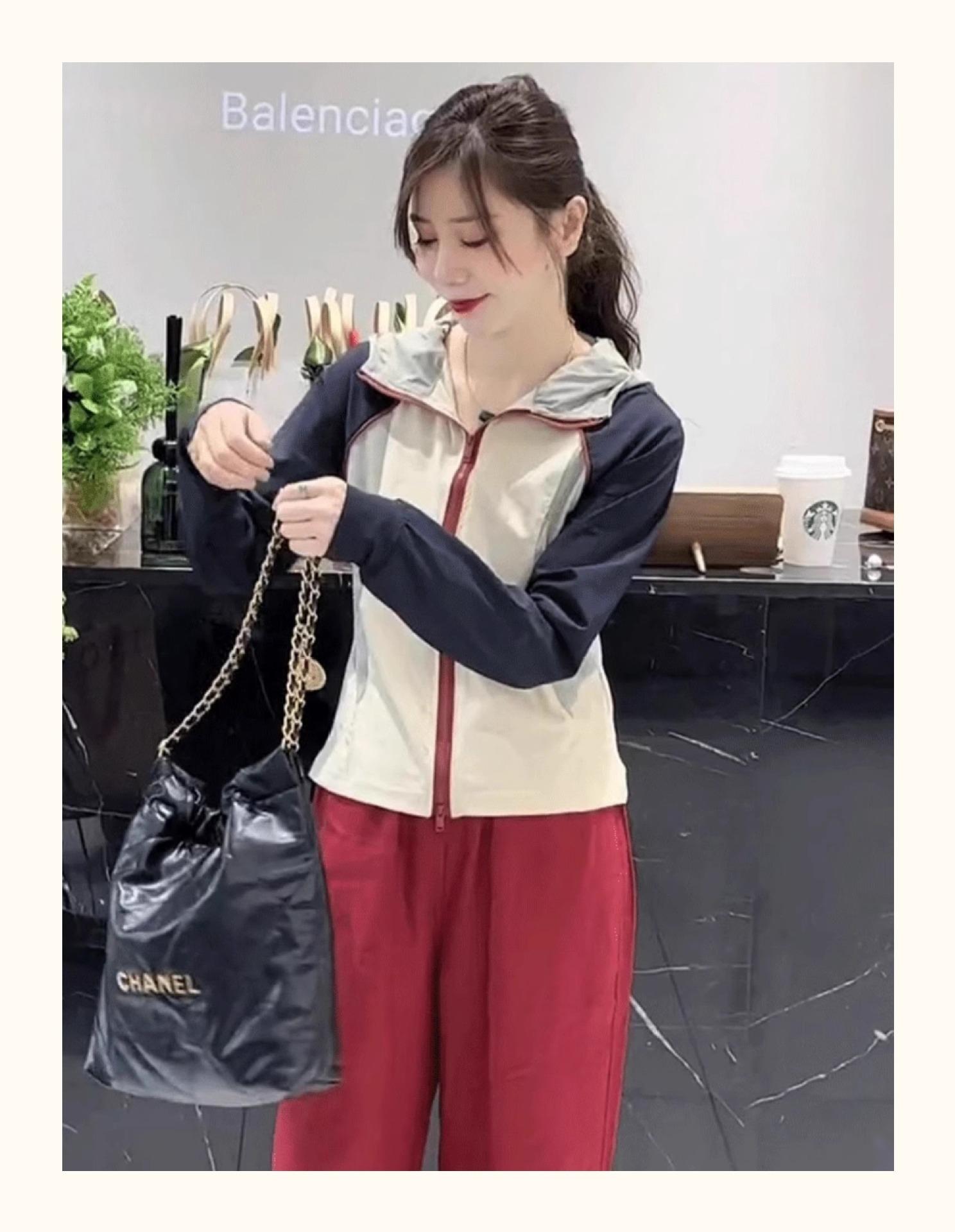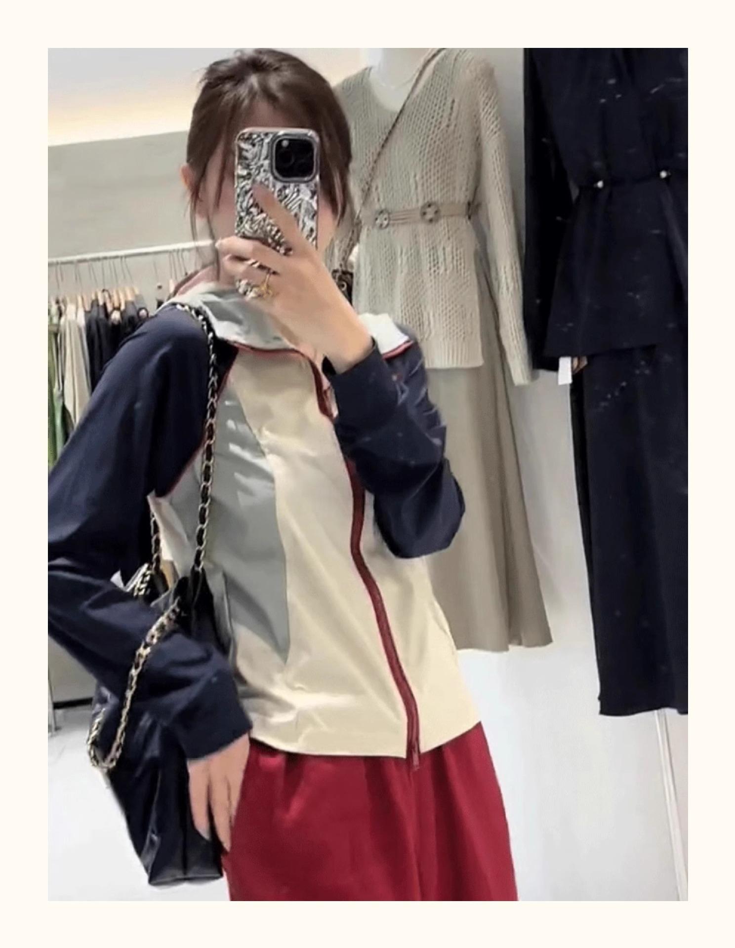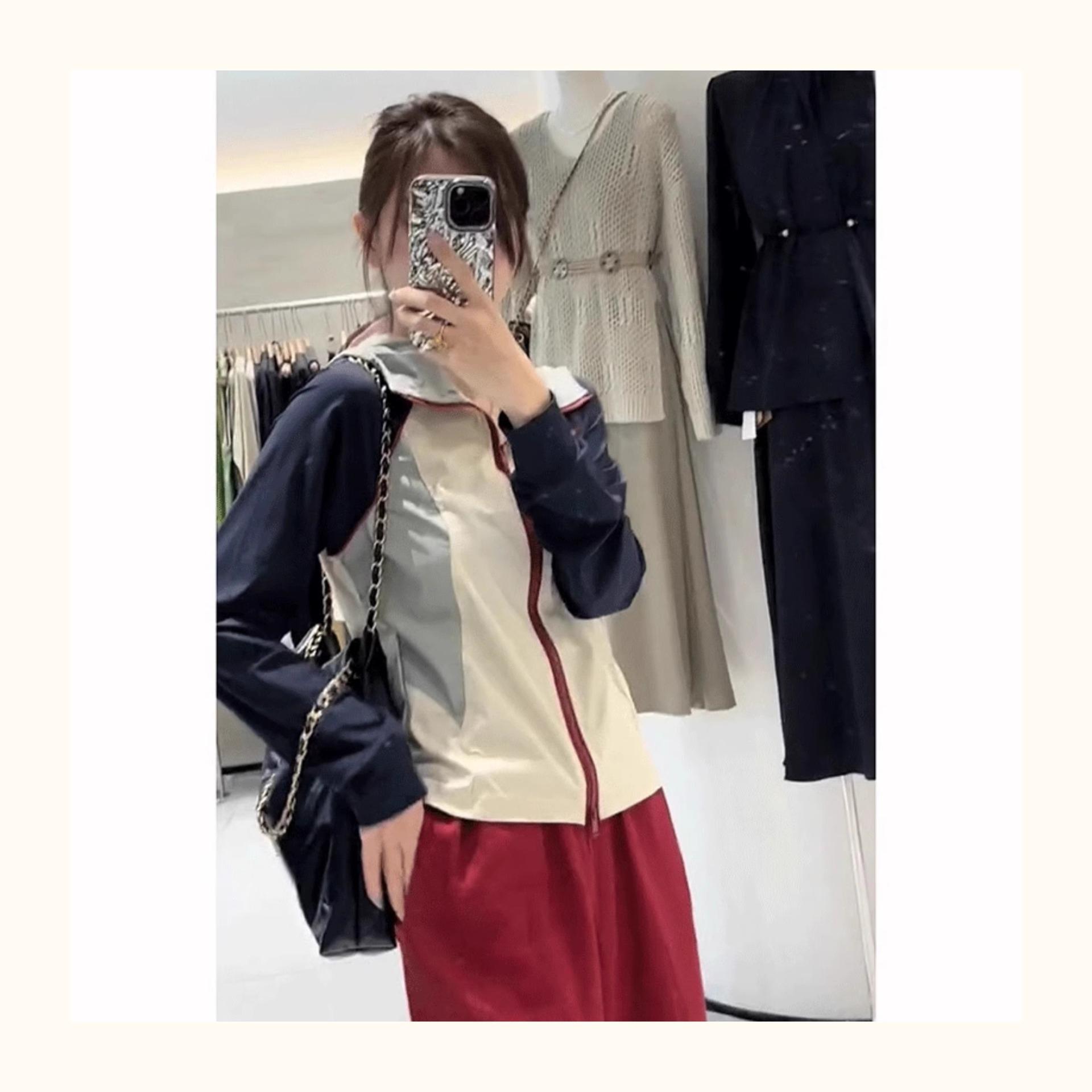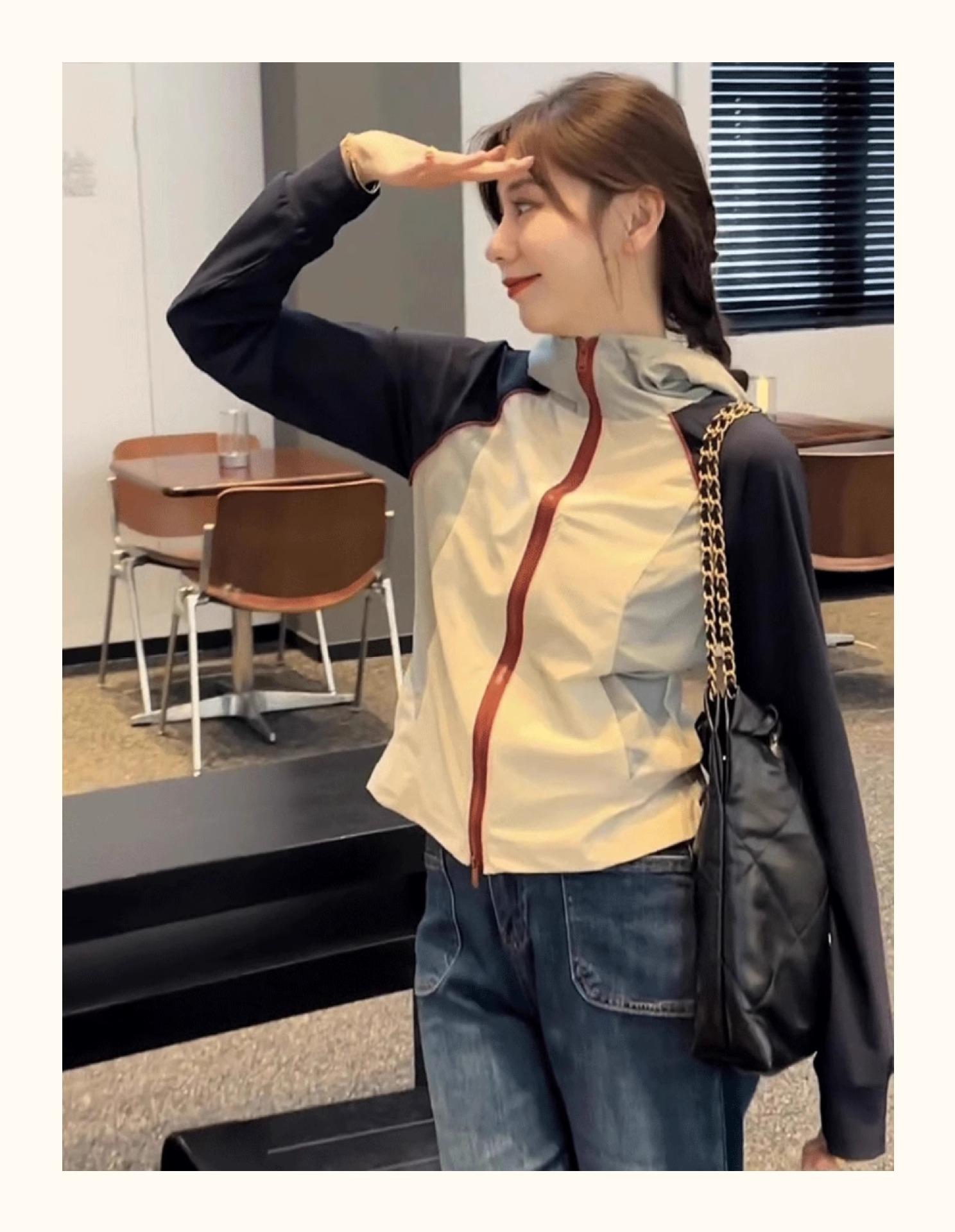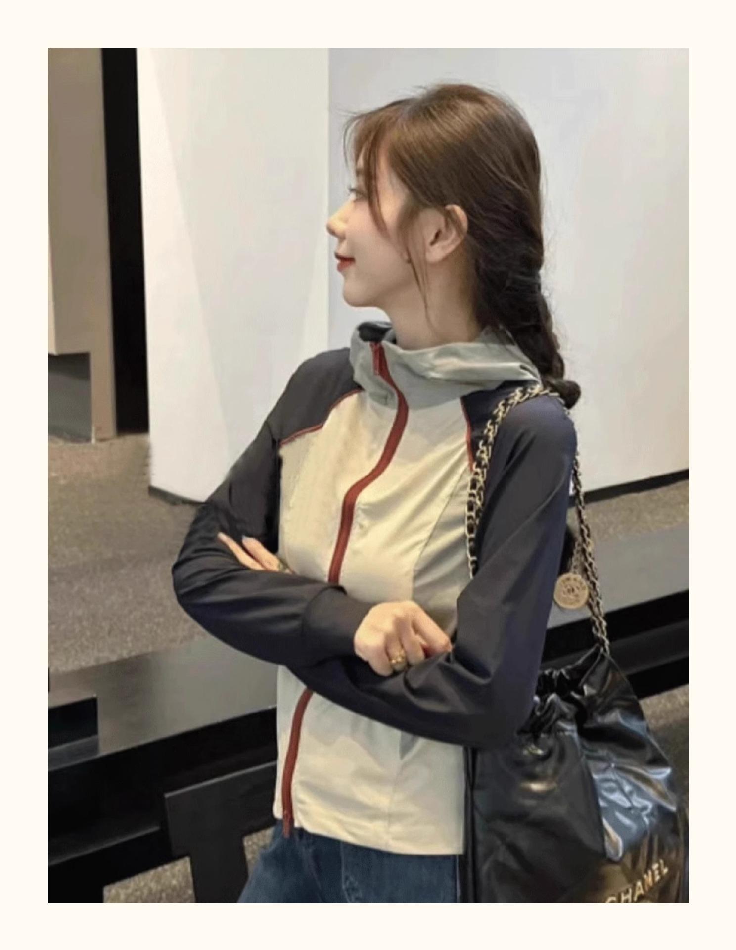 Chaqueta Corta con Capucha y Empalme de Color Contrastante Ropa de Protección Solar para Mujer Verano 2025 Nuevo Estilo Pequeña Ropa de Protección Solar de Alta Gama Top