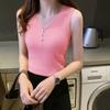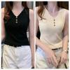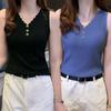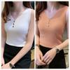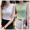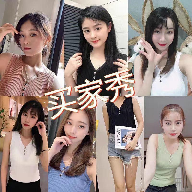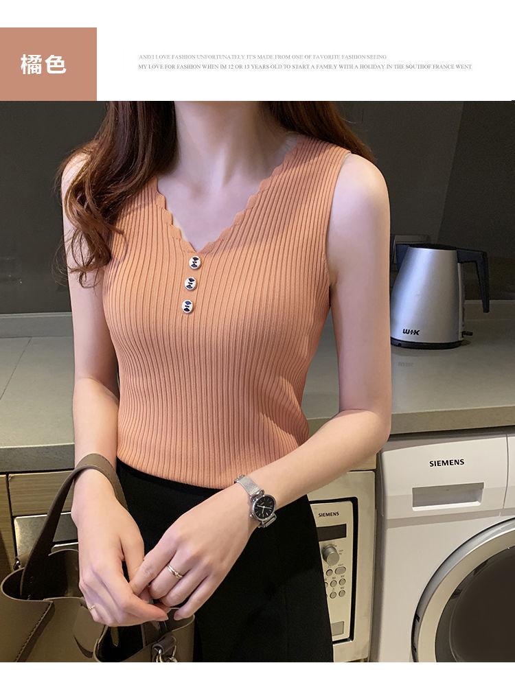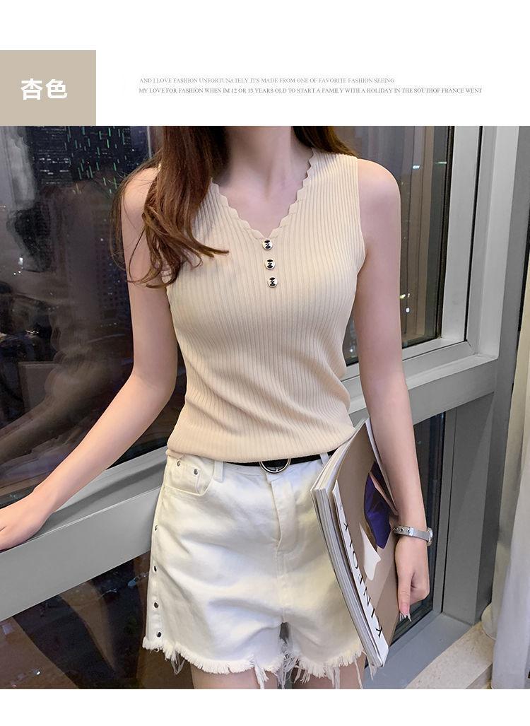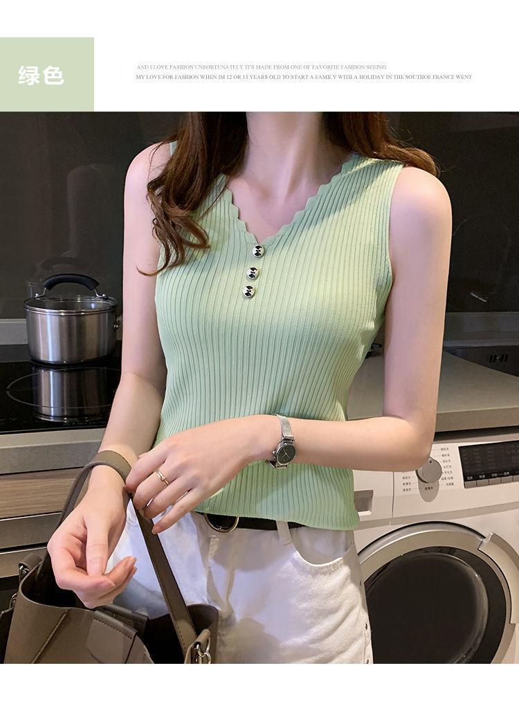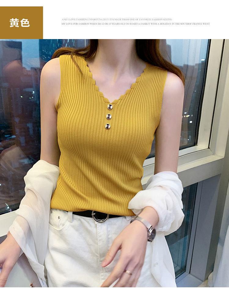 Chaleco sin mangas con tirantes pequeños de seda de hielo para mujer, ropa exterior de verano, ropa interior holgada de estilo coreano, camisa de punto con cuello corto.