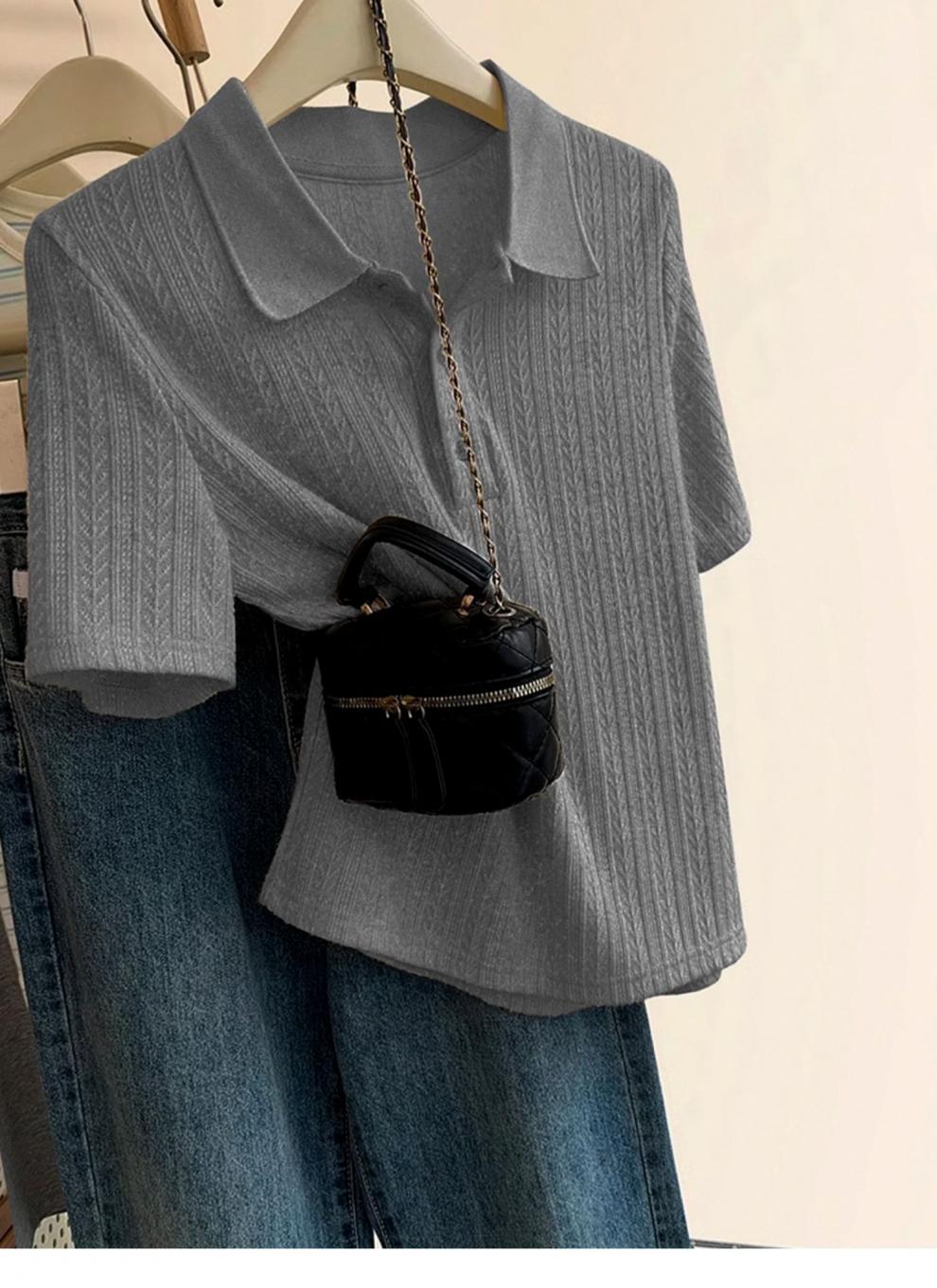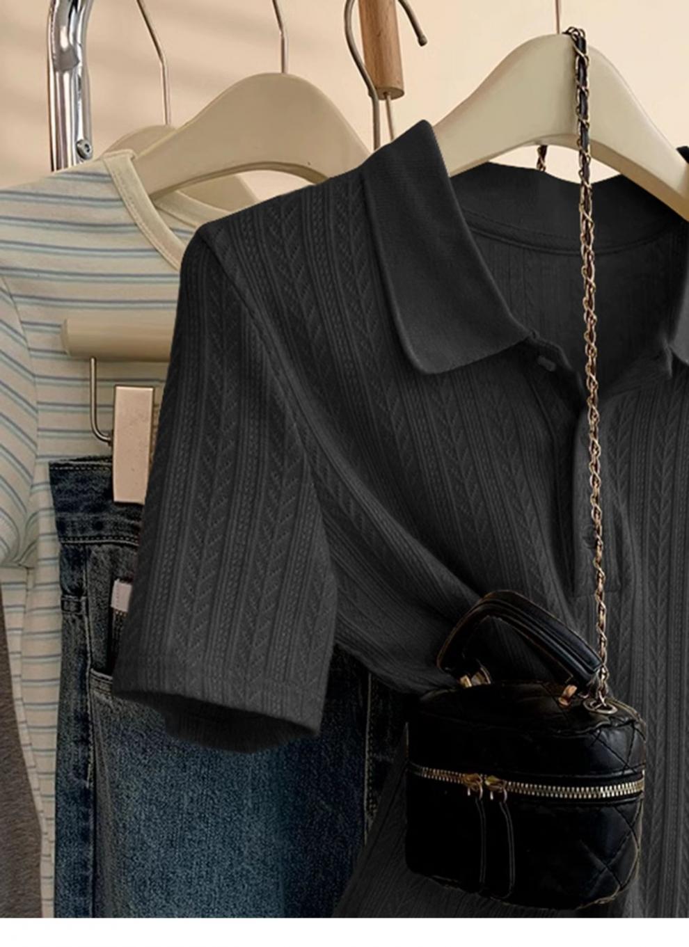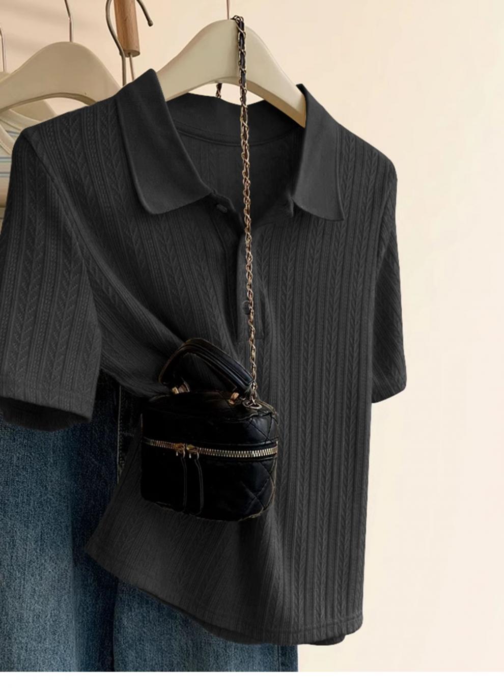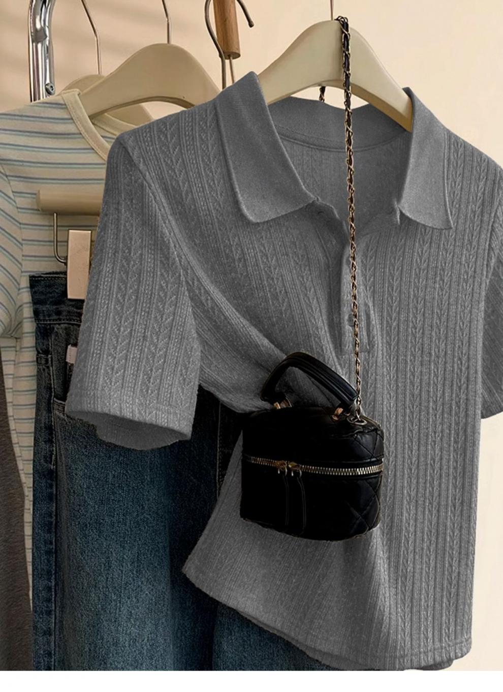 Polo de Color Sólido Tejido de Seda de Hielo Camiseta de Manga Corta para Mujer Verano 2025 Nuevo Top de Verano de Media Manga con Hombro Descubierto