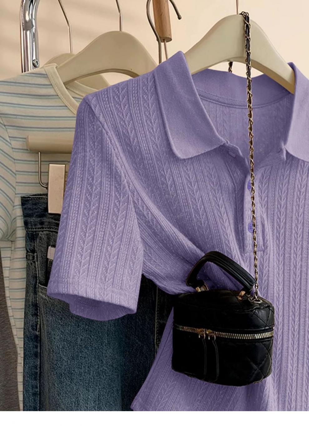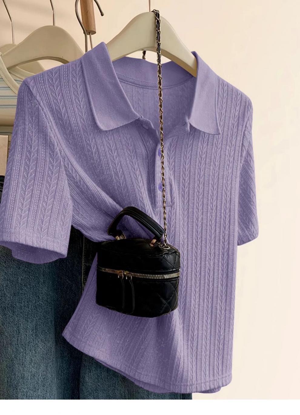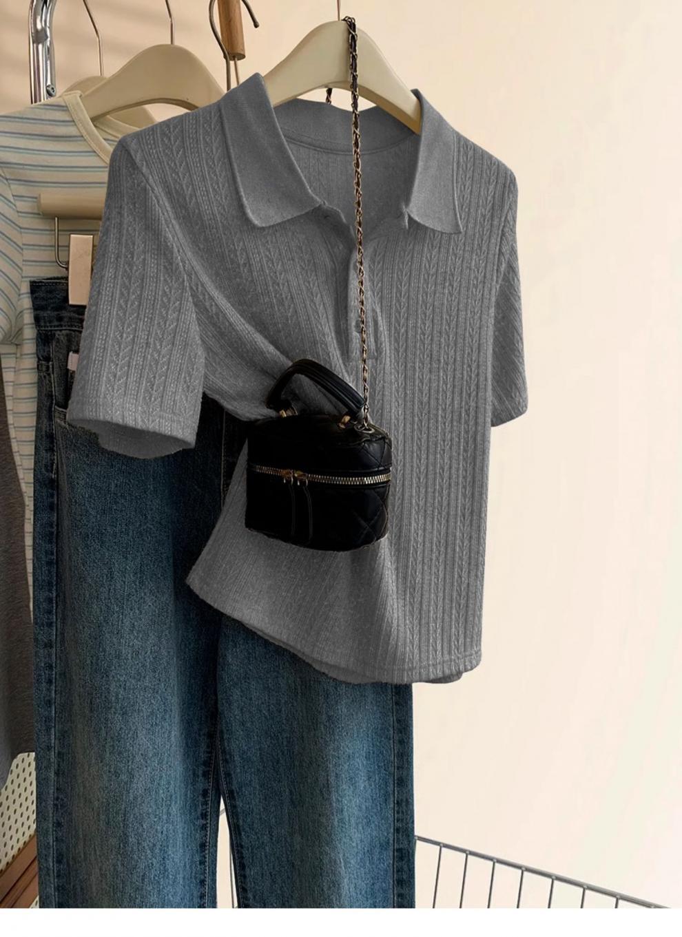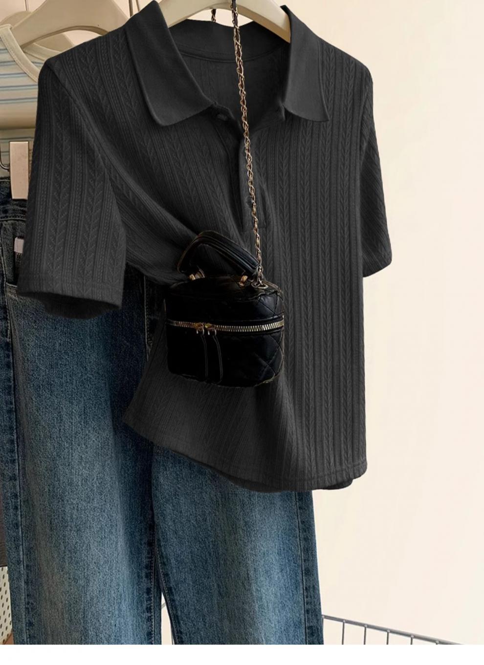 Polo de Color Sólido Tejido de Seda de Hielo Camiseta de Manga Corta para Mujer Verano 2025 Nuevo Top de Verano de Media Manga con Hombro Descubierto