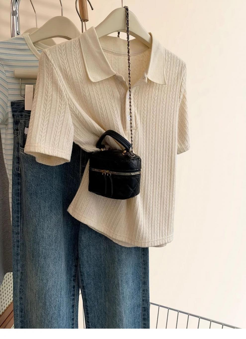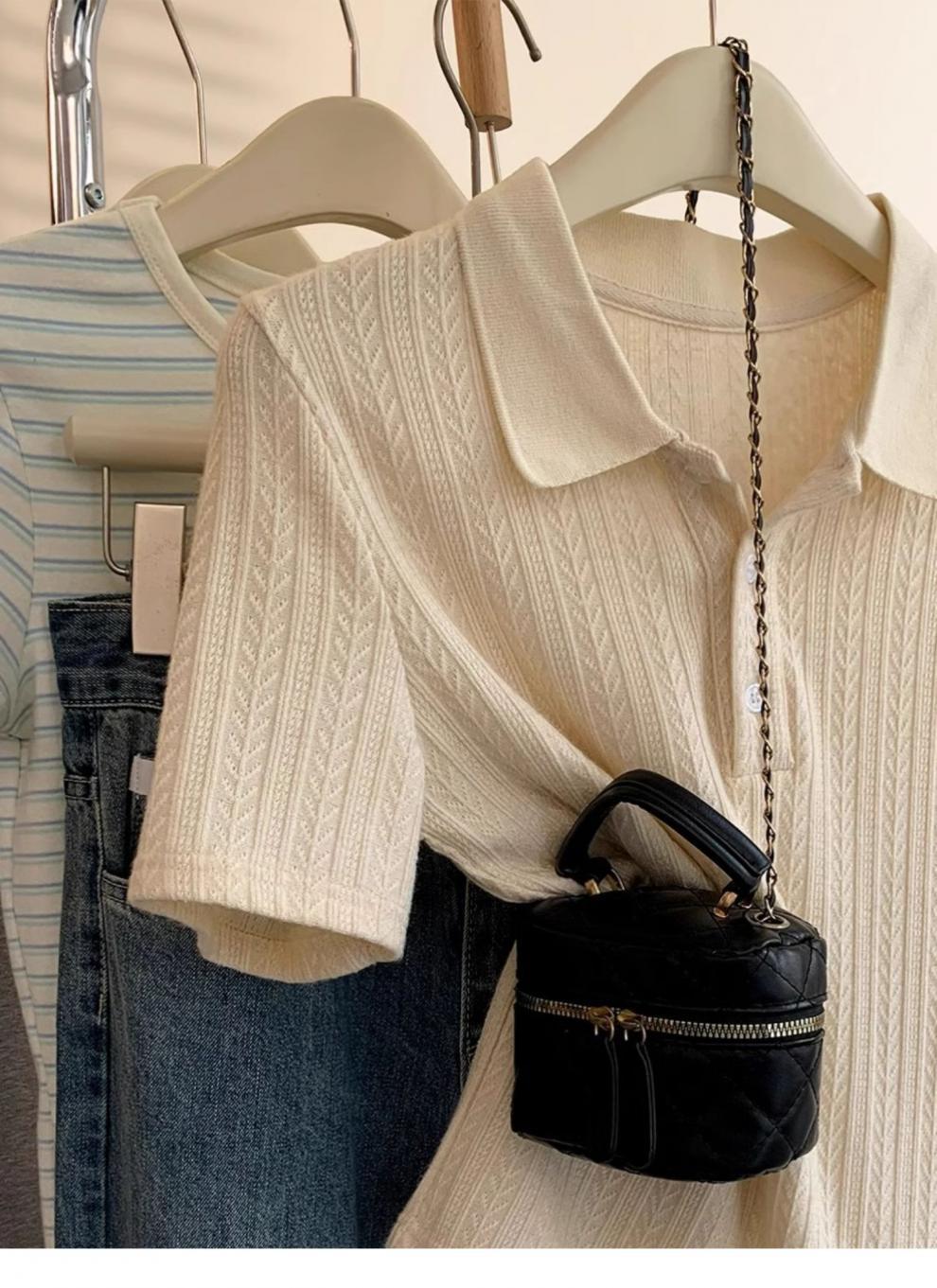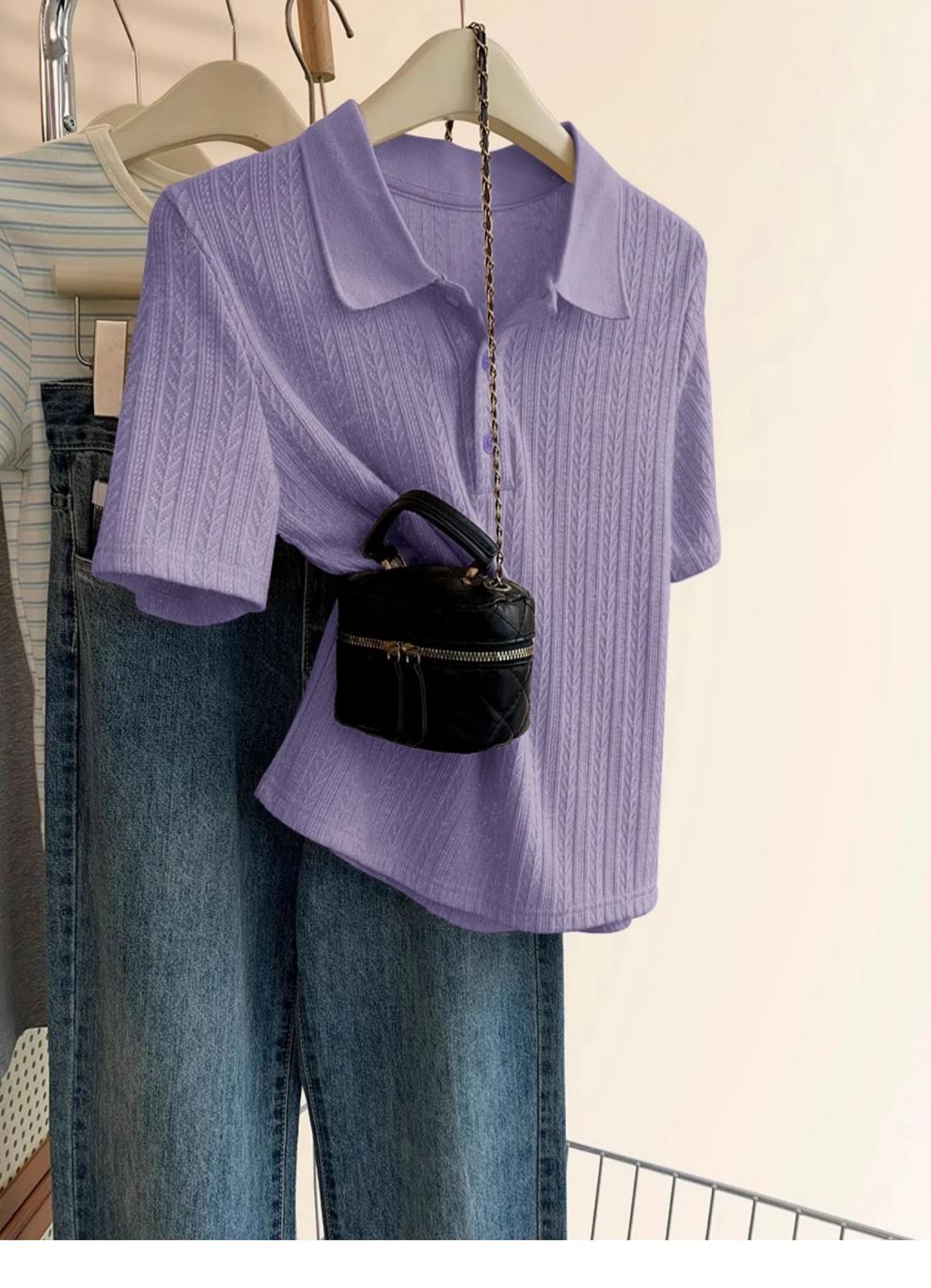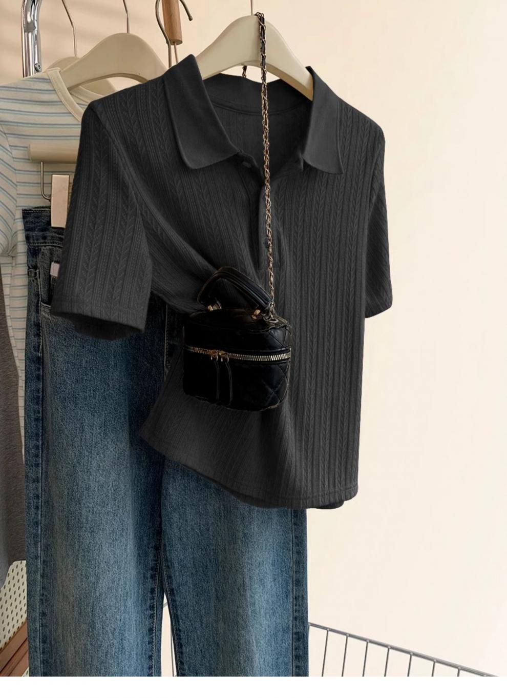 Polo de Color Sólido Tejido de Seda de Hielo Camiseta de Manga Corta para Mujer Verano 2025 Nuevo Top de Verano de Media Manga con Hombro Descubierto