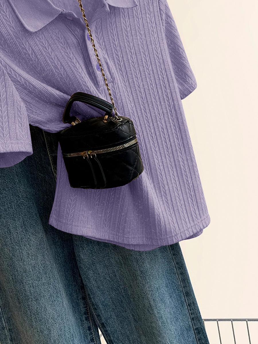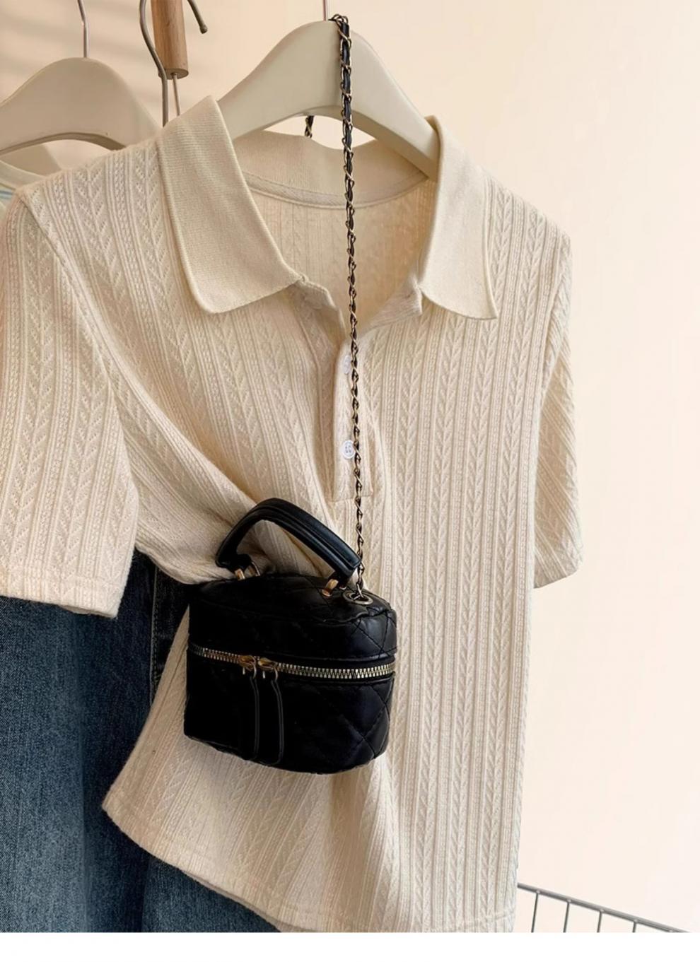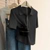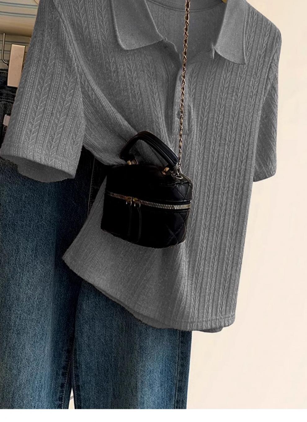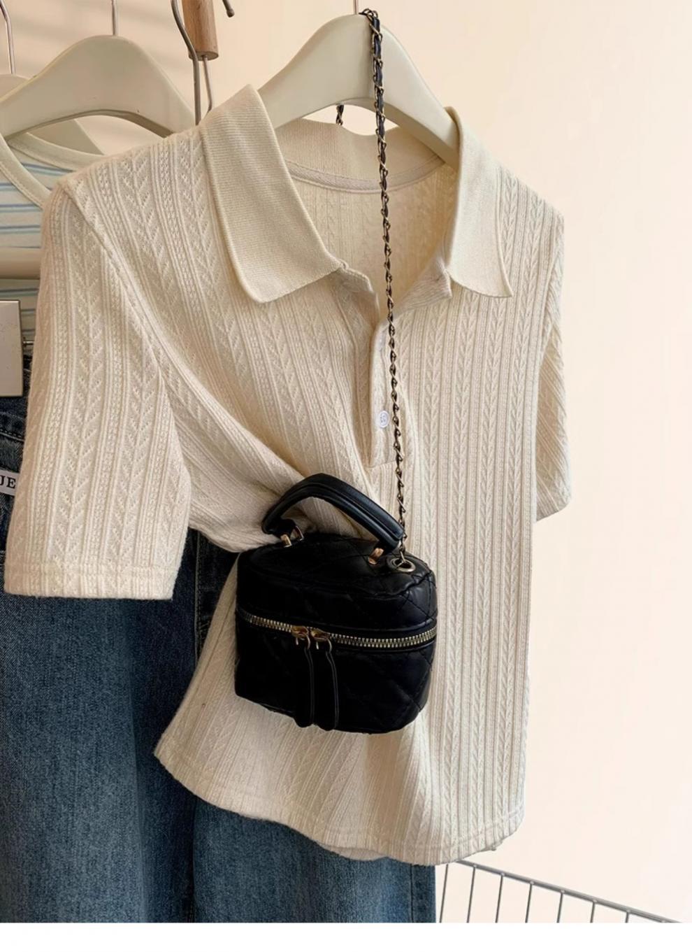 Polo de Color Sólido Tejido de Seda de Hielo Camiseta de Manga Corta para Mujer Verano 2025 Nuevo Top de Verano de Media Manga con Hombro Descubierto