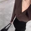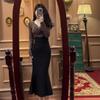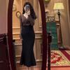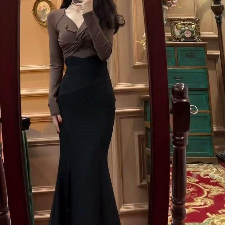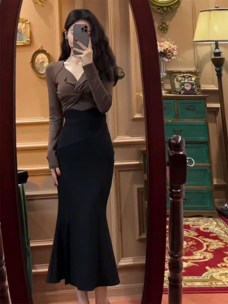 Traje Coreano para Mujer 2025 Nuevo Top Torcido de Manga Larga + Falda de Cola de Pez con Abertura Estilo Occidental Conjunto de Dos Piezas