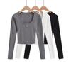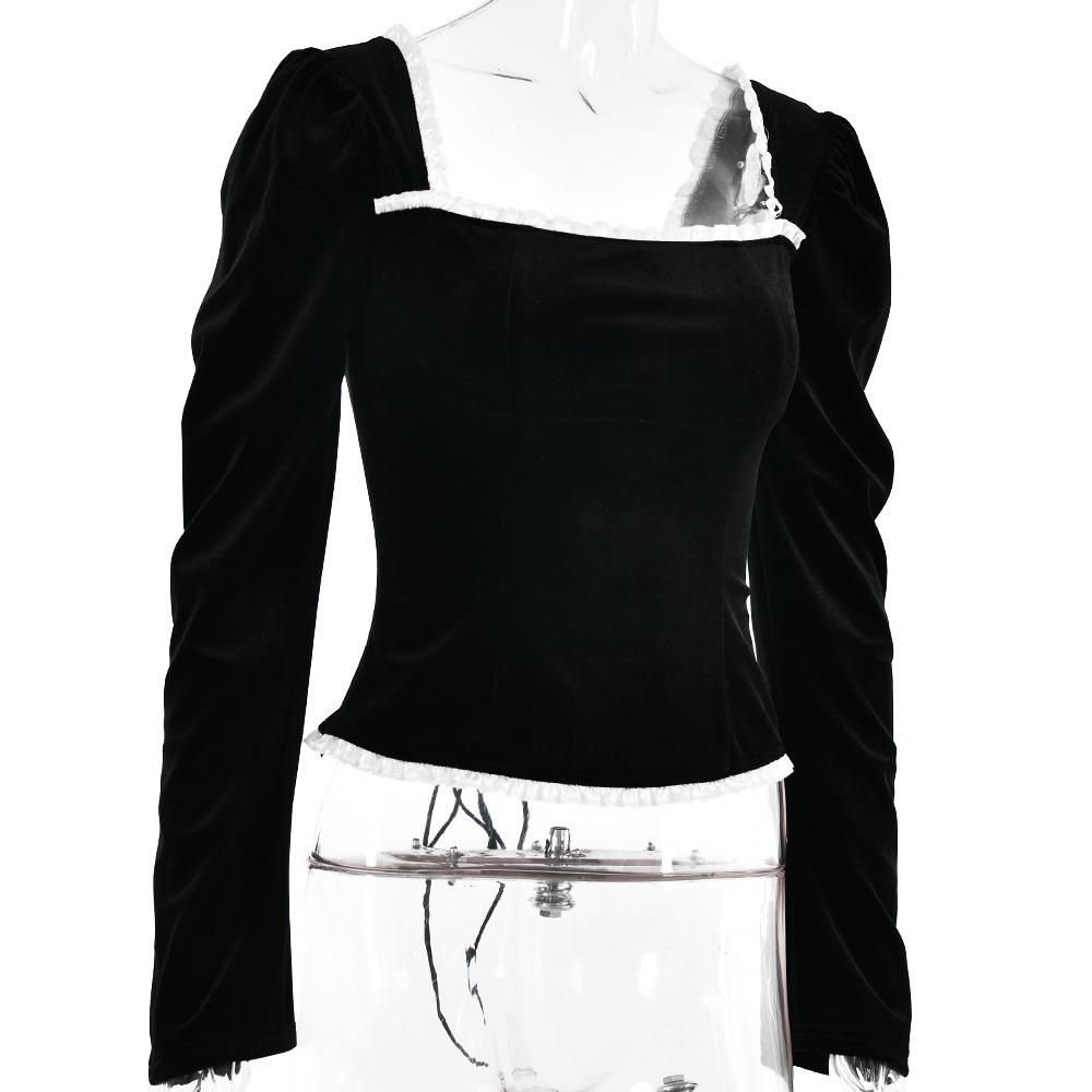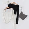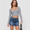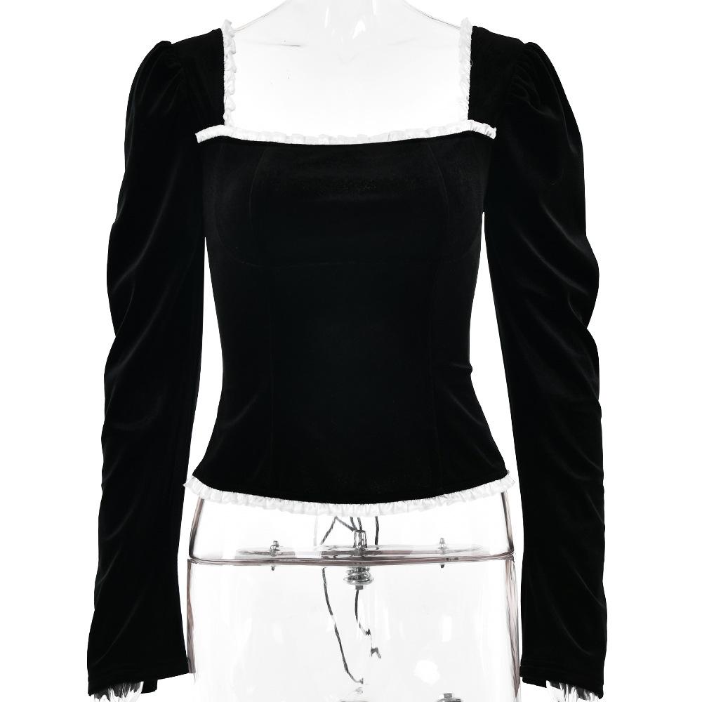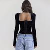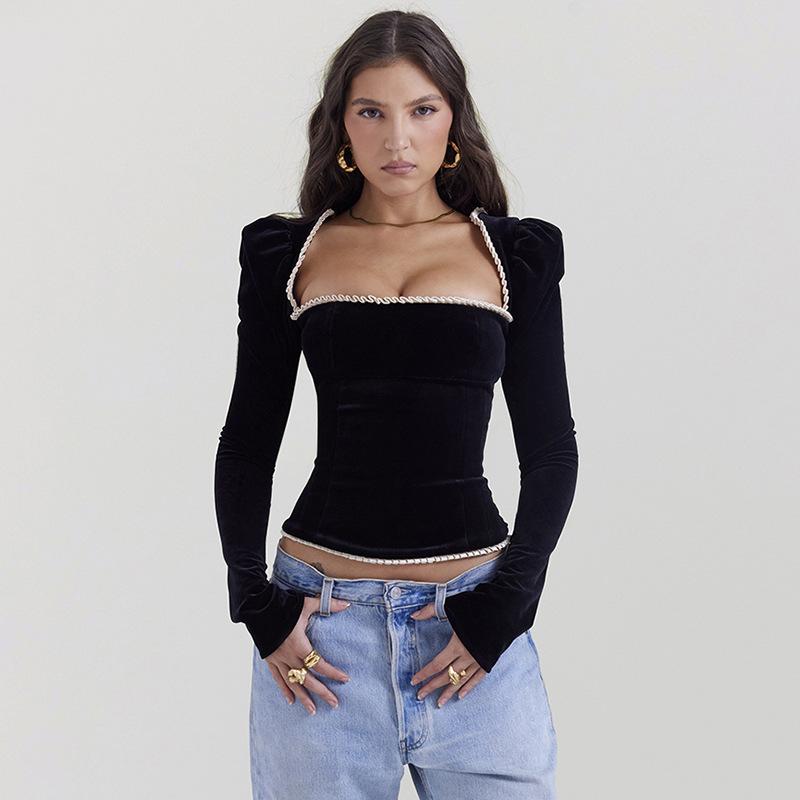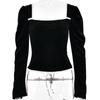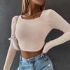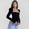Camiseta ajustada de manga larga y cuello cuadrado nueva de otoño estilo ins europeo y americano, moderna, combinable con todo, temperamento sexy, top con tirantes y espalda descubierta para mujer
