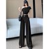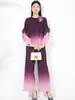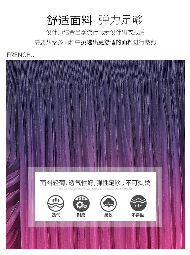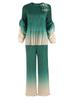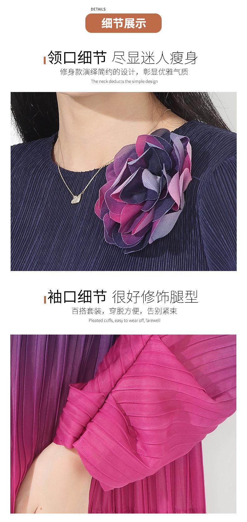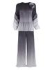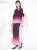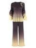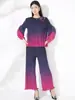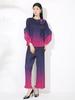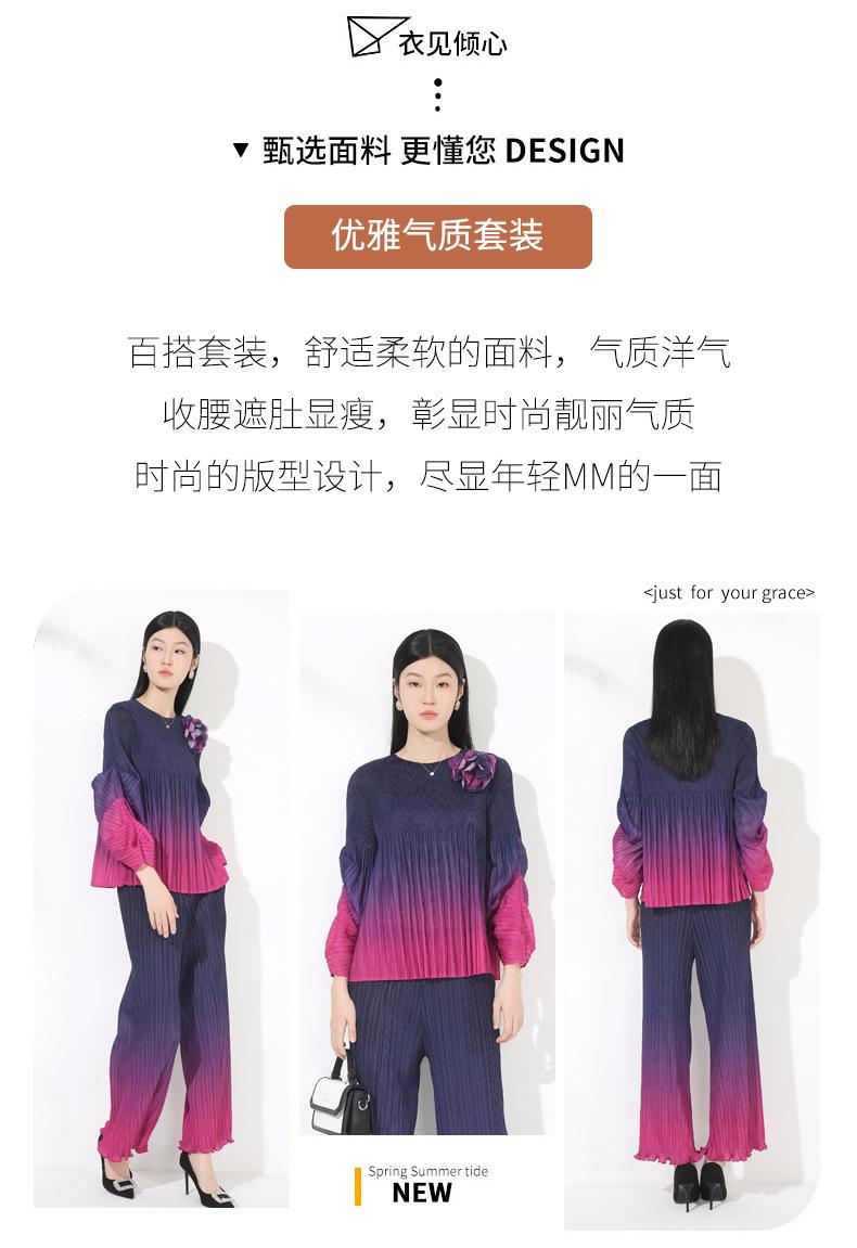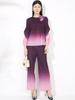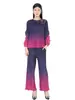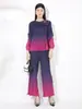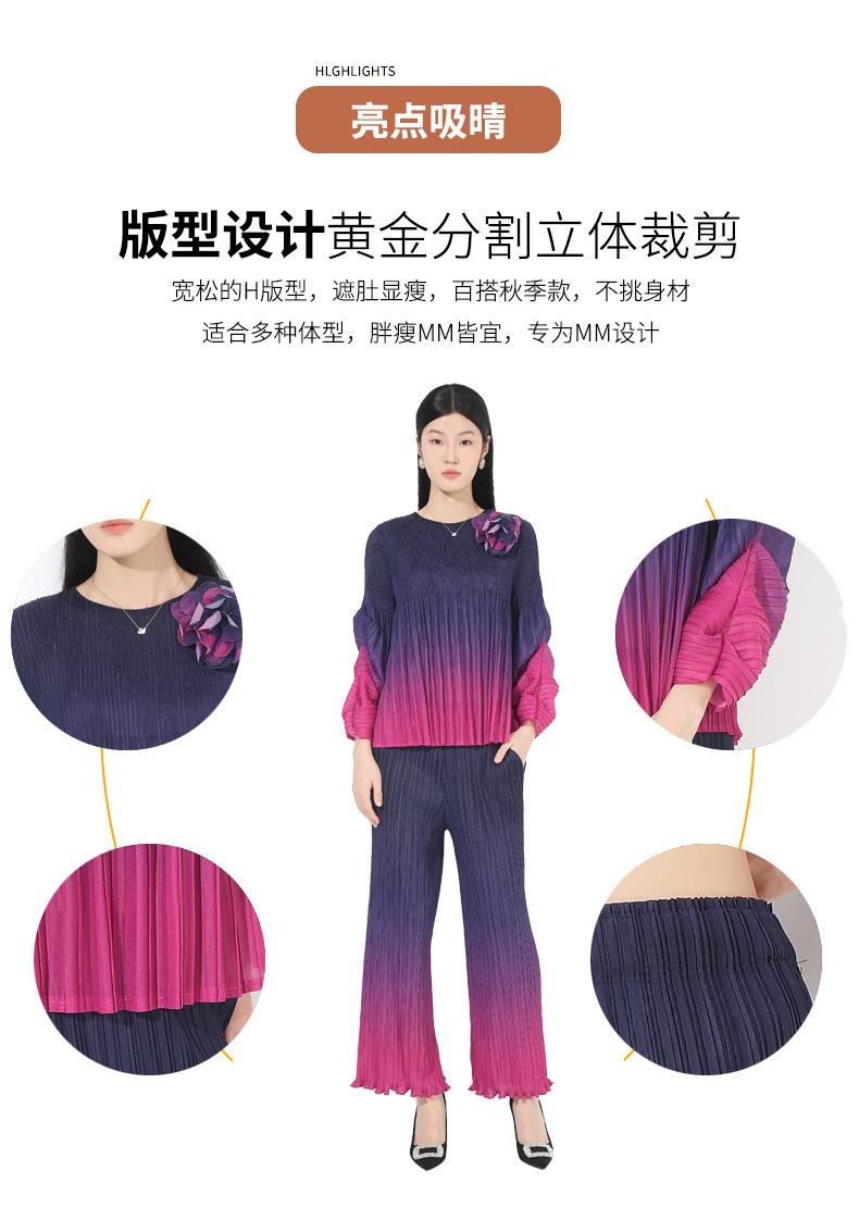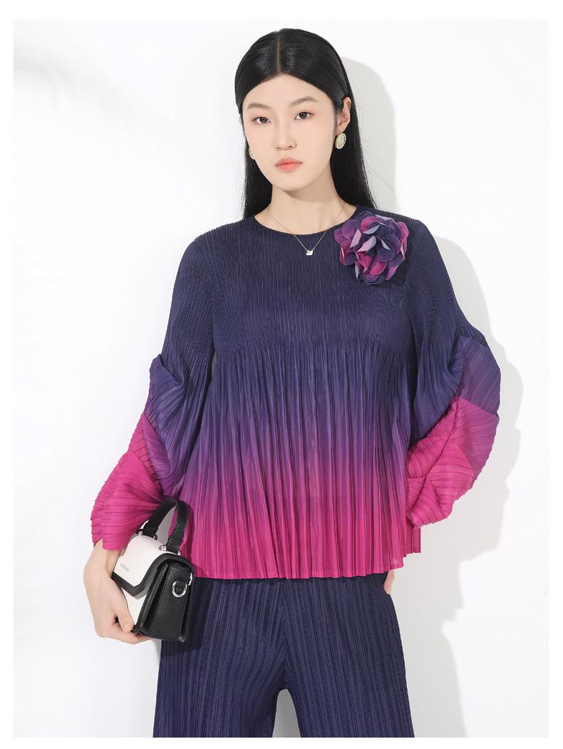 Traje plisado de moda degradado para mujer con sentido del diseño, flor decorativa, top plisado, pantalones de pierna ancha de cintura alta, conjunto de dos piezas