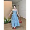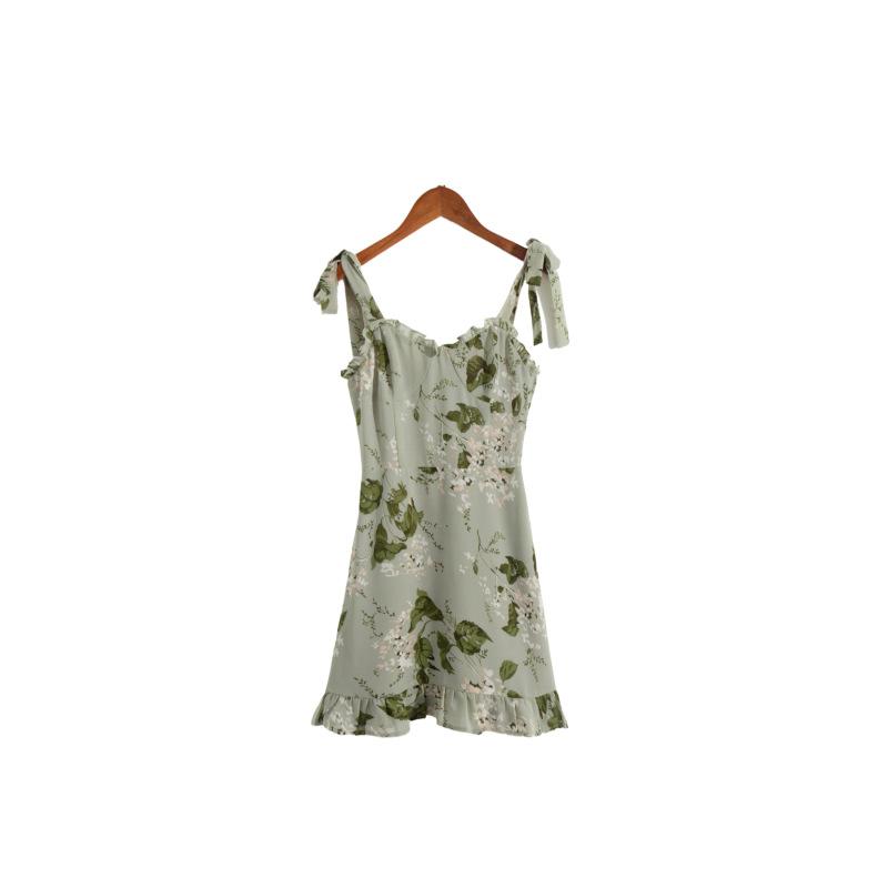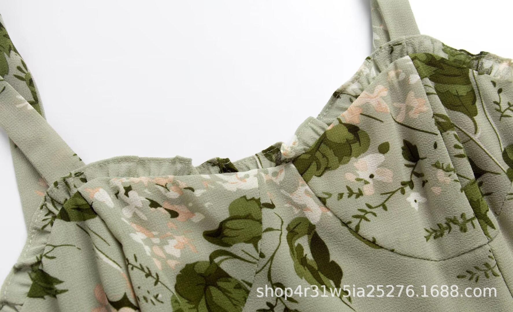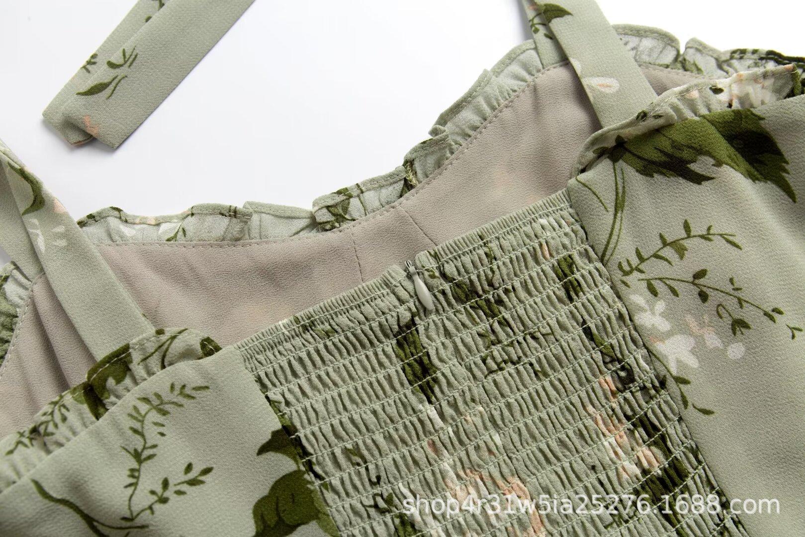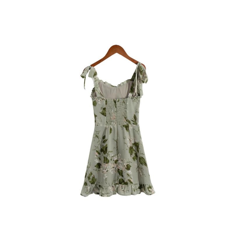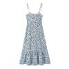 Nuevo vestido de tirantes con volantes estampados de principios de primavera, falda de cintura con tirantes anchos franceses