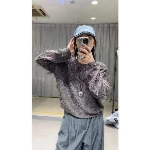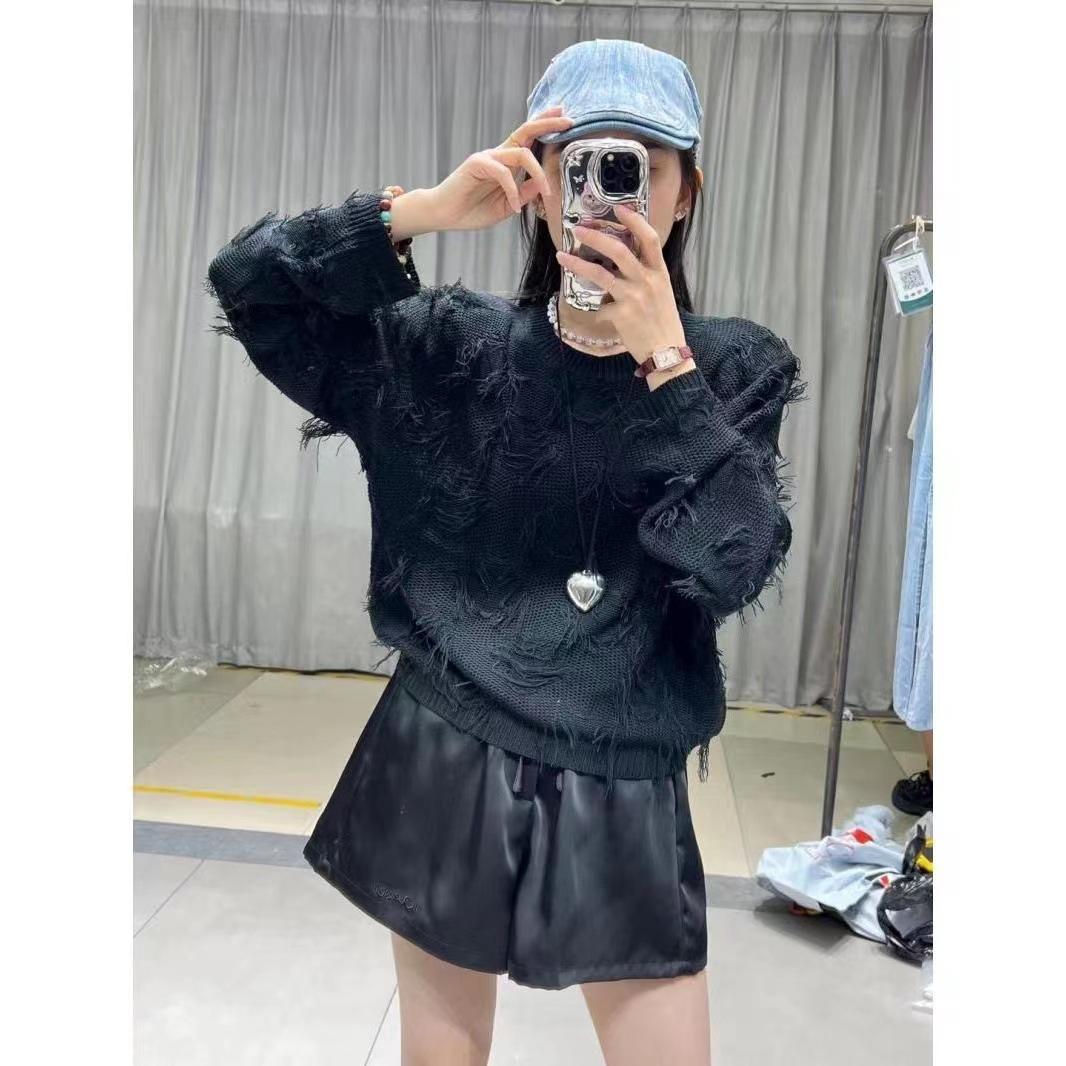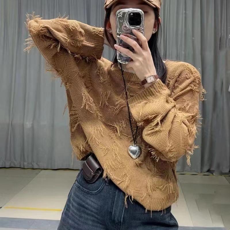 2023 otoño temprano nuevo cuello redondo manga larga borla diseño de lana color sólido suéter jersey prenda exterior top de alta gama para mujer