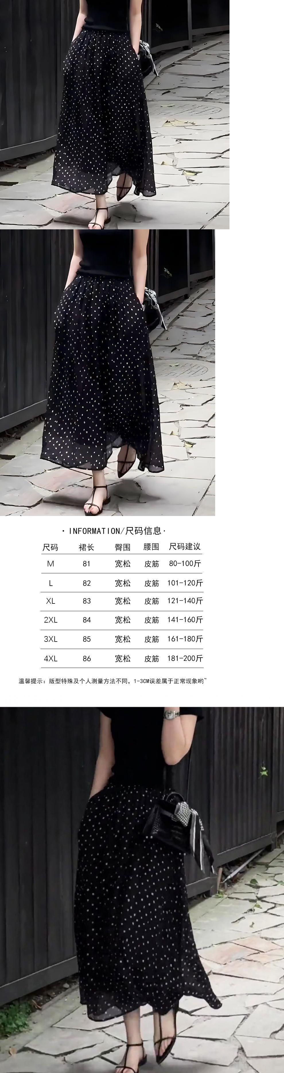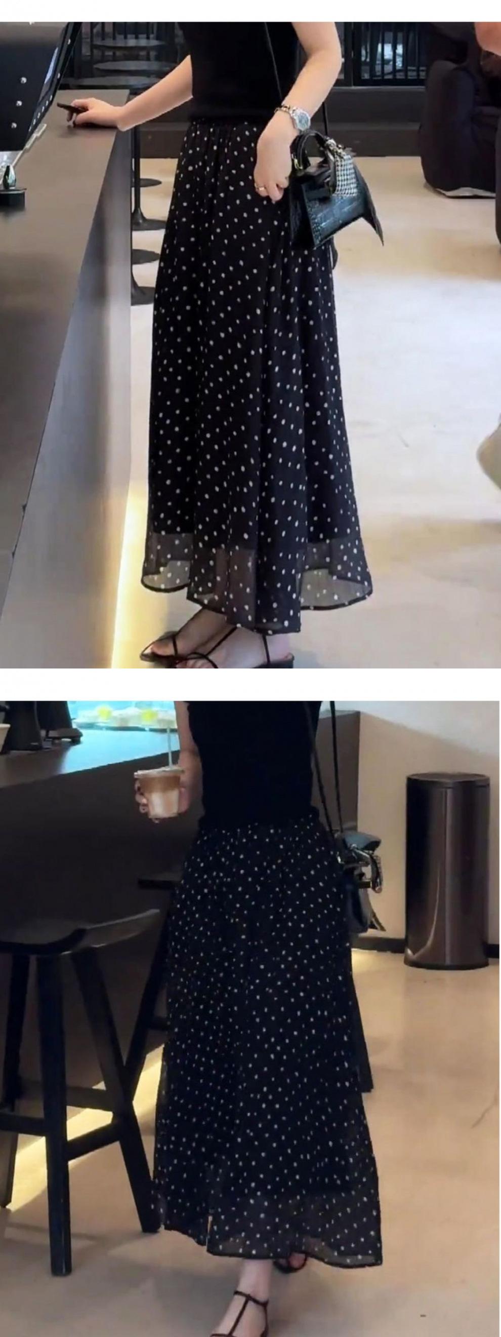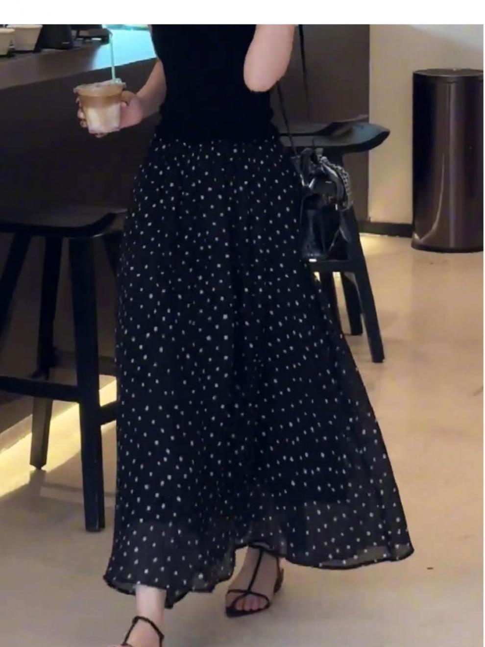 Falda de Lunares Talla Grande para Mujer Nueva Primavera, Otoño y Verano Moda Francesa Elegante Sencilla Falda Holgada con Vuelo Grande Corte A