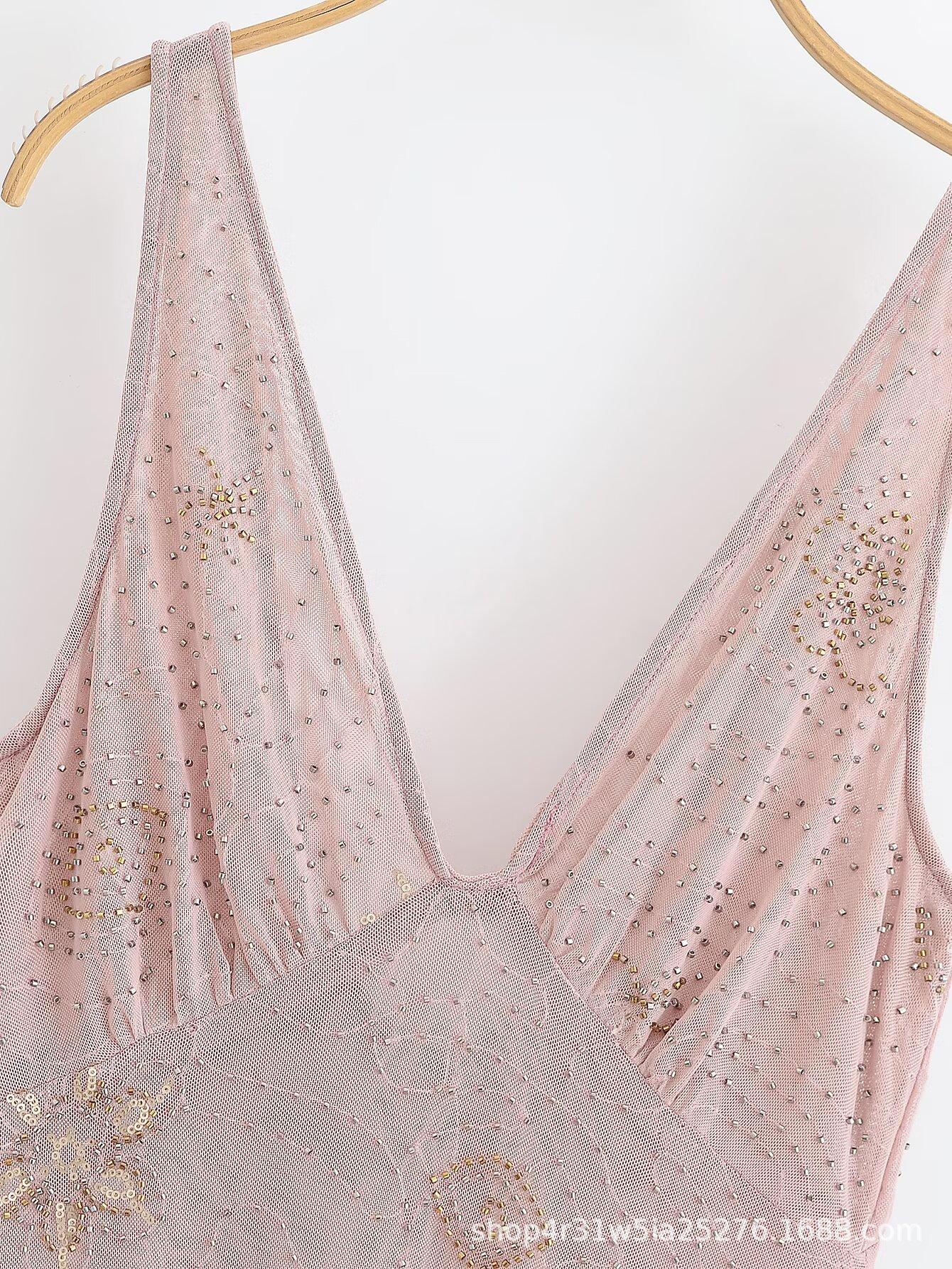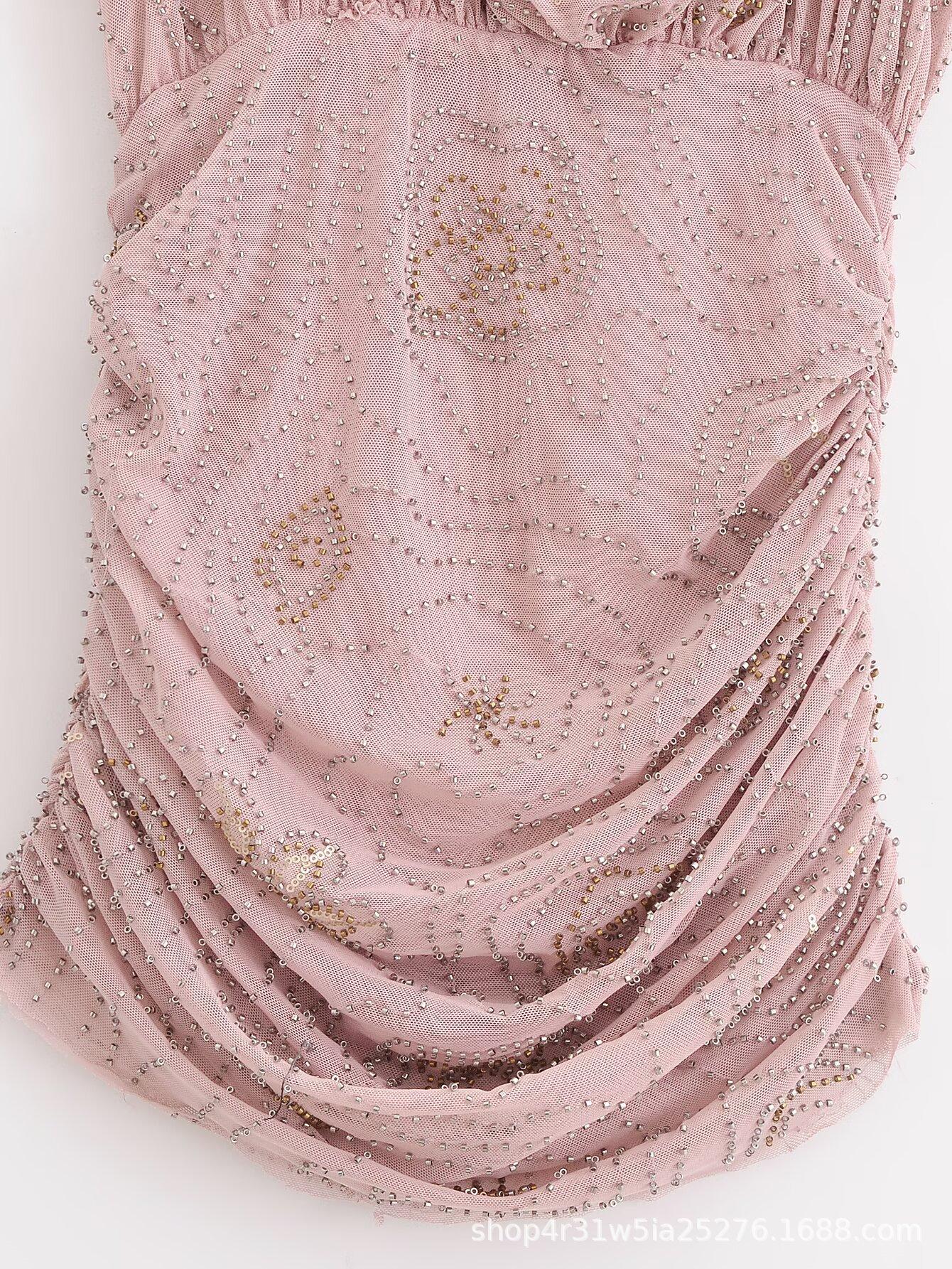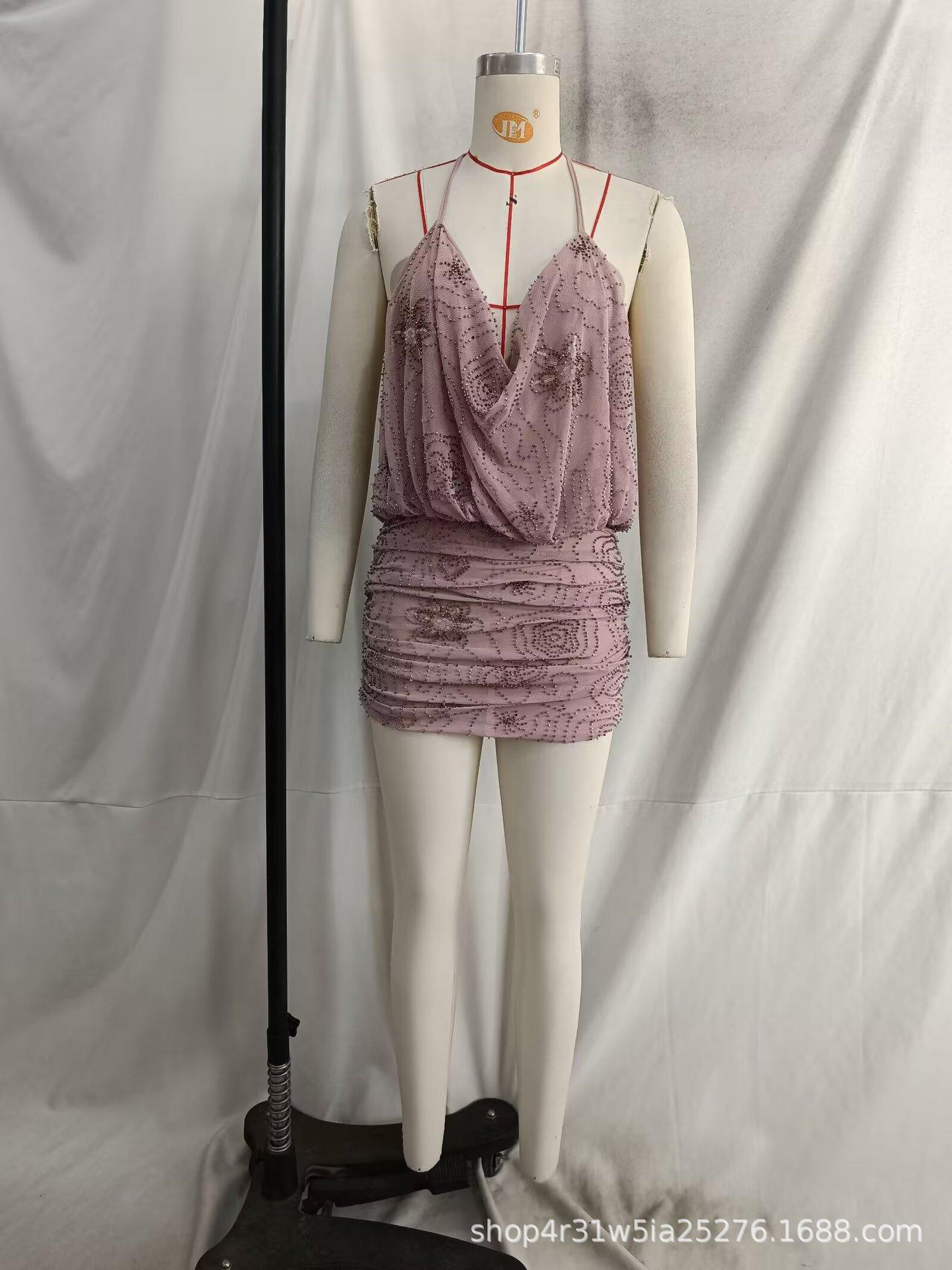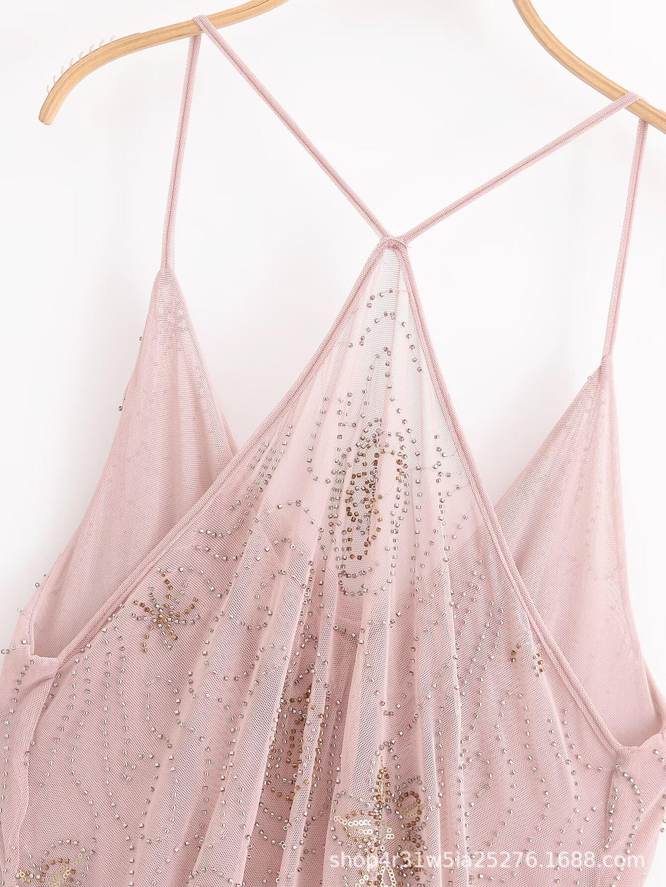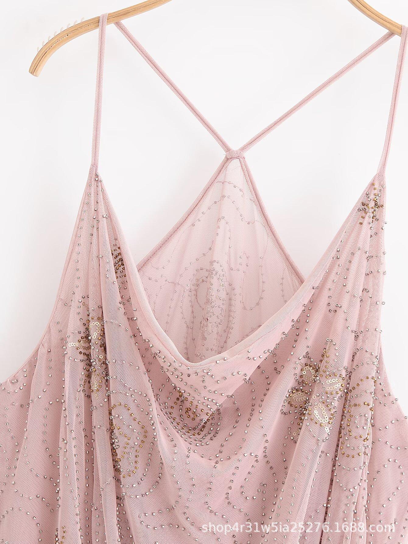 Venta al por mayor de Comercio Exterior Ropa de Mujer 2025 Verano Nuevo Sexy Sexy Vestido Mini de Lentejuelas con Tirantes