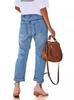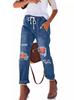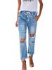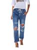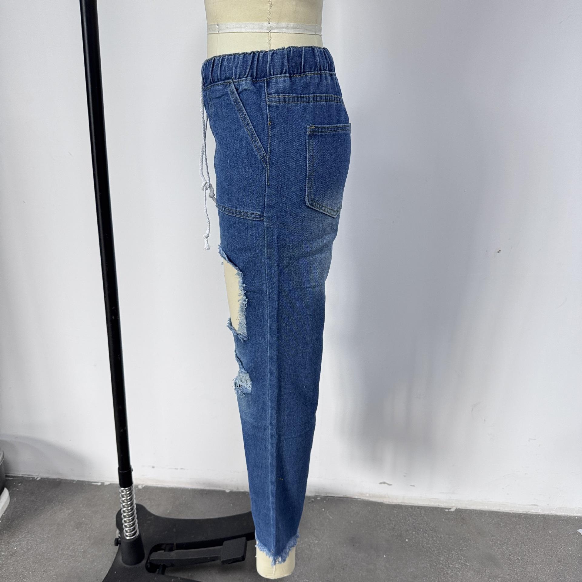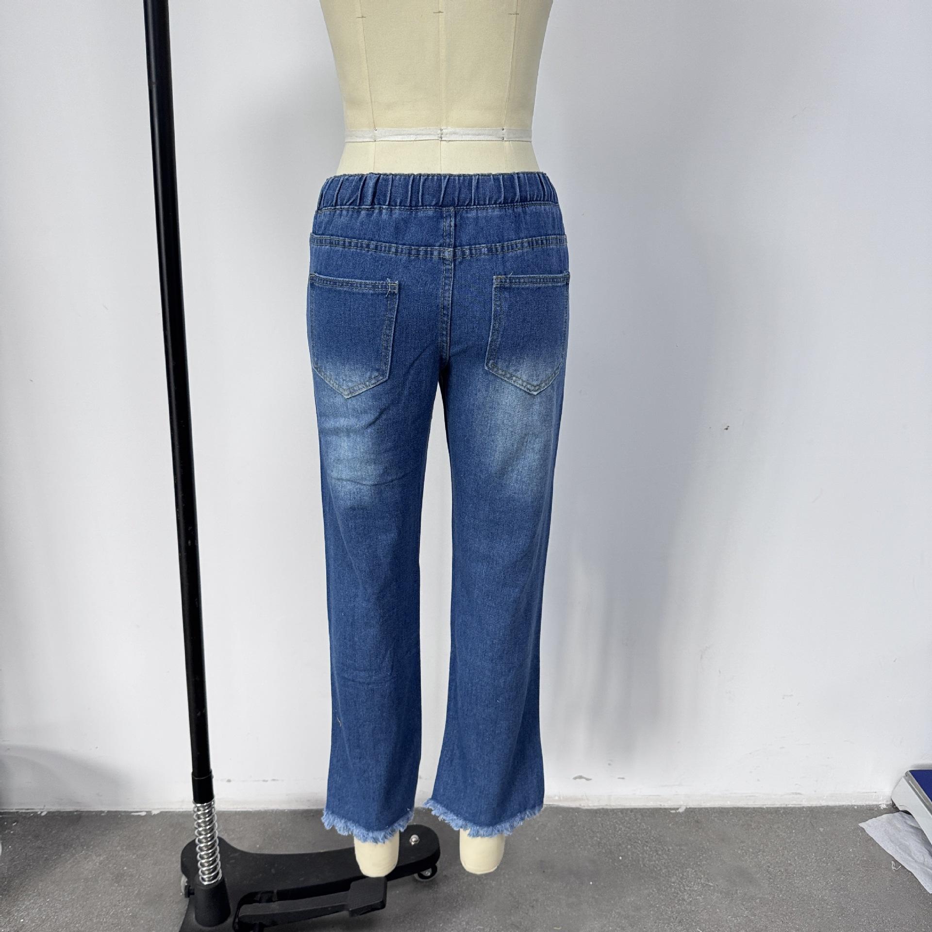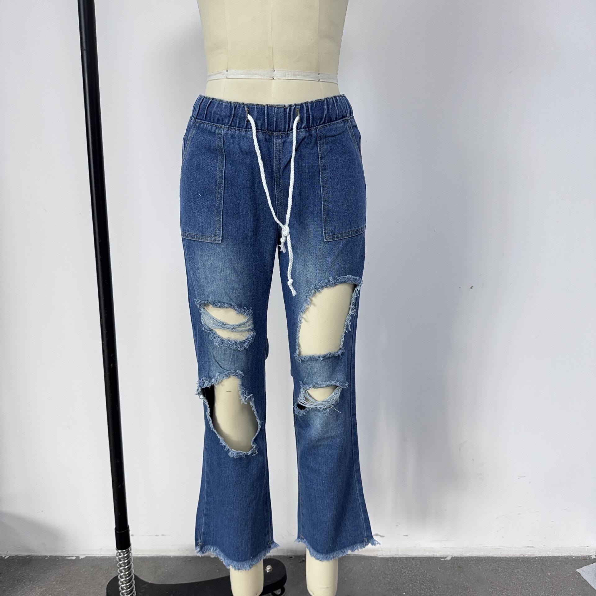 Suministro transfronterizo de comercio exterior europeo y americano de jeans de agujero de cintura elástica para mujer