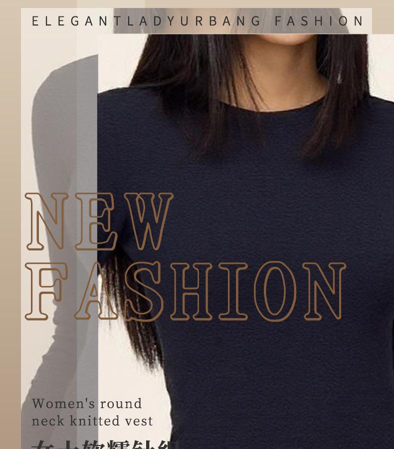 Chaleco de Dos Piezas para Mujer de Manga Larga Tejido en Capas Cuello Redondo Color Sólido Suéter Interior Versátil Delgado Suéter de Punto para Mujer