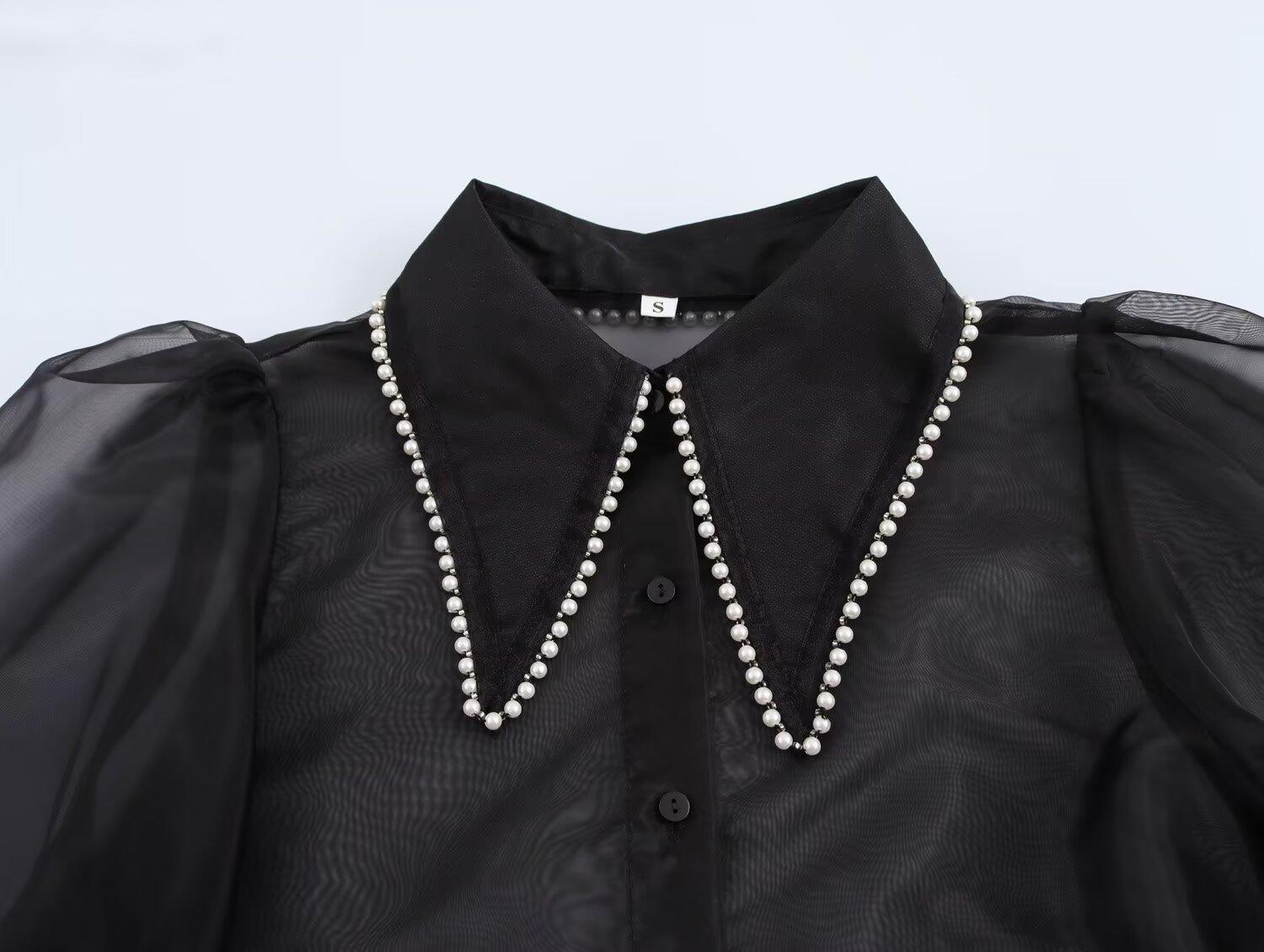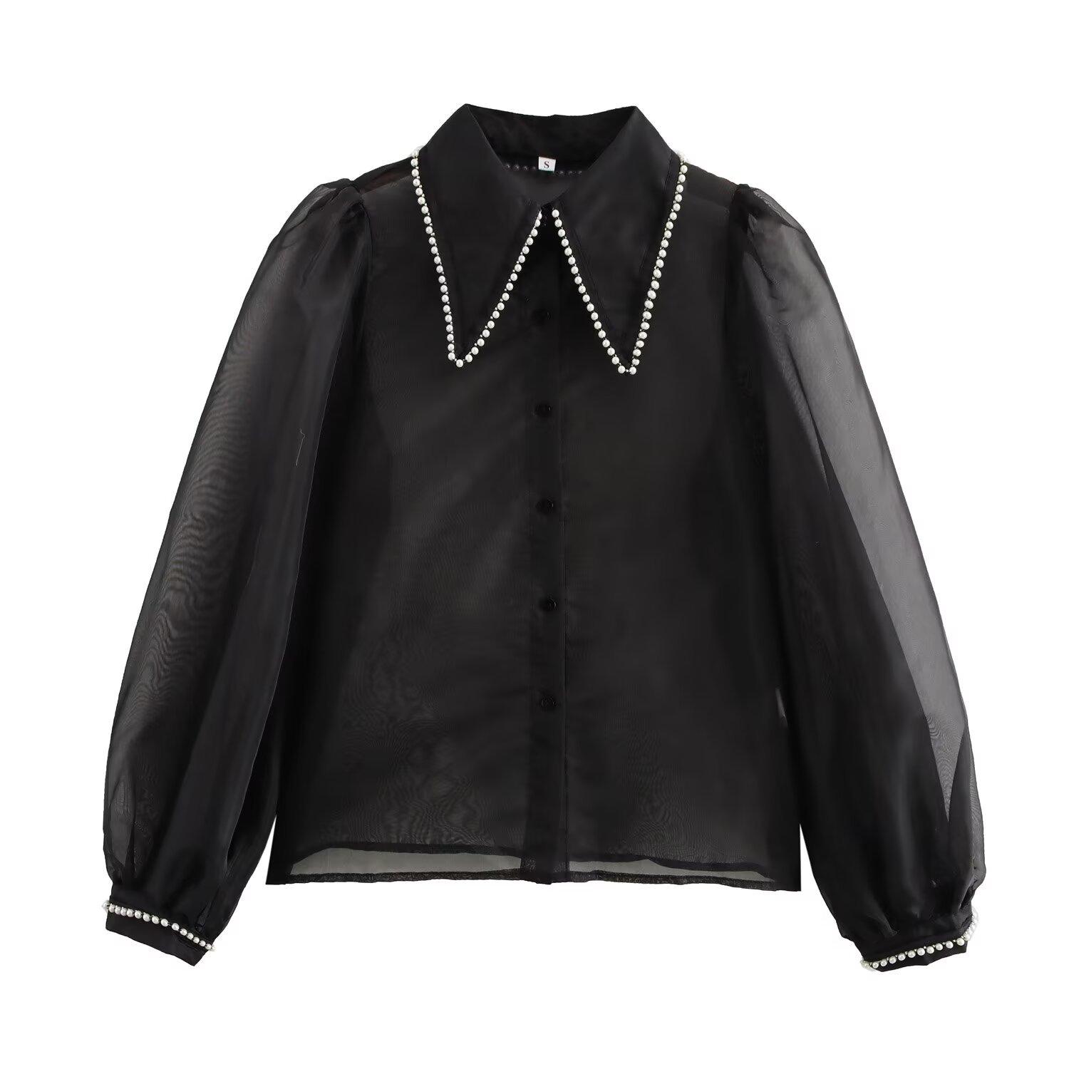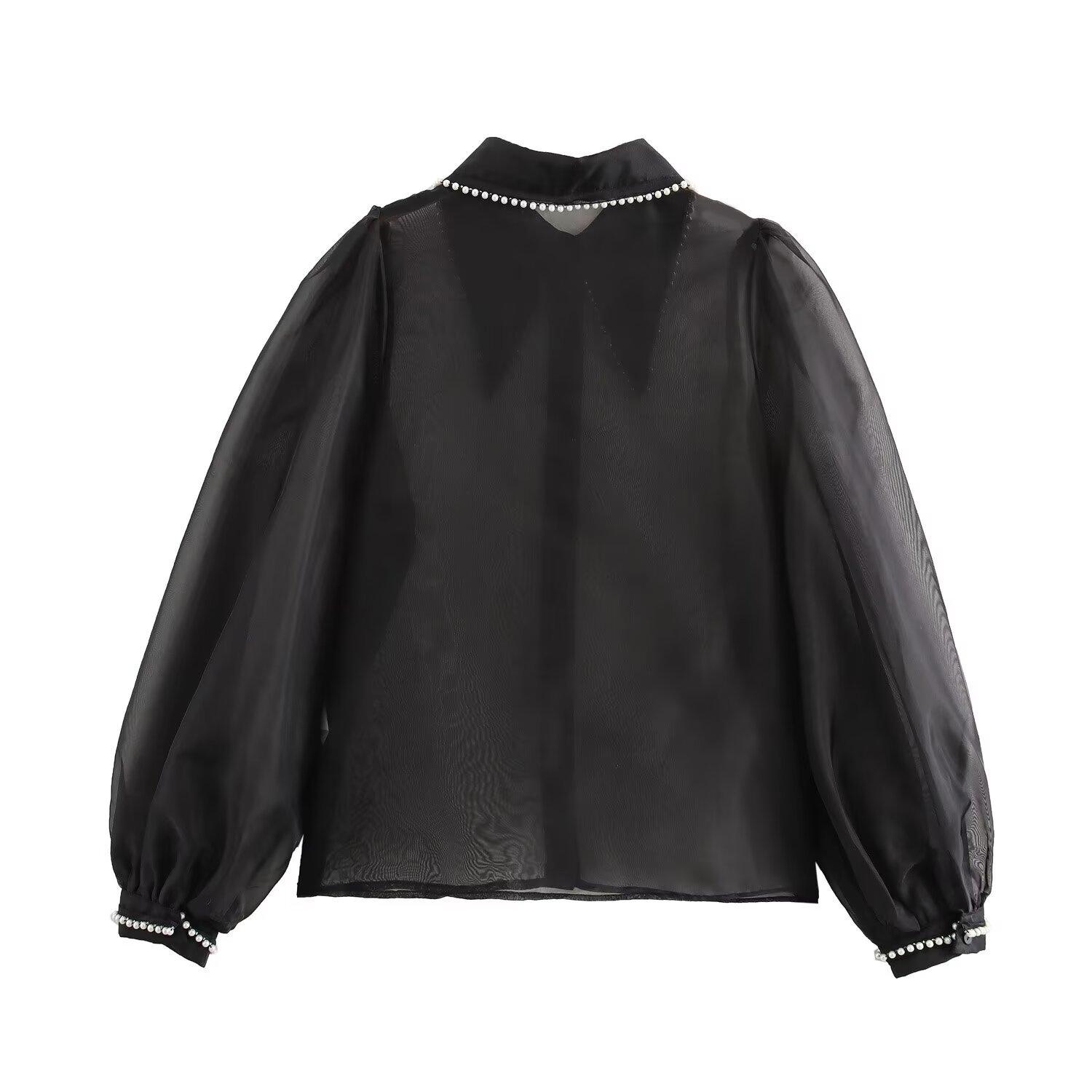 2024 Nueva Ropa de Invierno para Mujer Estilo Europeo y Americano Simple Retro Organza Elegante Camisa de Manga Larga Tops
