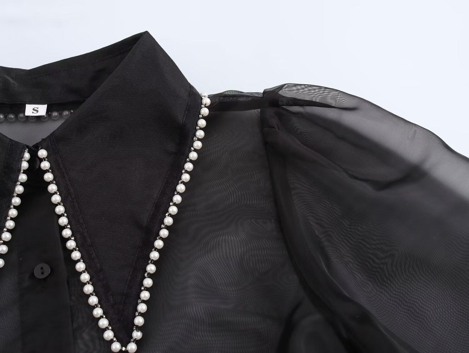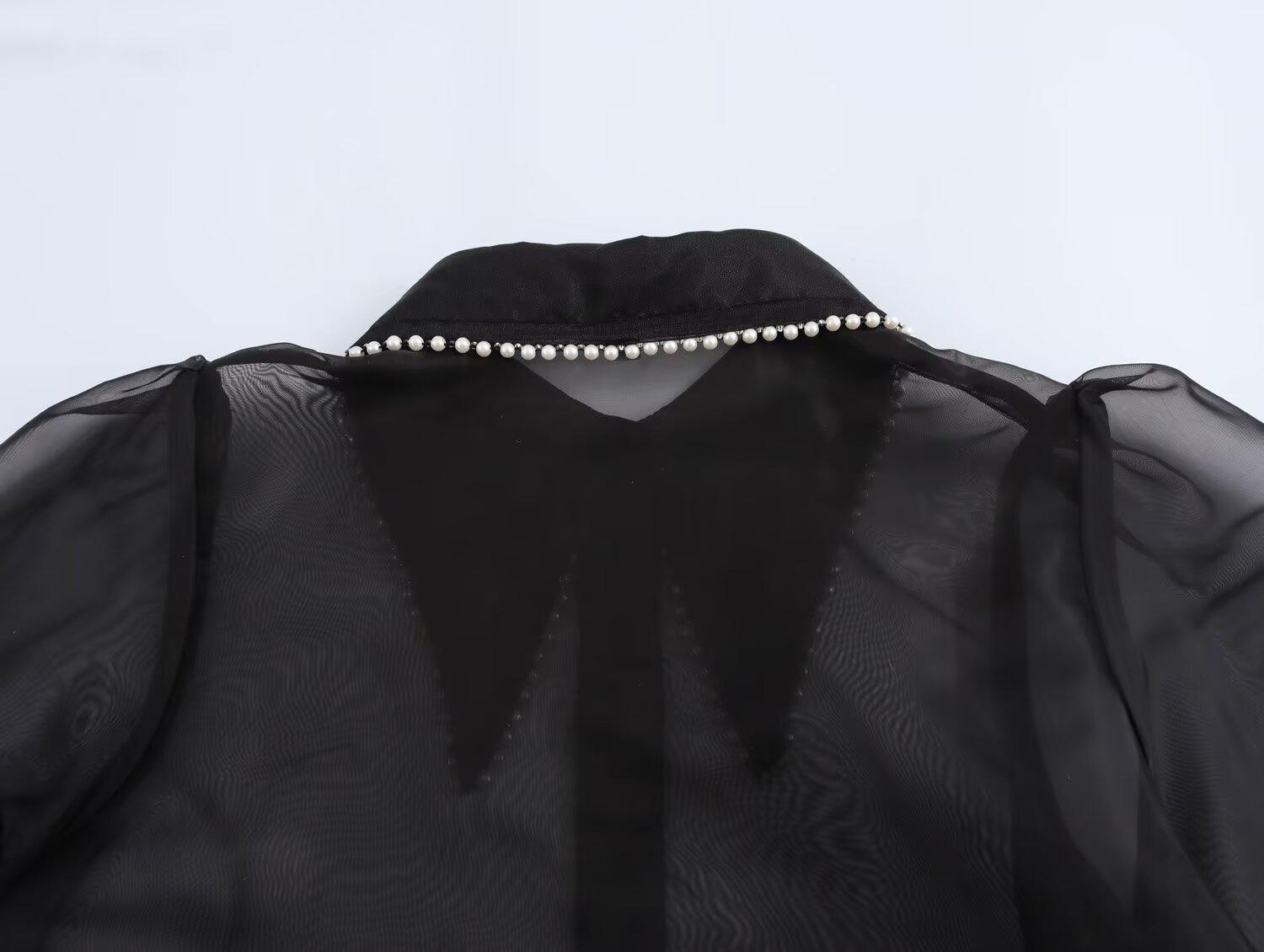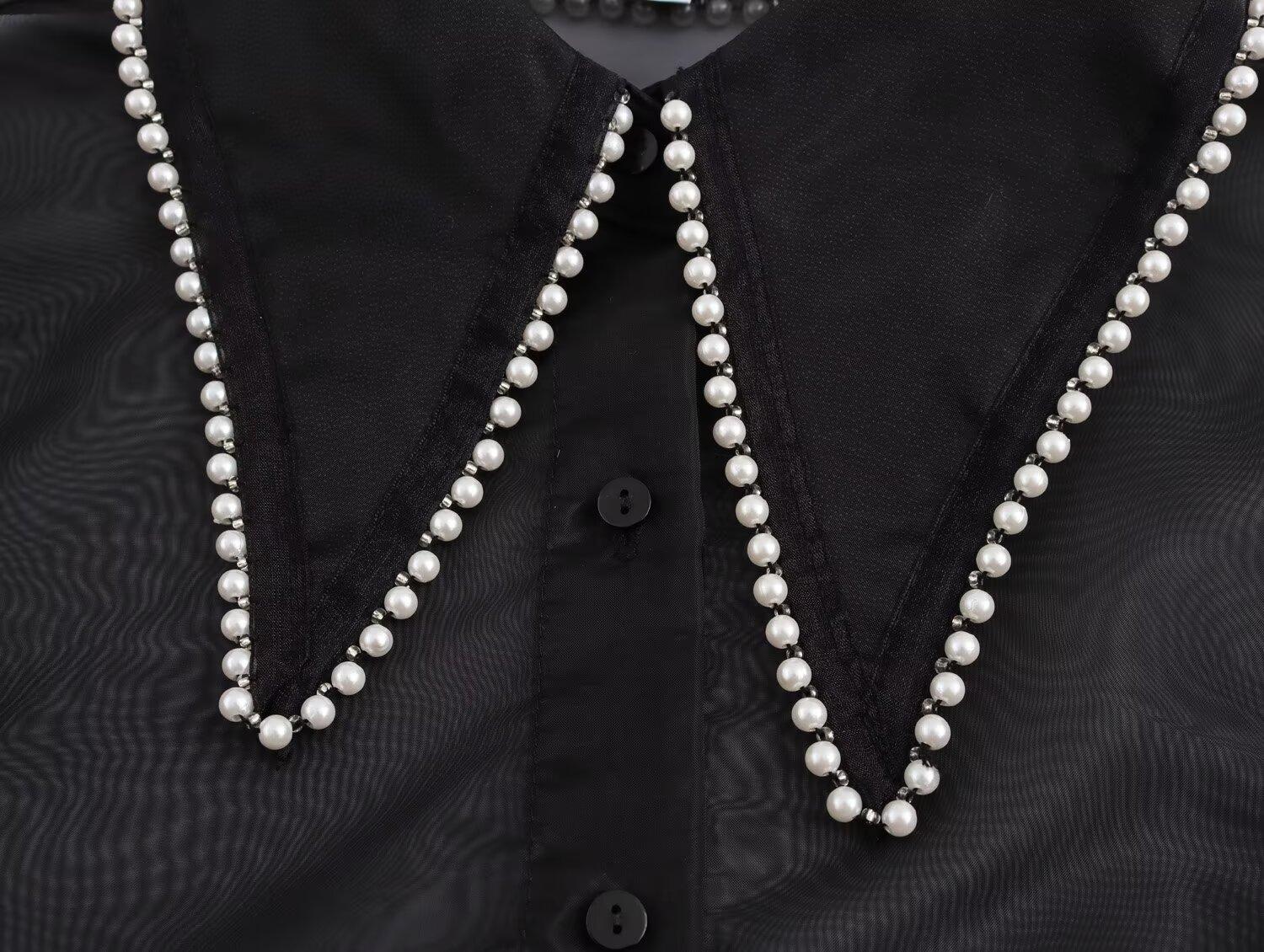 2024 Nueva Ropa de Invierno para Mujer Estilo Europeo y Americano Simple Retro Organza Elegante Camisa de Manga Larga Tops