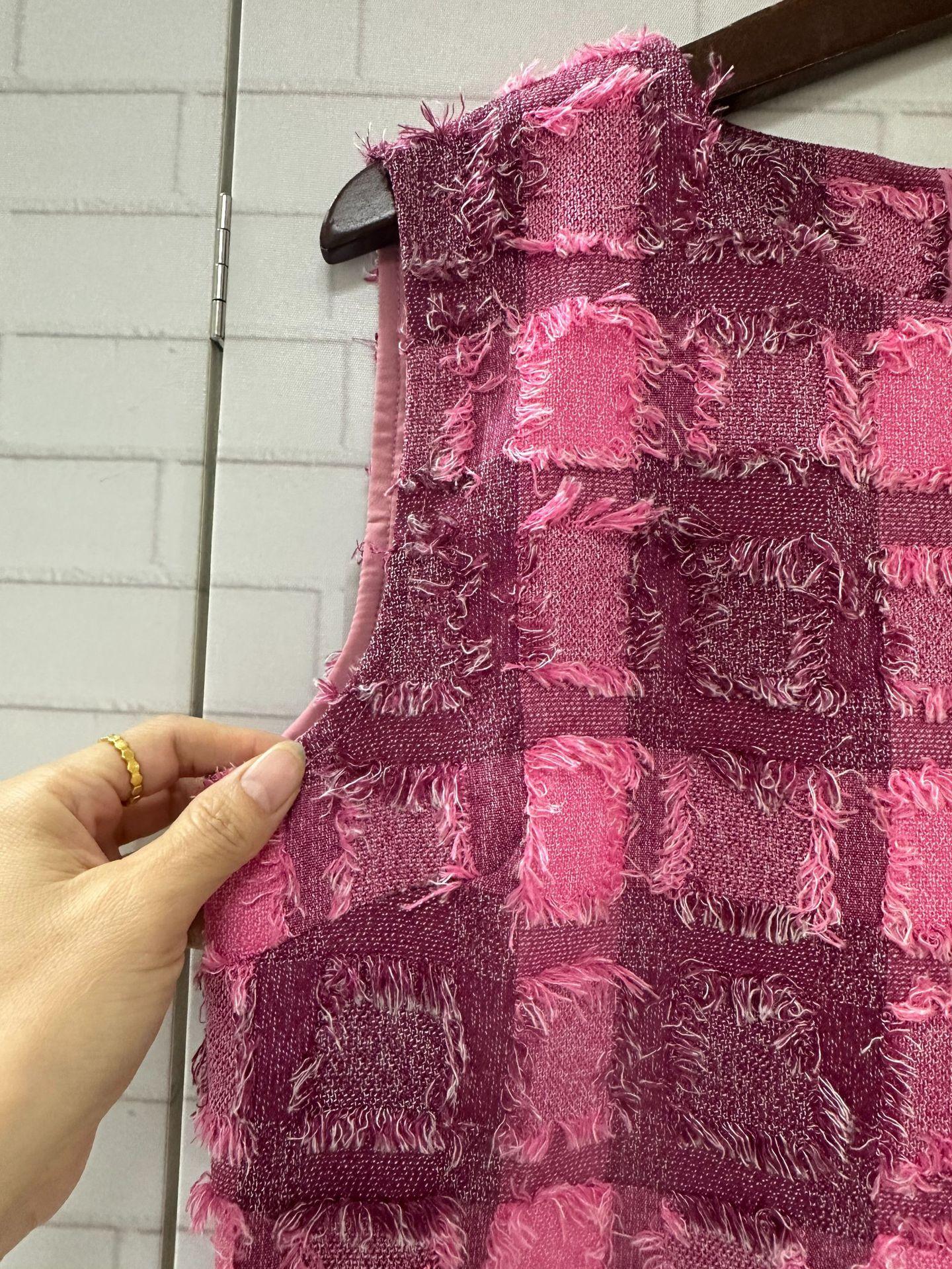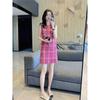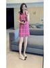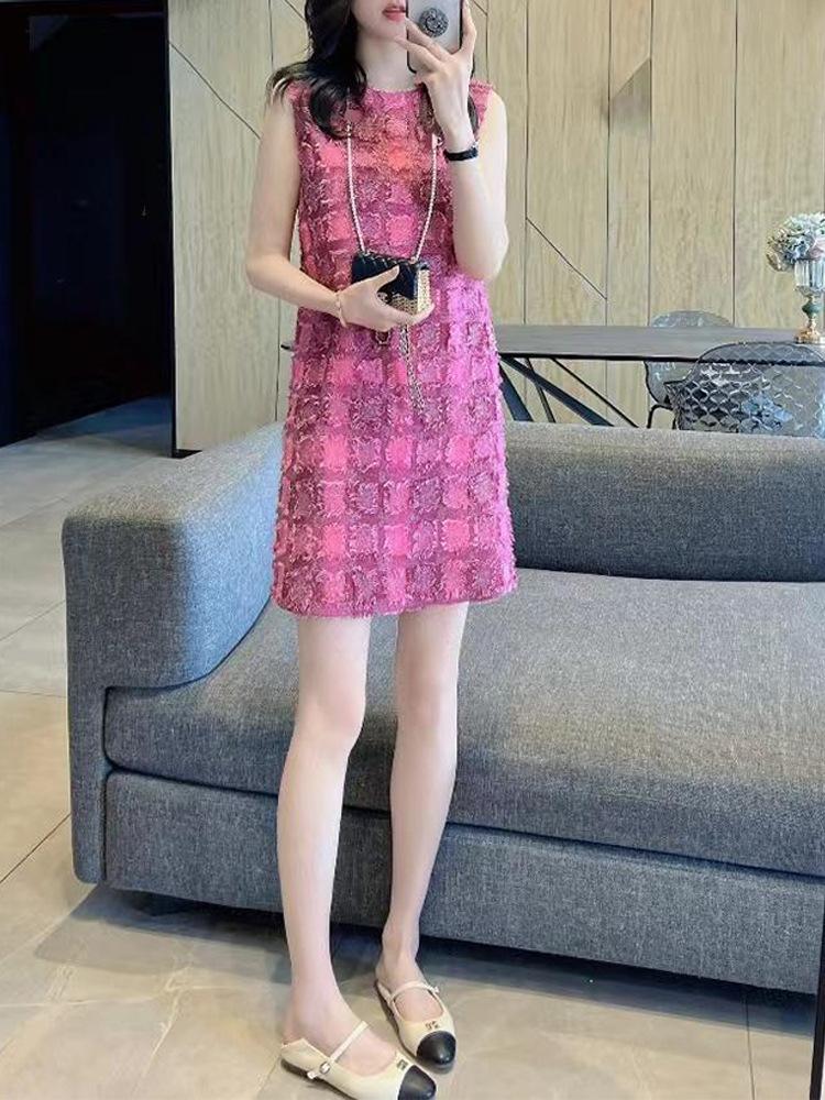 Vestido Dulce Estilo Francés Estilo Chanel para Mujer Verano Estilo Corto Pequeño de Alta Gama Único Hermoso Rosa