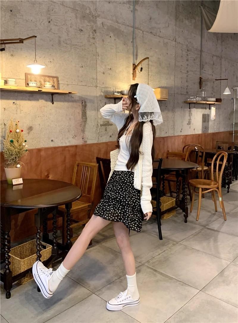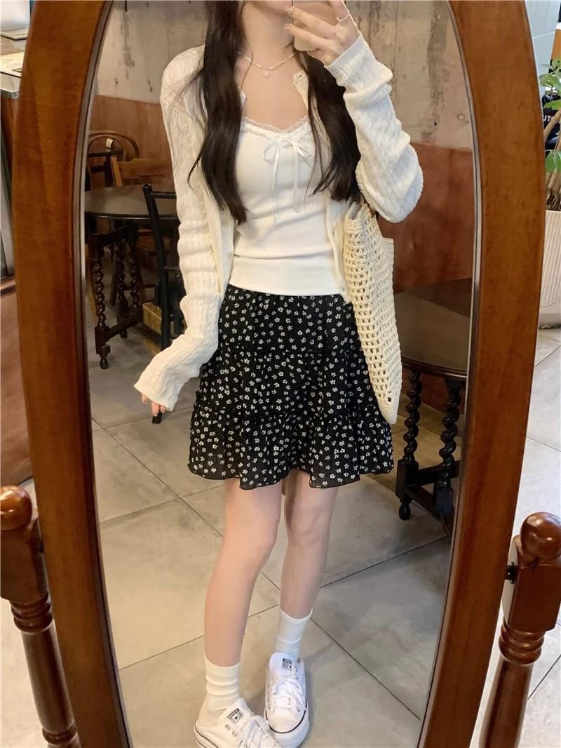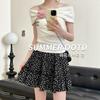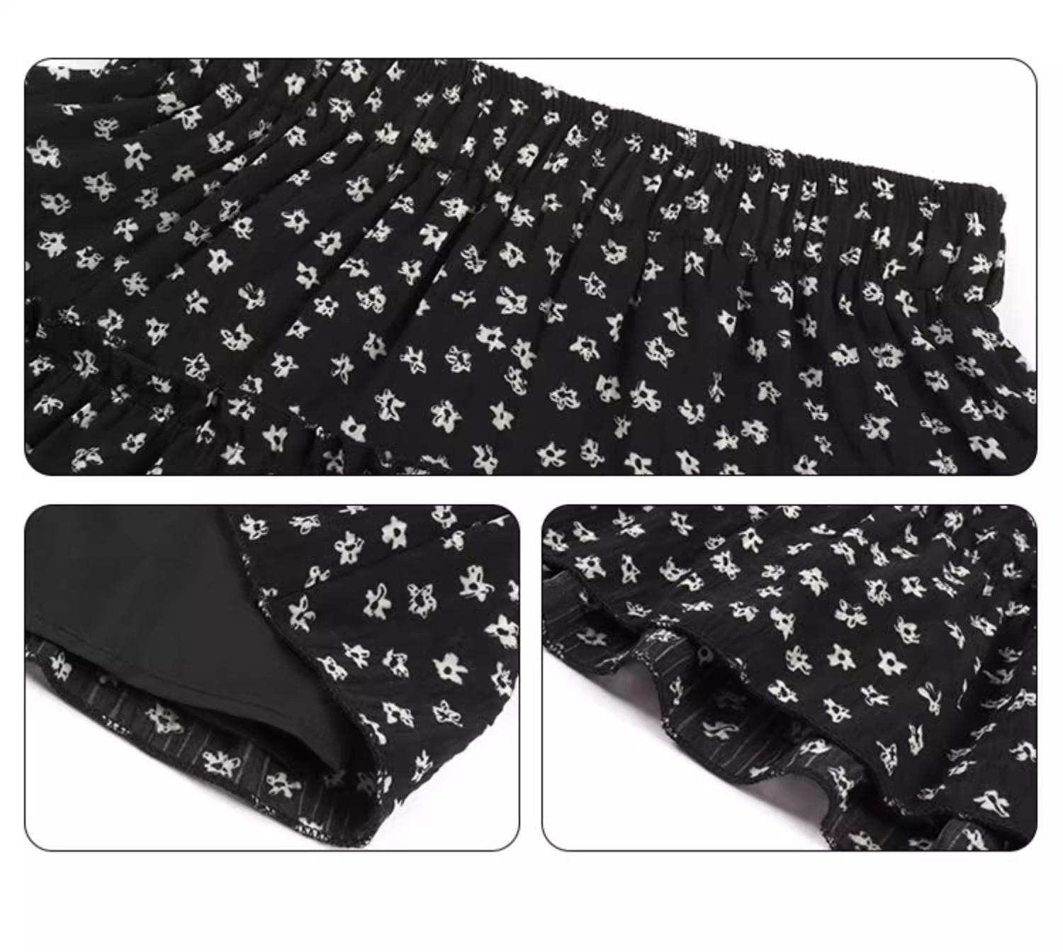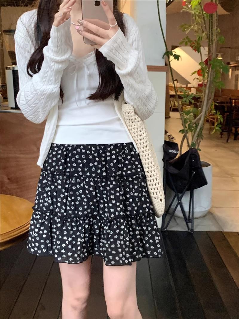 Falda Corta Floral Negra Coreana para Mujer Verano 2025 Nueva Falda Pastel Media Falda Falda A-Line Petite Media Falda