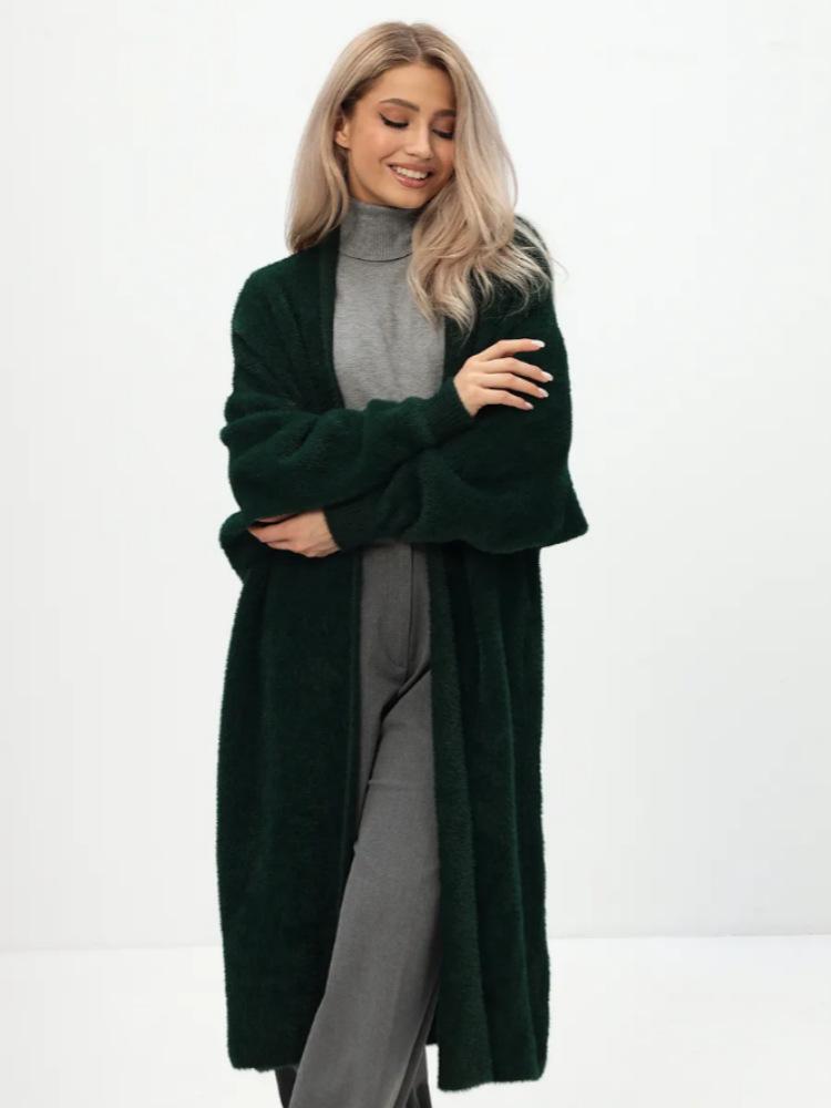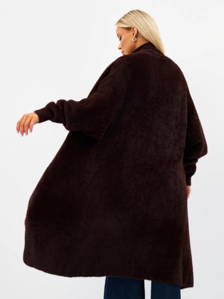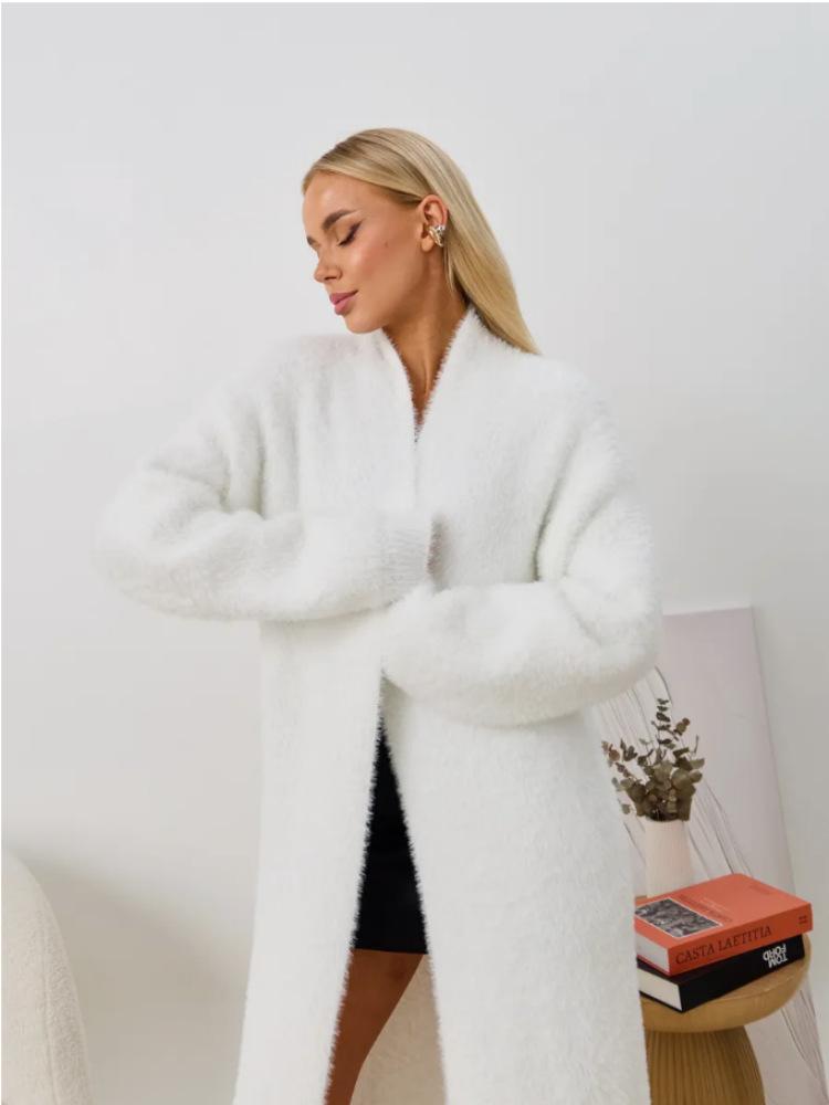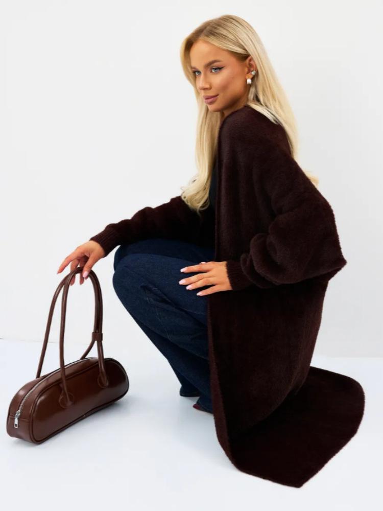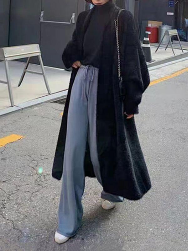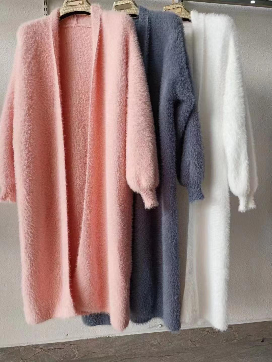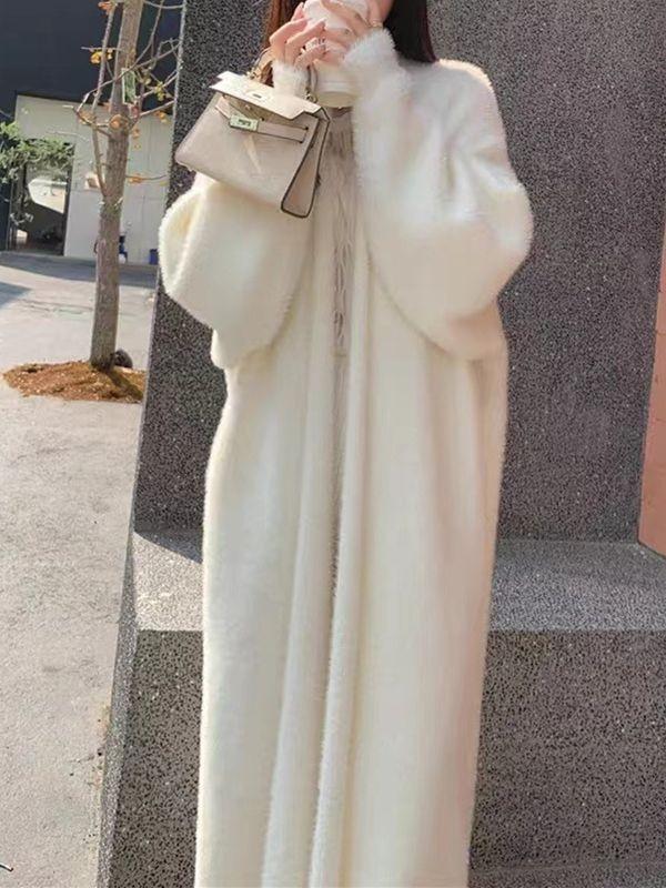 Cárdigan de Terciopelo Visón Imitación Suéter Largo Holgado Estilo Perezoso Tejido Exterior para Mujer Otoño e Invierno Suave Ceroso Exterior Exterior hasta la Rodilla