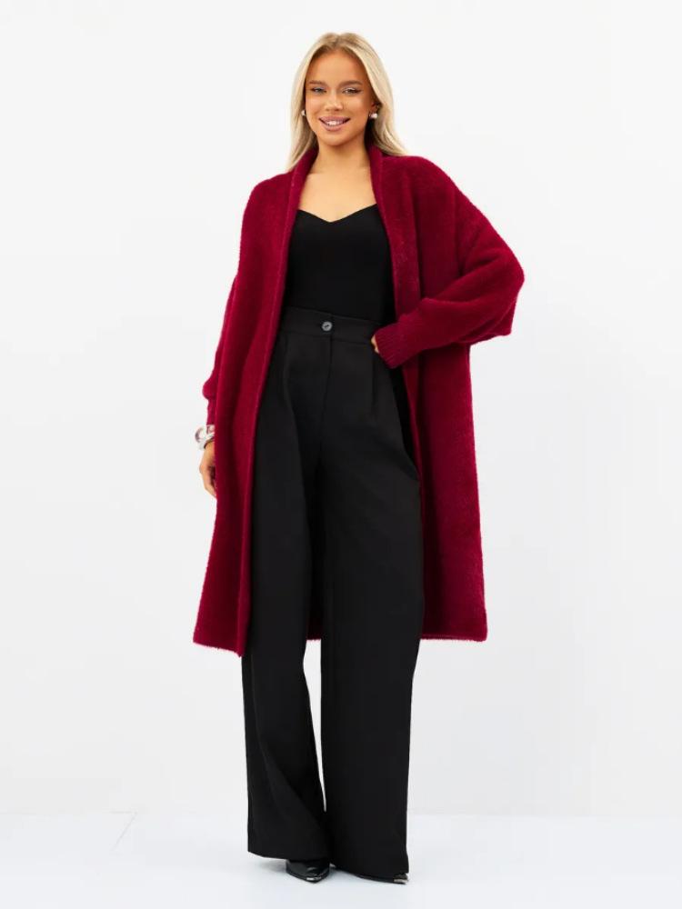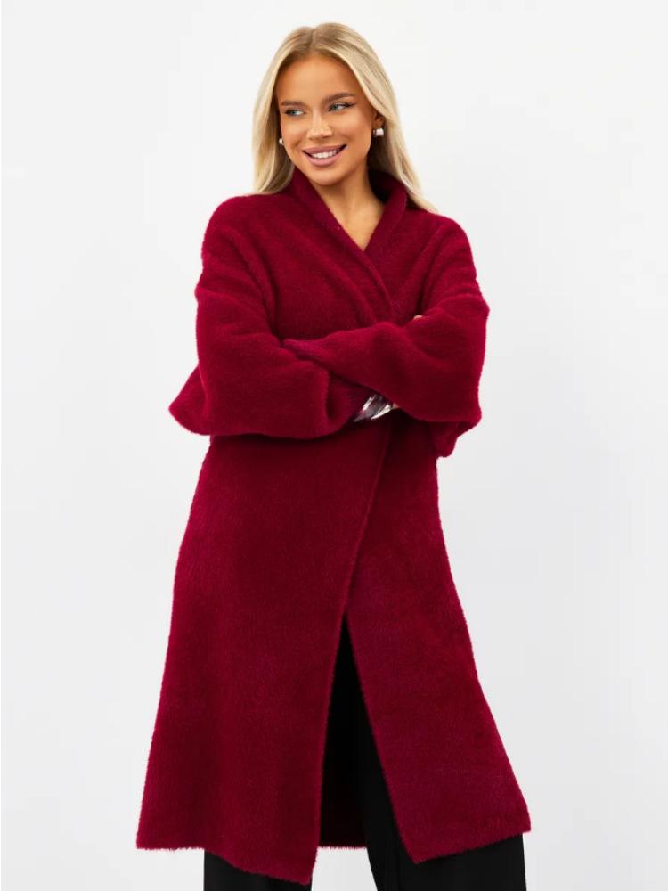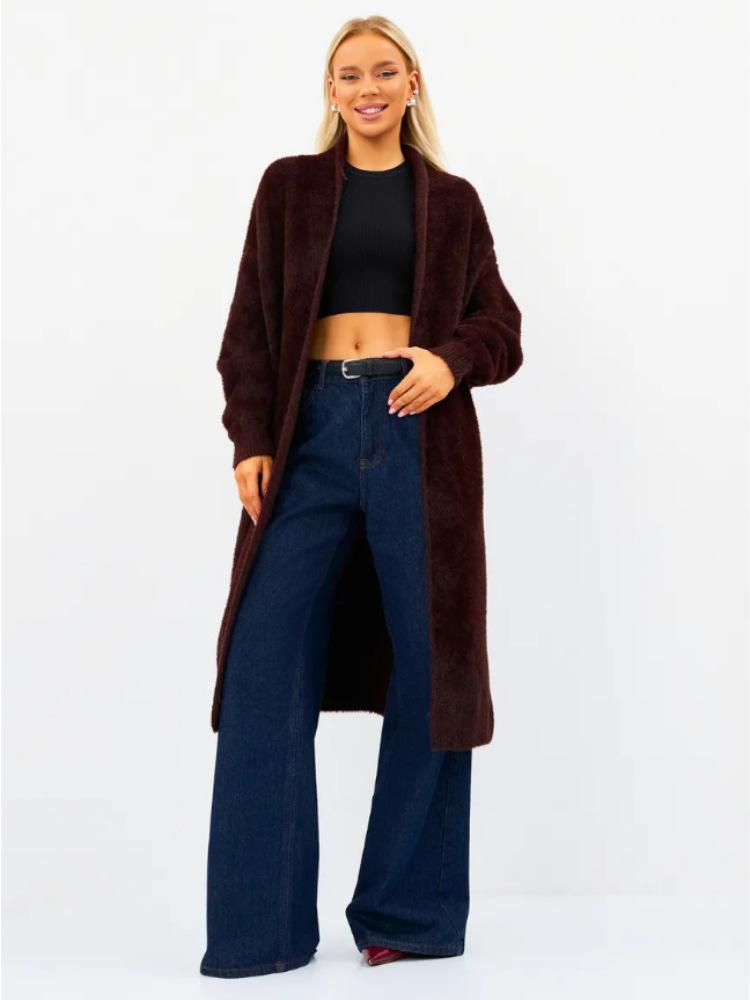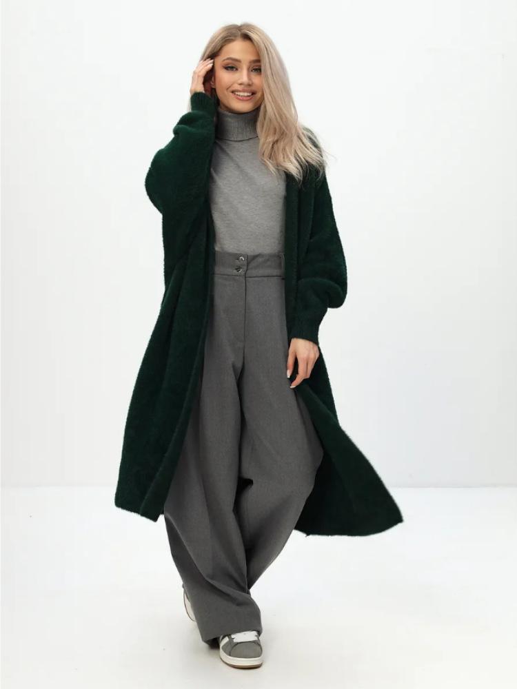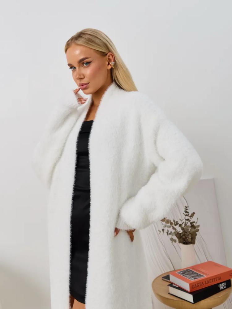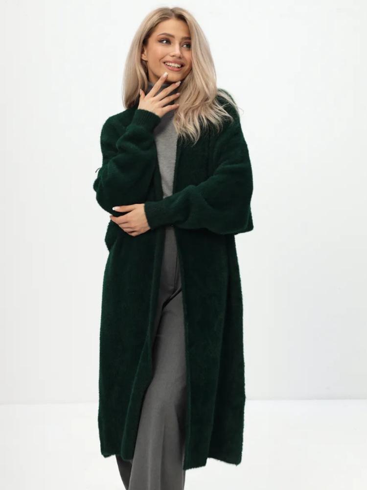 Cárdigan de Terciopelo Visón Imitación Suéter Largo Holgado Estilo Perezoso Tejido Exterior para Mujer Otoño e Invierno Suave Ceroso Exterior Exterior hasta la Rodilla
