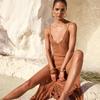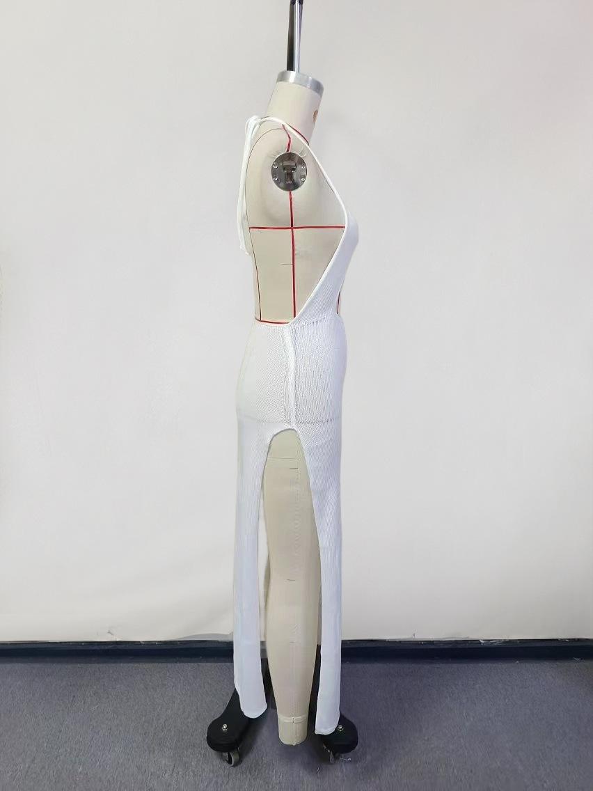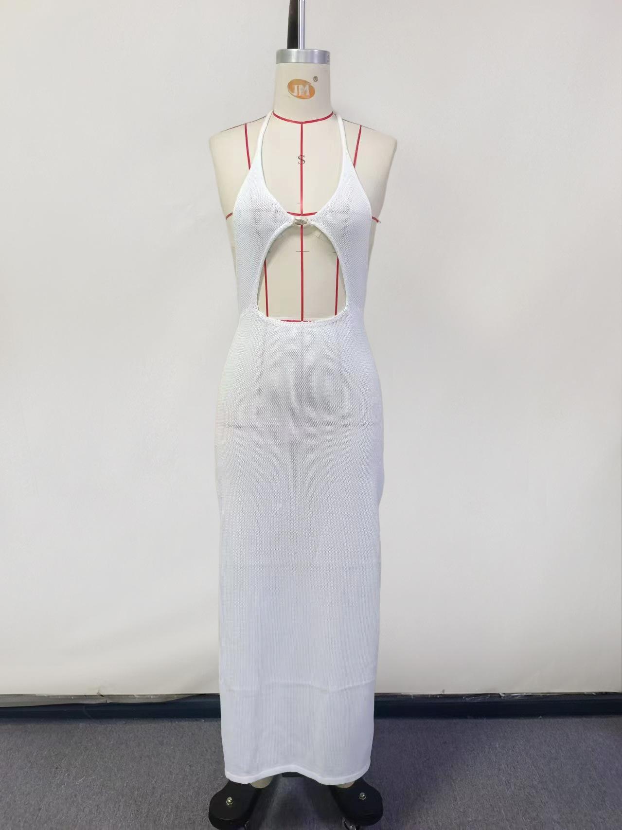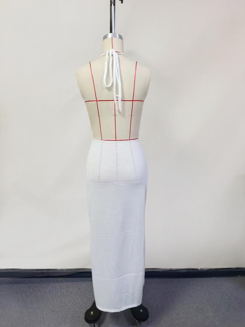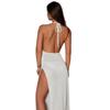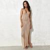 Blusa de Playa con Tirantes al Cuello Europeos y Americanos 2025 Sexy Vestido Largo con Abertura de Punto para Vacaciones en la Playa