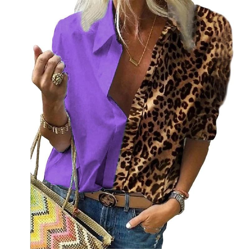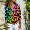 Primavera y Otoño Nuevo Amazon wish Europeo y Americano Transfronterizo Comercio Exterior Camisa Holgada de Manga Larga con Estampado de Leopardo para Mujer Camisa de Chifón