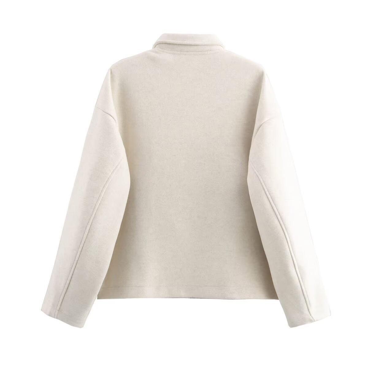 Ropa de Otoño para Mujer 2024 Nuevo Estilo Europeo y Americano Moda Simple Versátil Tres Colores Chaqueta de Lana Ancha con Cierre